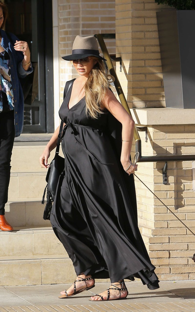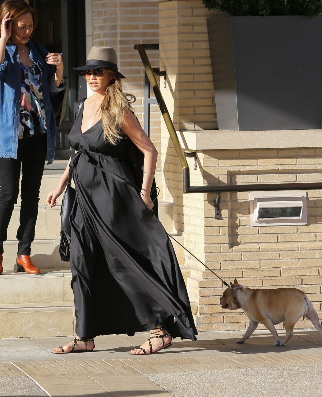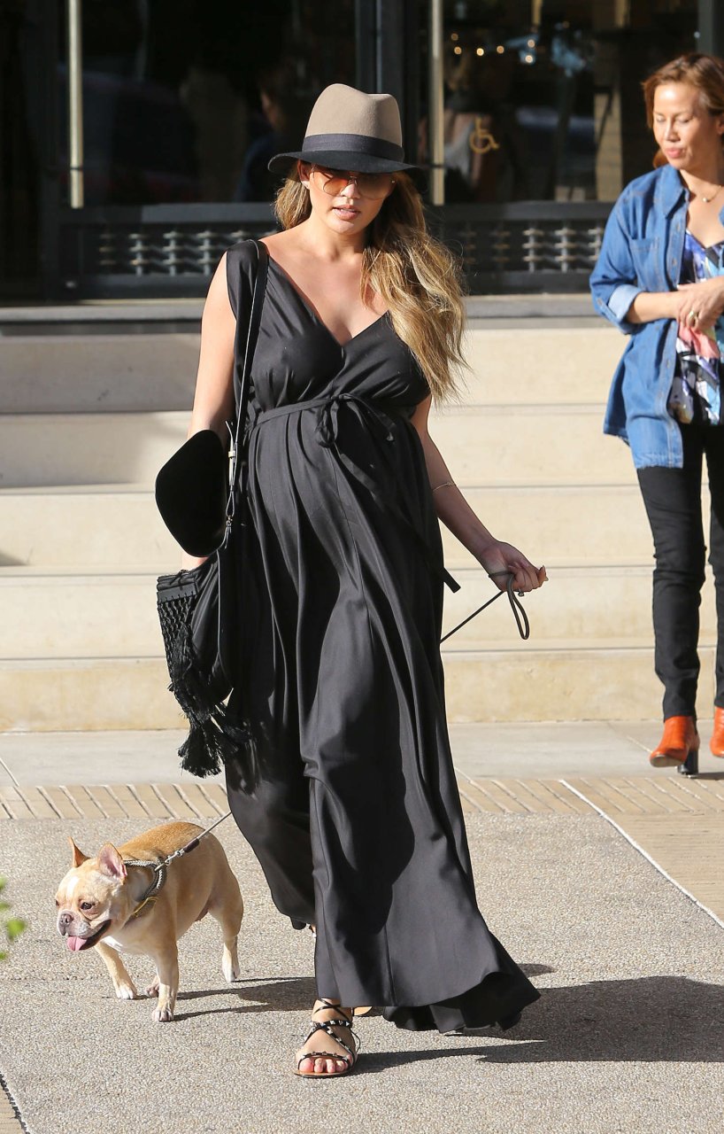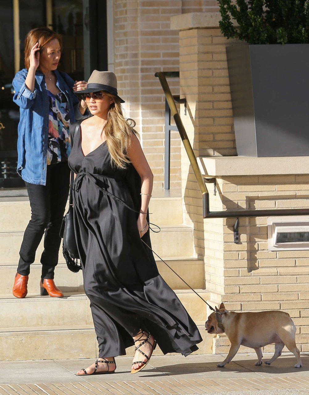 Chrissy Teigen en robe noire chez Barneys New York à Los Angeles, 14/03/2016. Poitrine super laiteuse ! Chrissy Teigen est un mannequin américain. Âge 30 ans (30 novembre 1985). Taille 174 cm.
