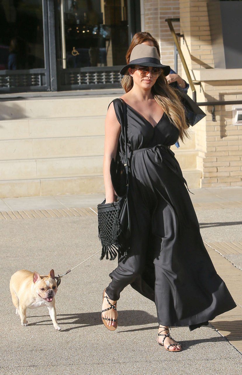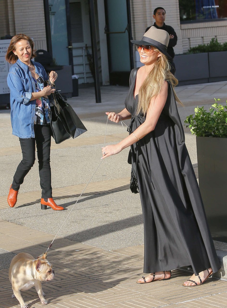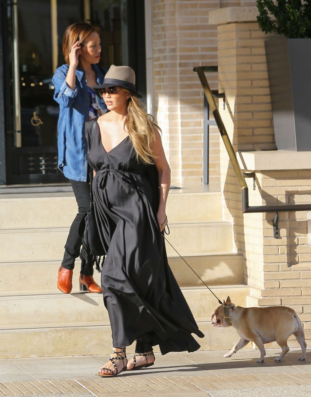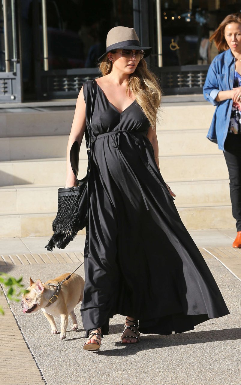 Chrissy Teigen en robe noire chez Barneys New York à Los Angeles, 14/03/2016. Poitrine super laiteuse ! Chrissy Teigen est un mannequin américain. Âge 30 ans (30 novembre 1985). Taille 174 cm.
