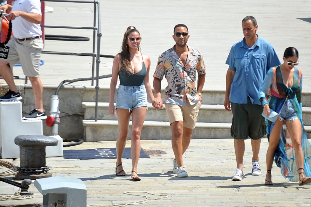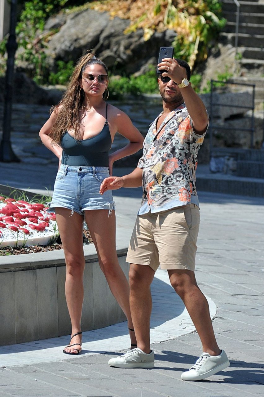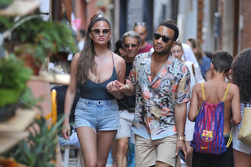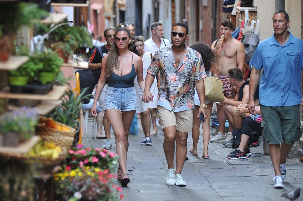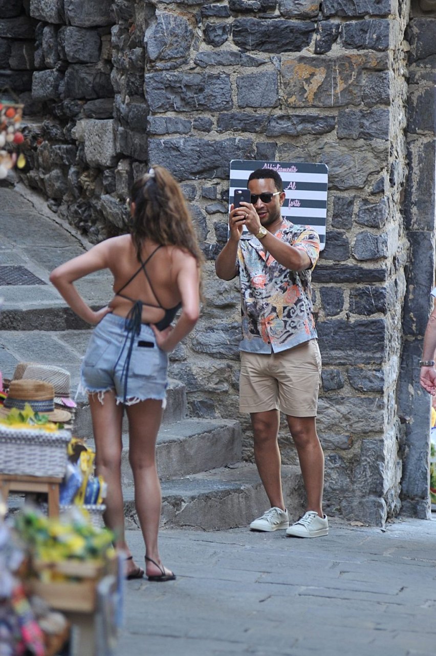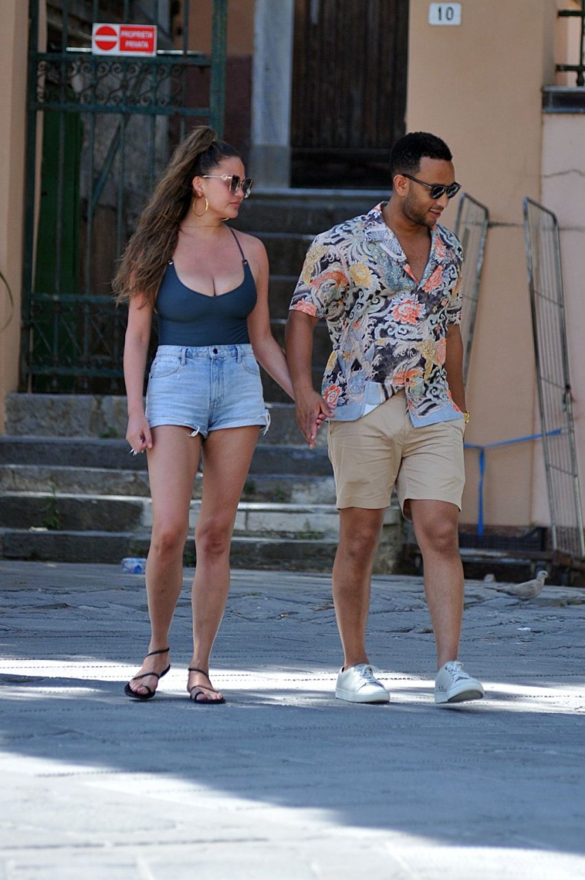 John Legend et Chrissy Teigen ont été vus en train d’afficher leur affection à Porto Venere, le 07/04/2019. Chrissy a été photographiée en short en jean et en body vert foncé avec un décolleté plongeant.
