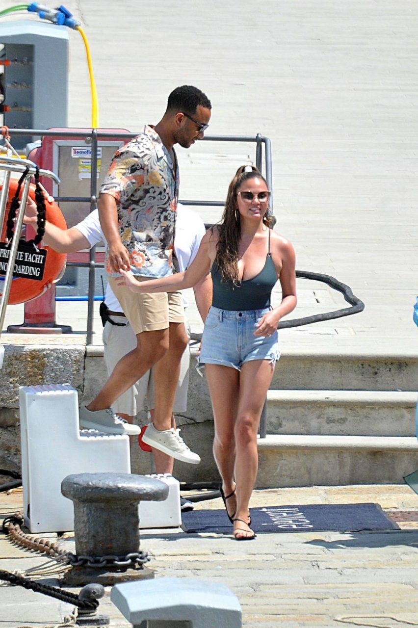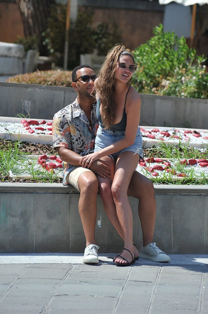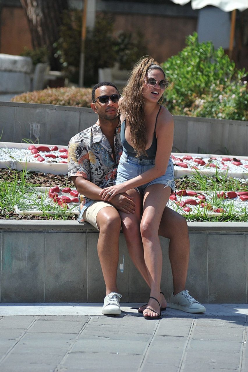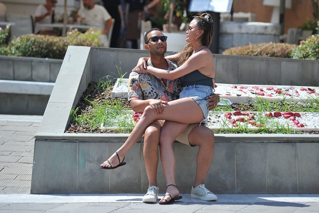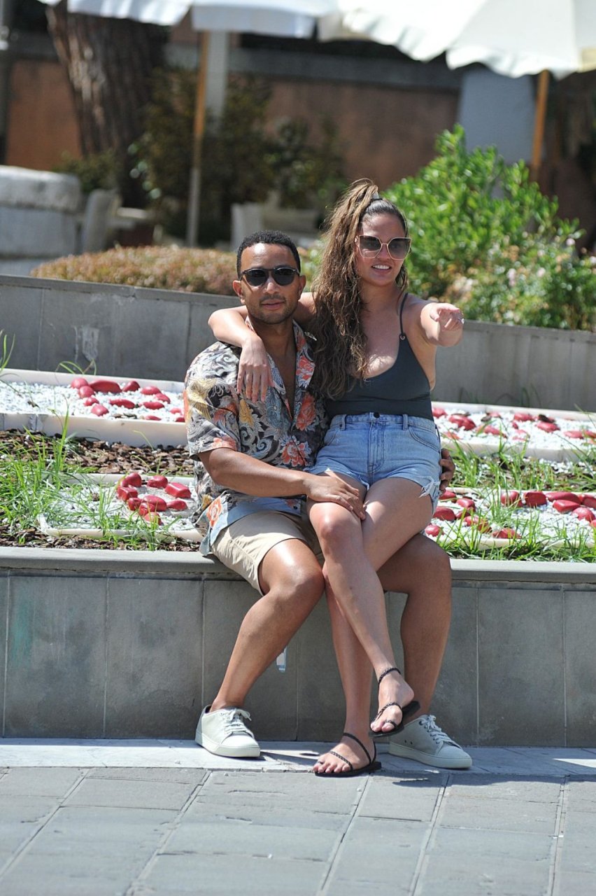 John Legend et Chrissy Teigen ont été vus en train d’afficher leur affection à Porto Venere, le 07/04/2019. Chrissy a été photographiée en short en jean et en body vert foncé avec un décolleté plongeant.