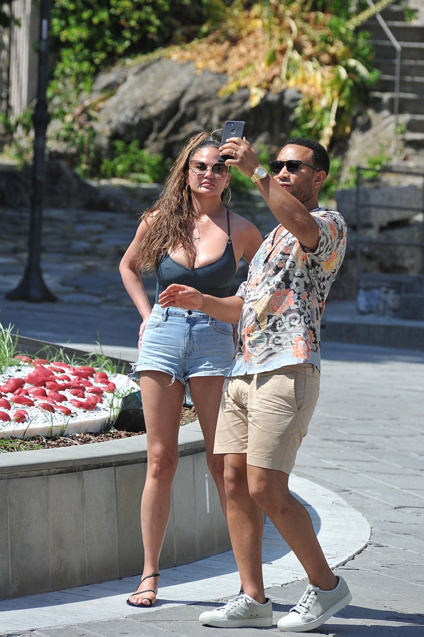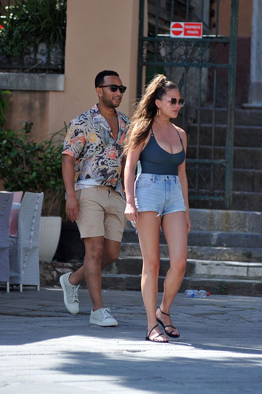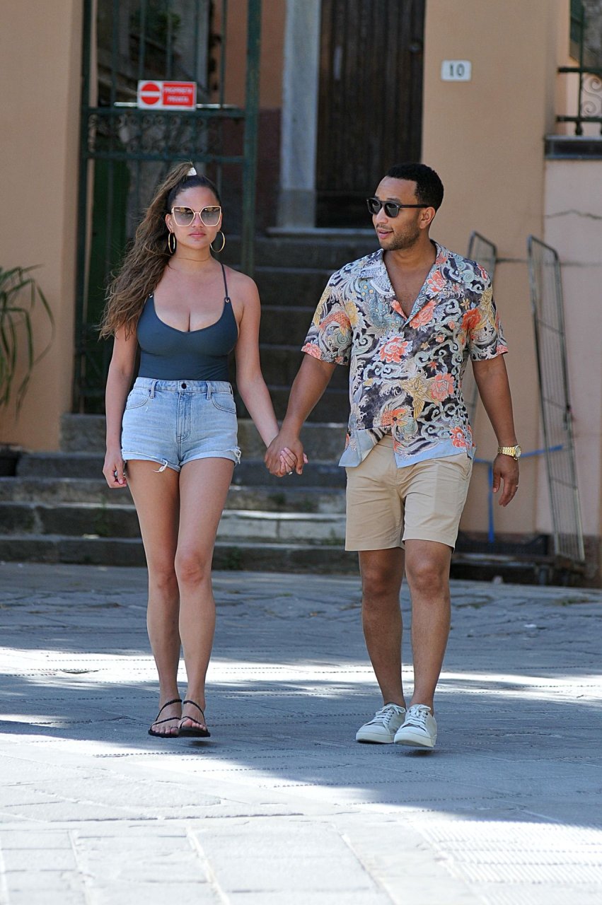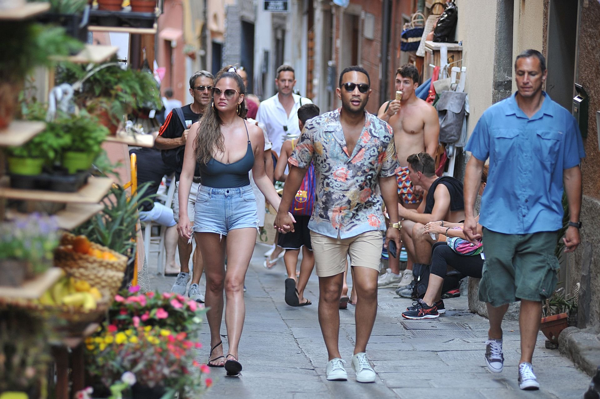 John Legend et Chrissy Teigen ont été vus en train d’afficher leur affection à Porto Venere, le 07/04/2019. Chrissy a été photographiée en short en jean et en body vert foncé avec un décolleté plongeant.