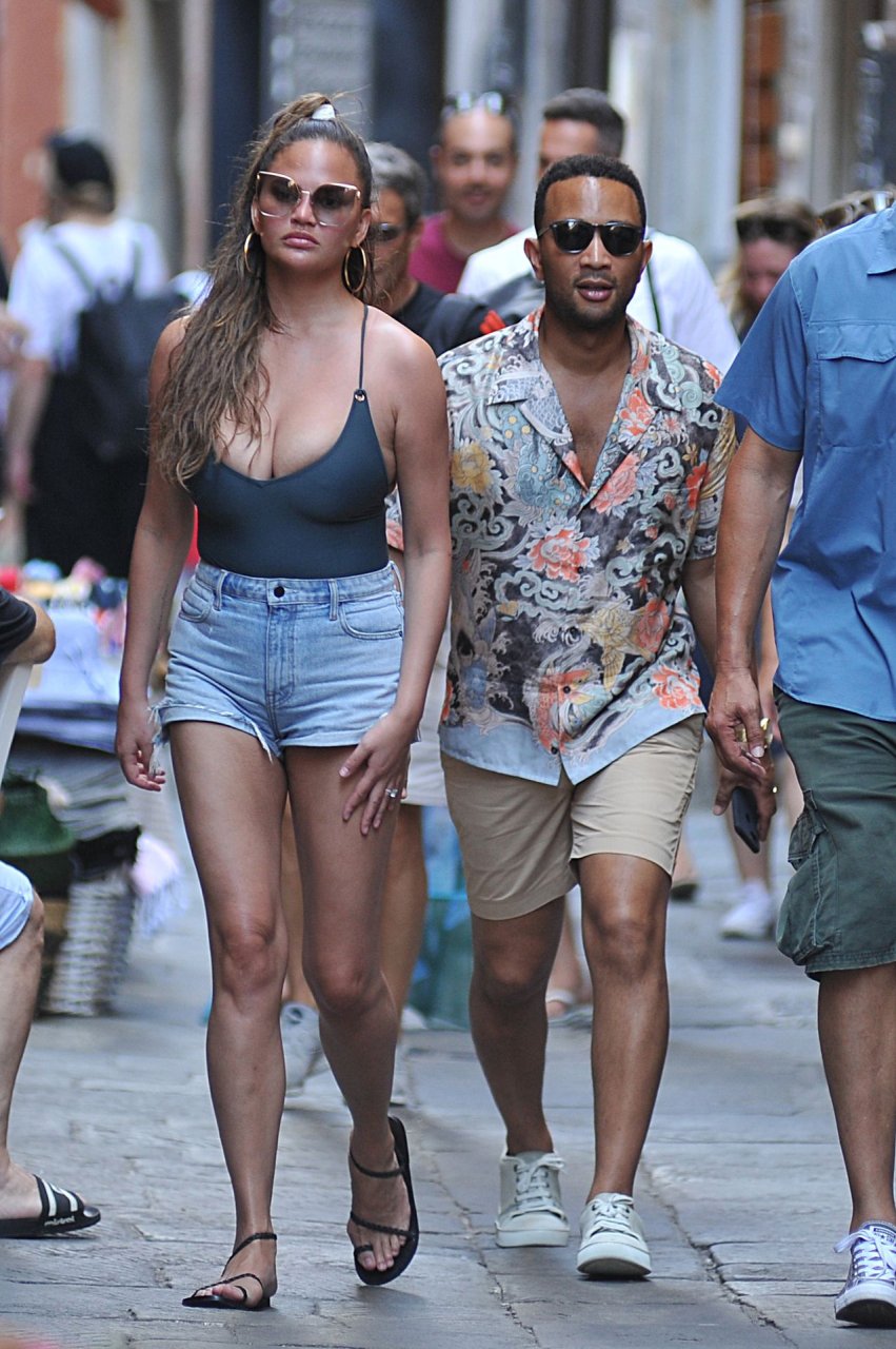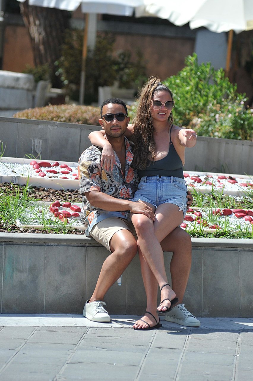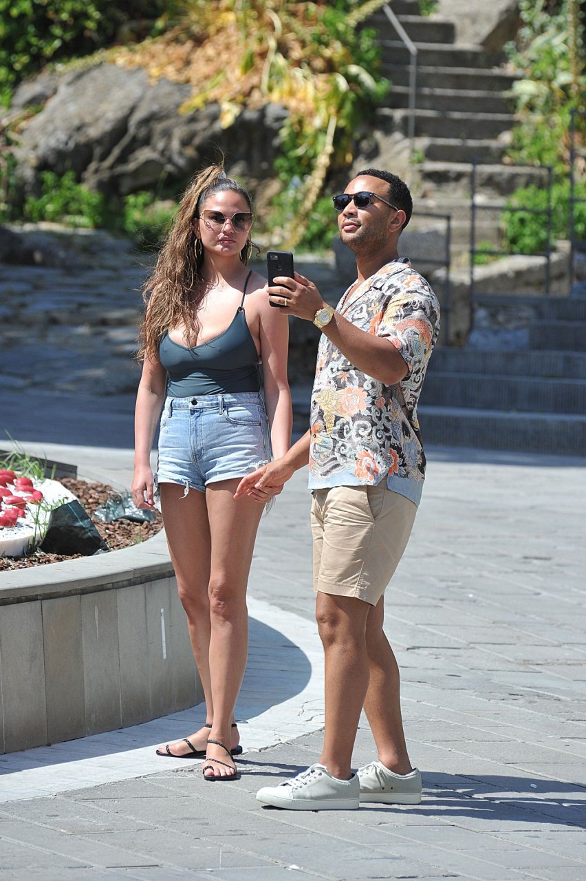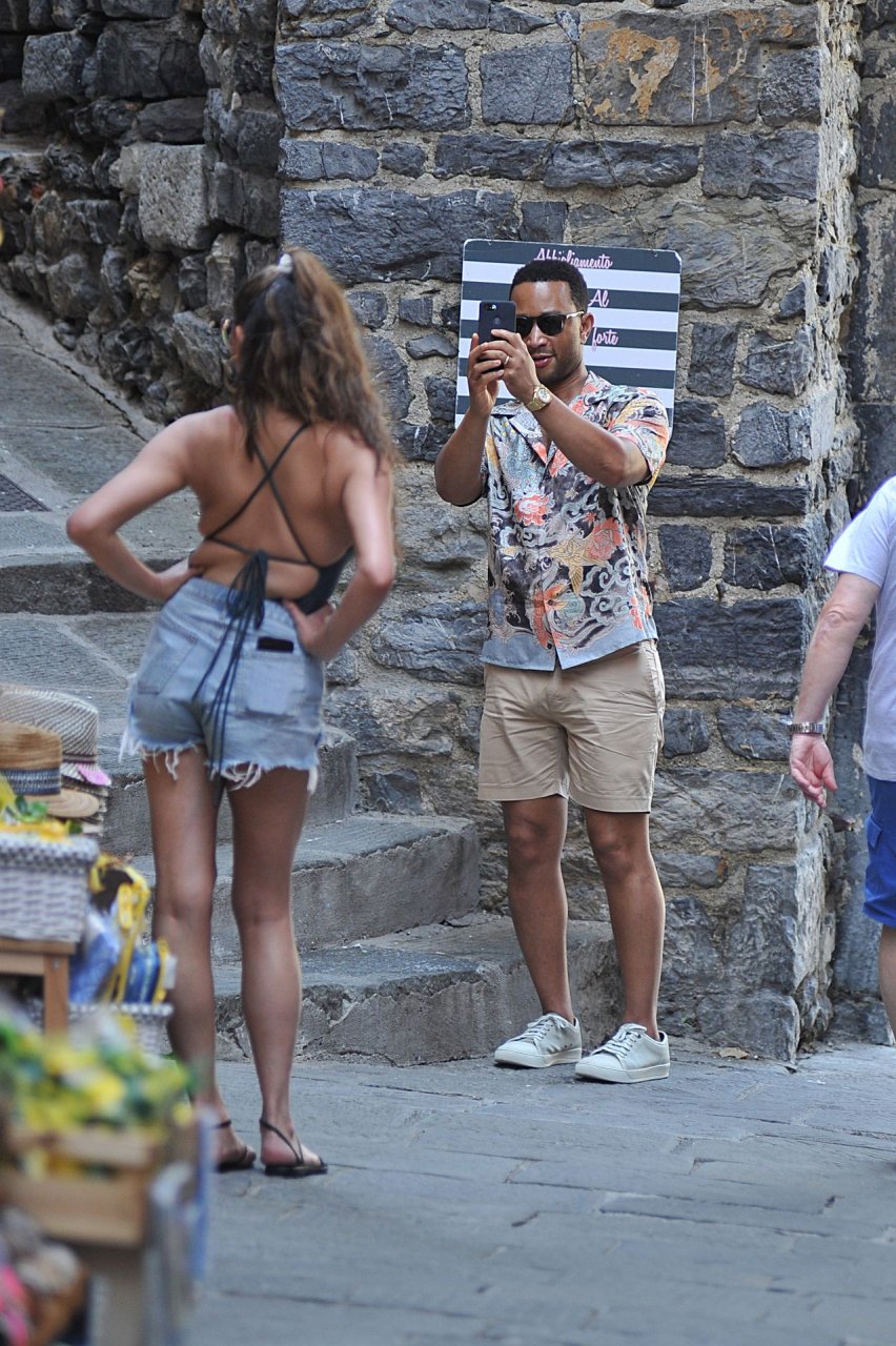 John Legend et Chrissy Teigen ont été vus en train d’afficher leur affection à Porto Venere, le 07/04/2019. Chrissy a été photographiée en short en jean et en body vert foncé avec un décolleté plongeant.