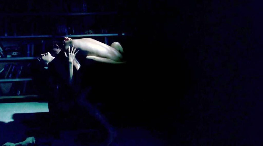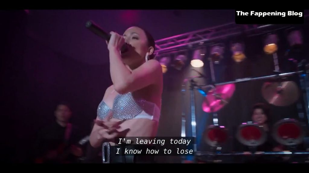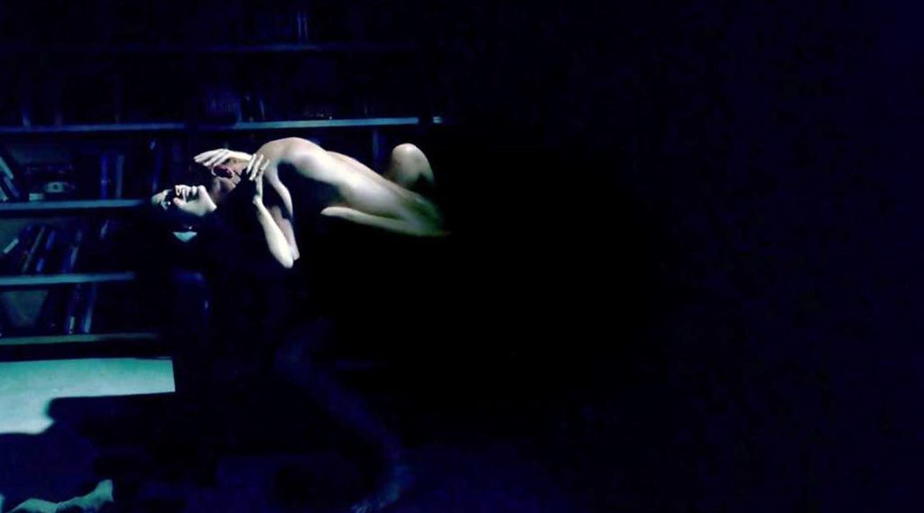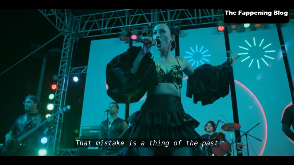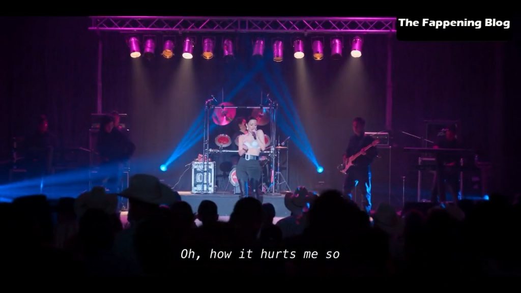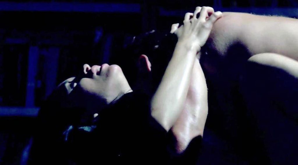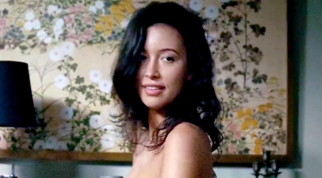 Christian Serratos est allongée sur le dos sur un canapé, en train d’avoir des relations sexuelles avec un homme au-dessus d’elle, quand elle voit un autre homme les espionner et on lui dit d’oublier cet homme par celui avec qui elle fait l’amour.