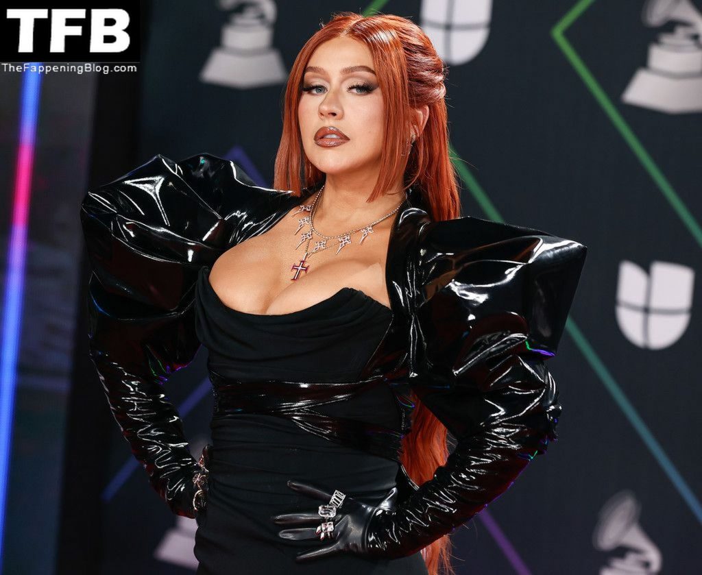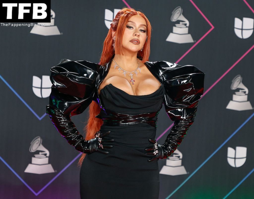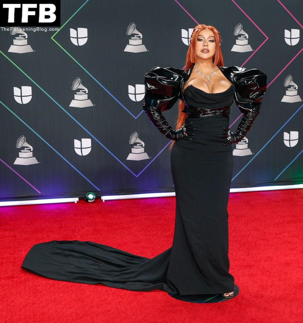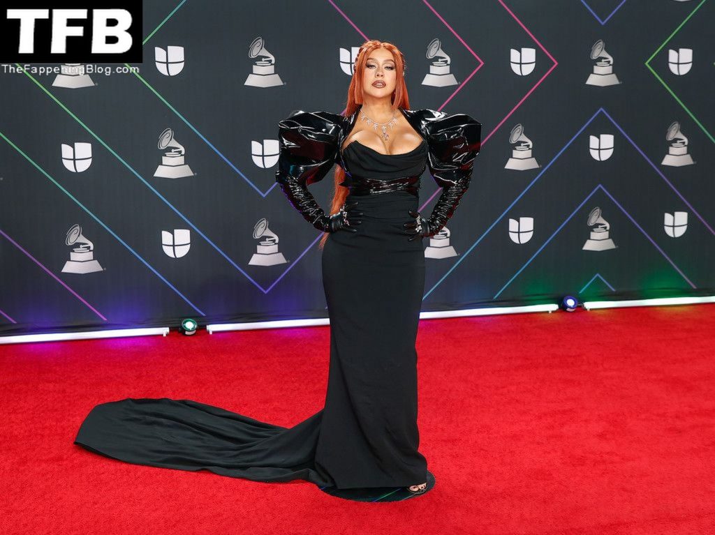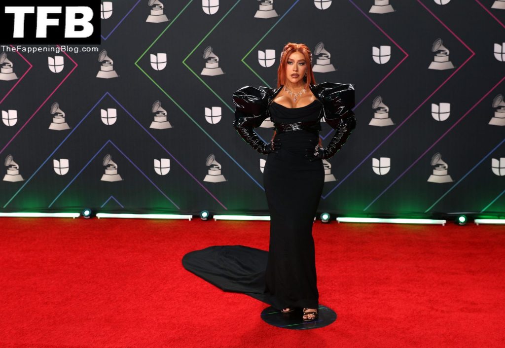 Christina Aguilera arrive sur le tapis rouge pour la 22e cérémonie annuelle des Latin Grammy Awards à la MGM Grand Garden Arena de Las Vegas, le 18/11/2021. La chanteuse se produit également sur scène pendant l’événement.