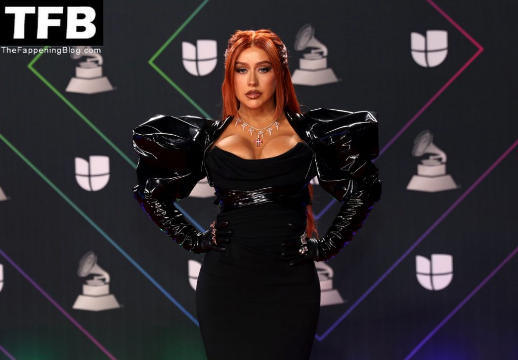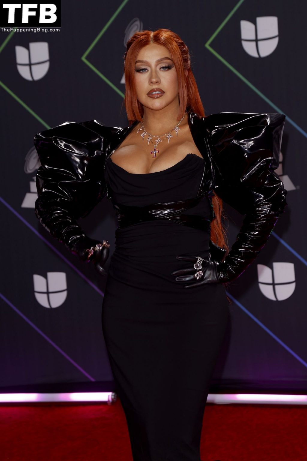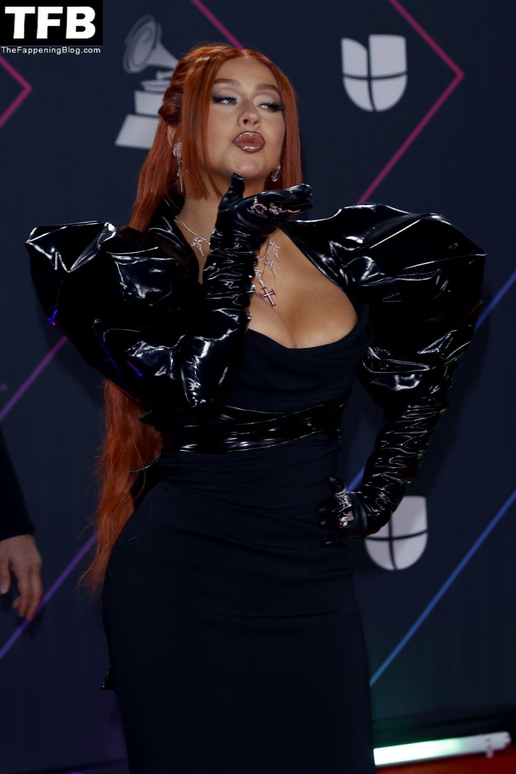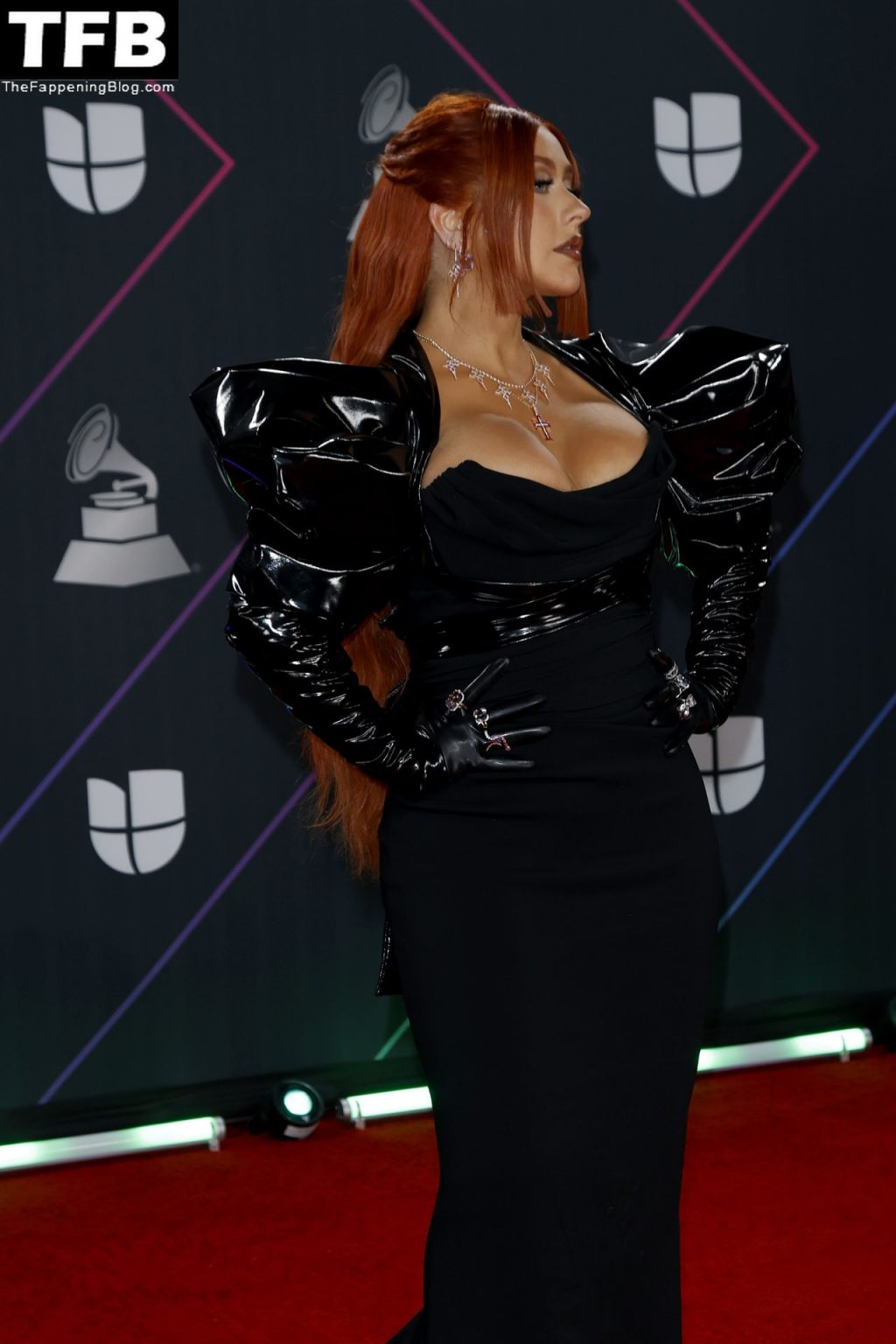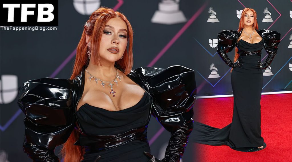 Christina Aguilera arrive sur le tapis rouge pour la 22e cérémonie annuelle des Latin Grammy Awards à la MGM Grand Garden Arena de Las Vegas, le 18/11/2021. La chanteuse se produit également sur scène pendant l’événement.
