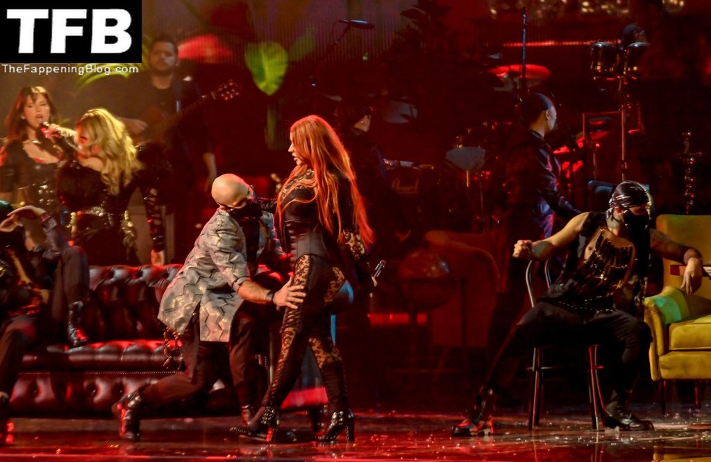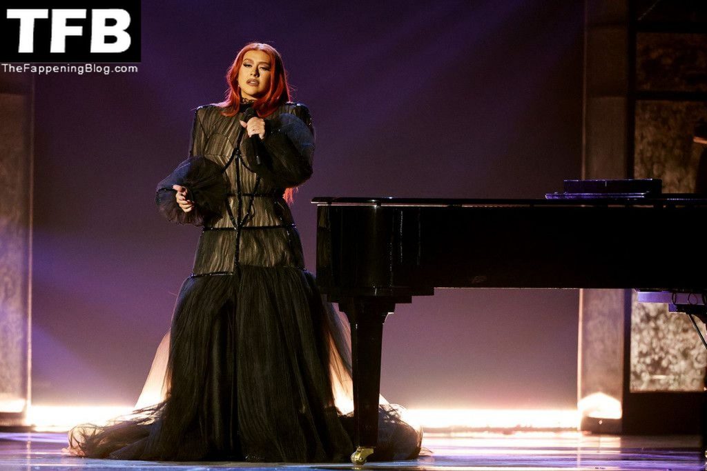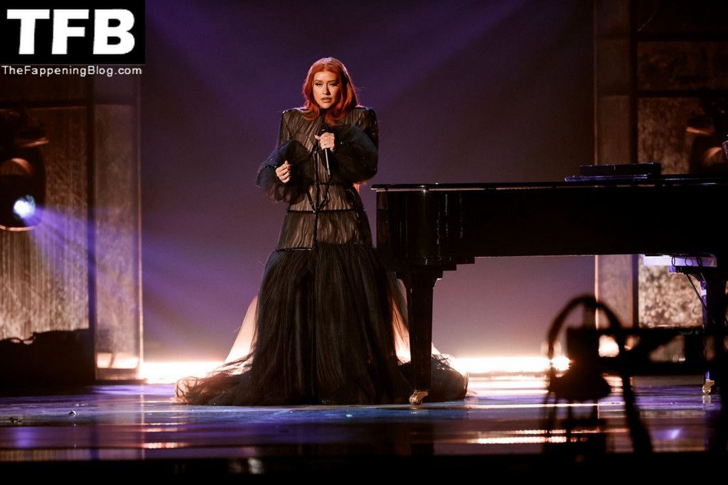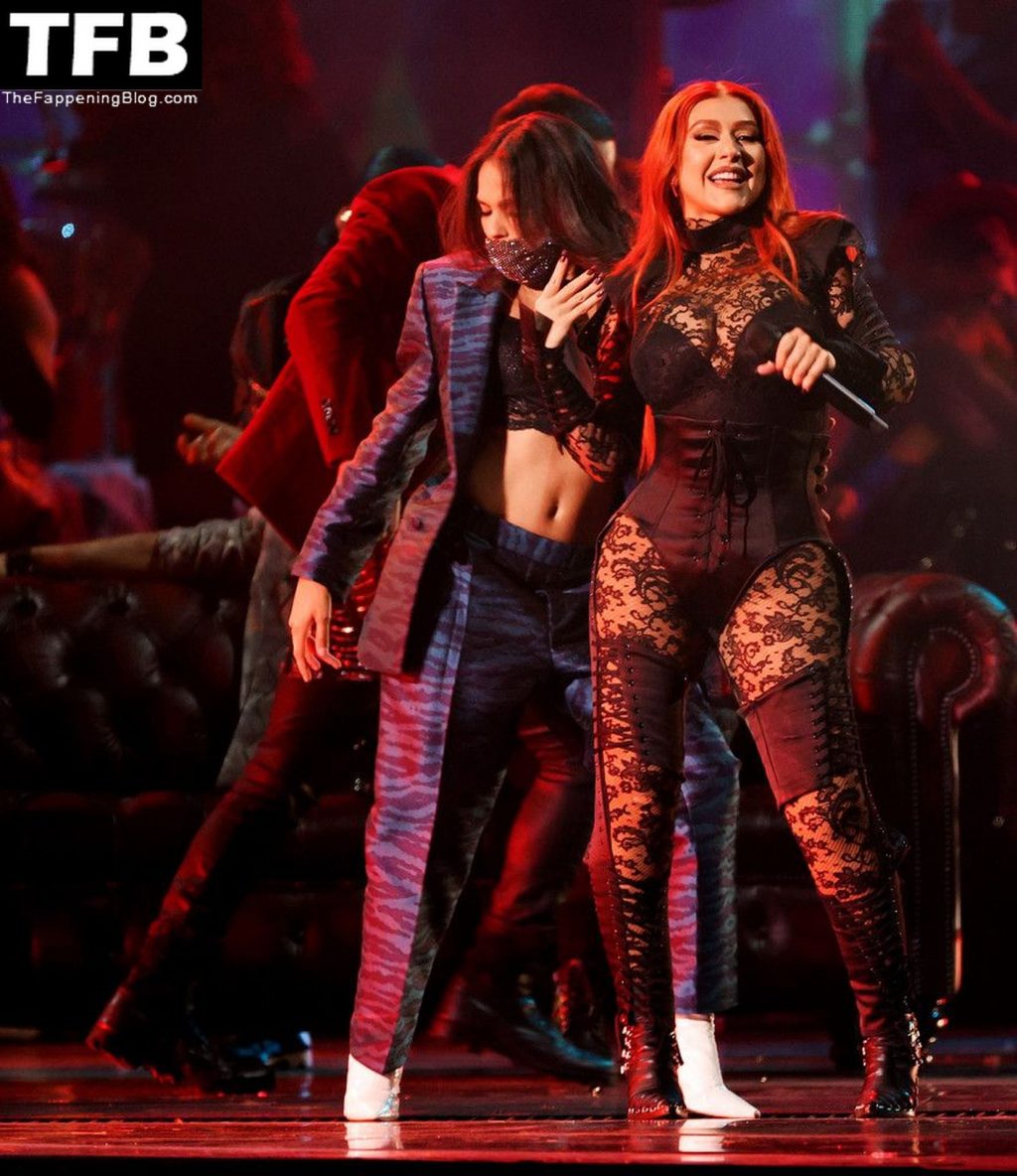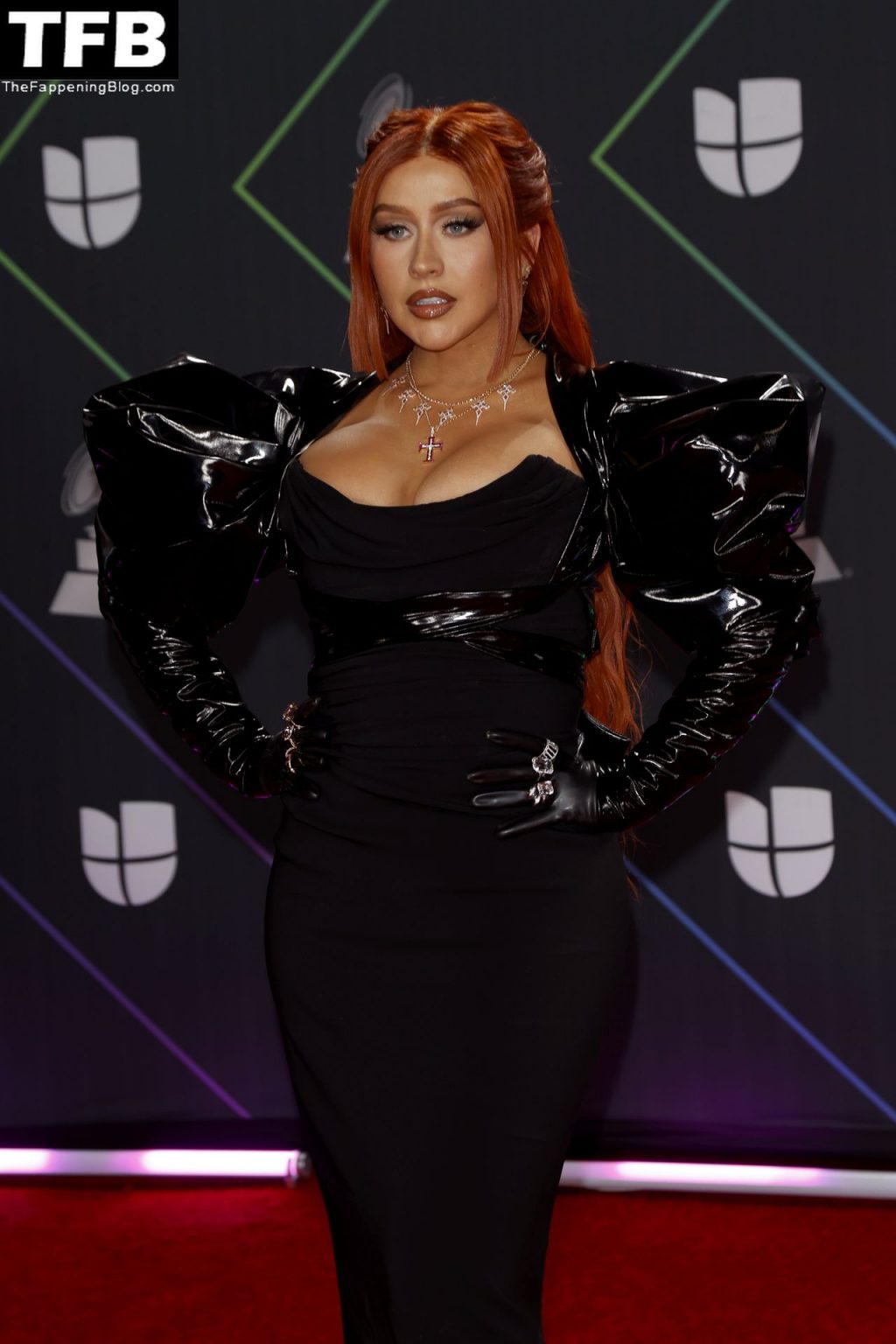 Christina Aguilera arrive sur le tapis rouge pour la 22e cérémonie annuelle des Latin Grammy Awards à la MGM Grand Garden Arena de Las Vegas, le 18/11/2021. La chanteuse se produit également sur scène pendant l’événement.
