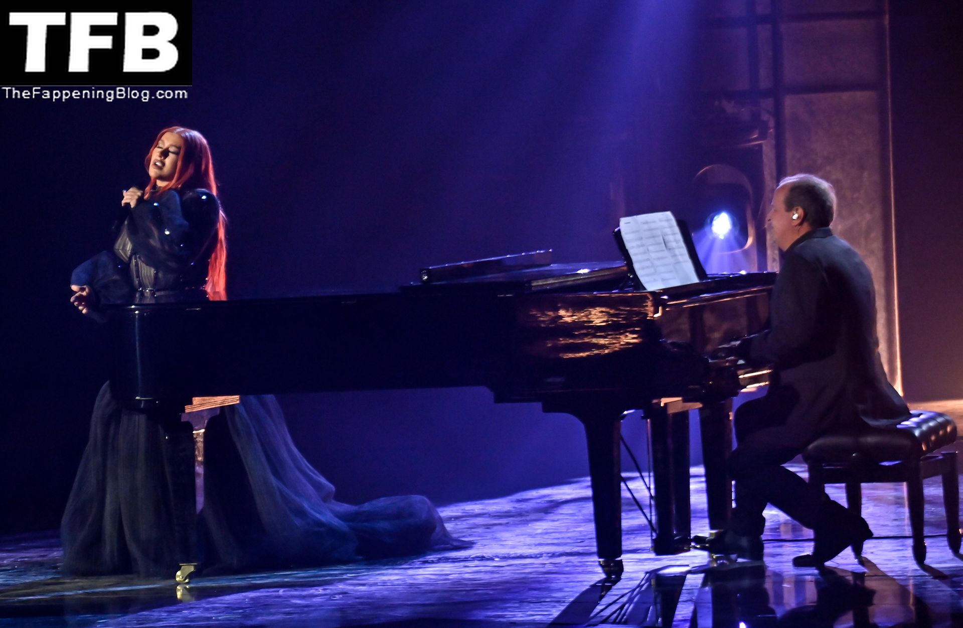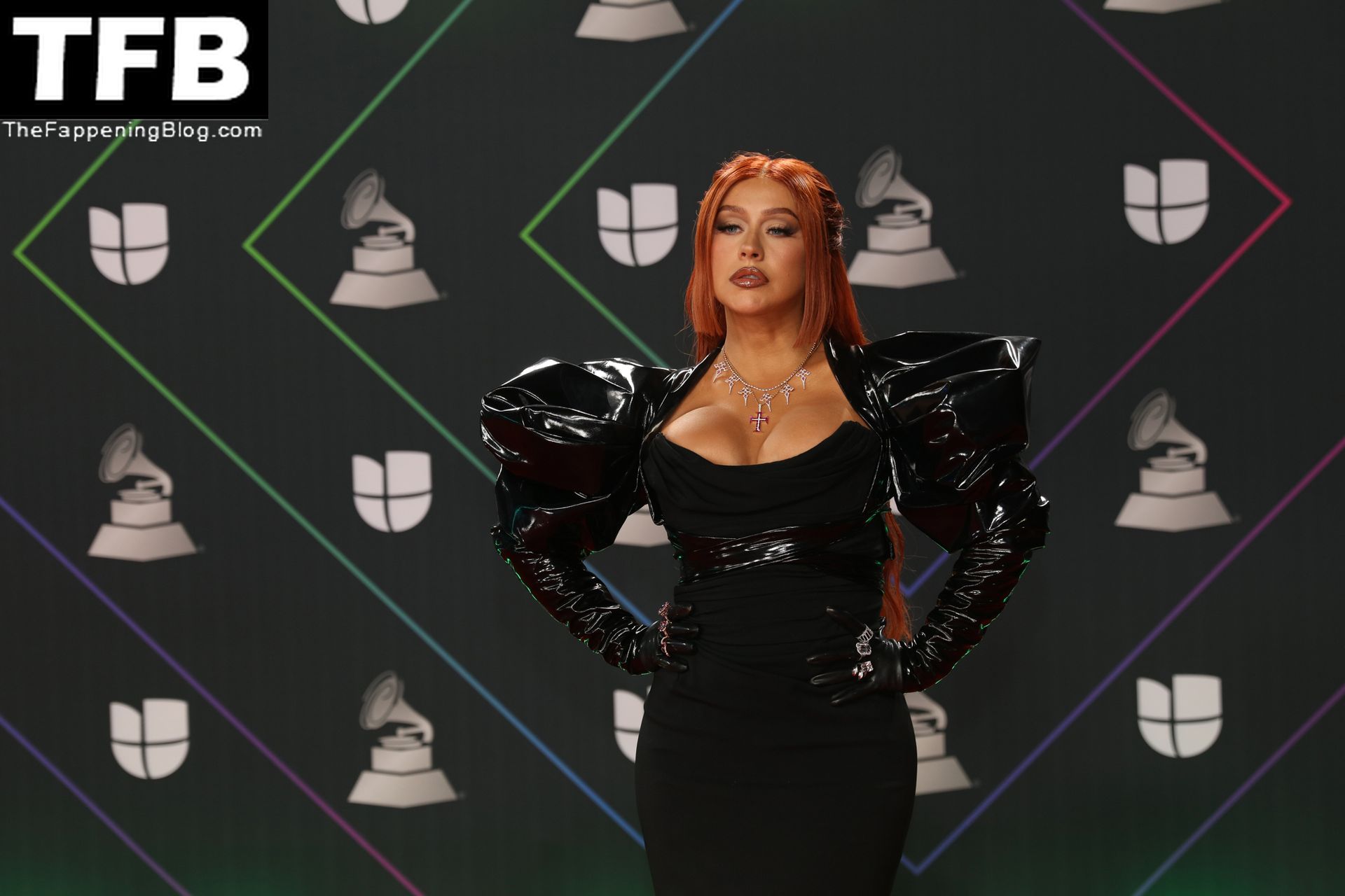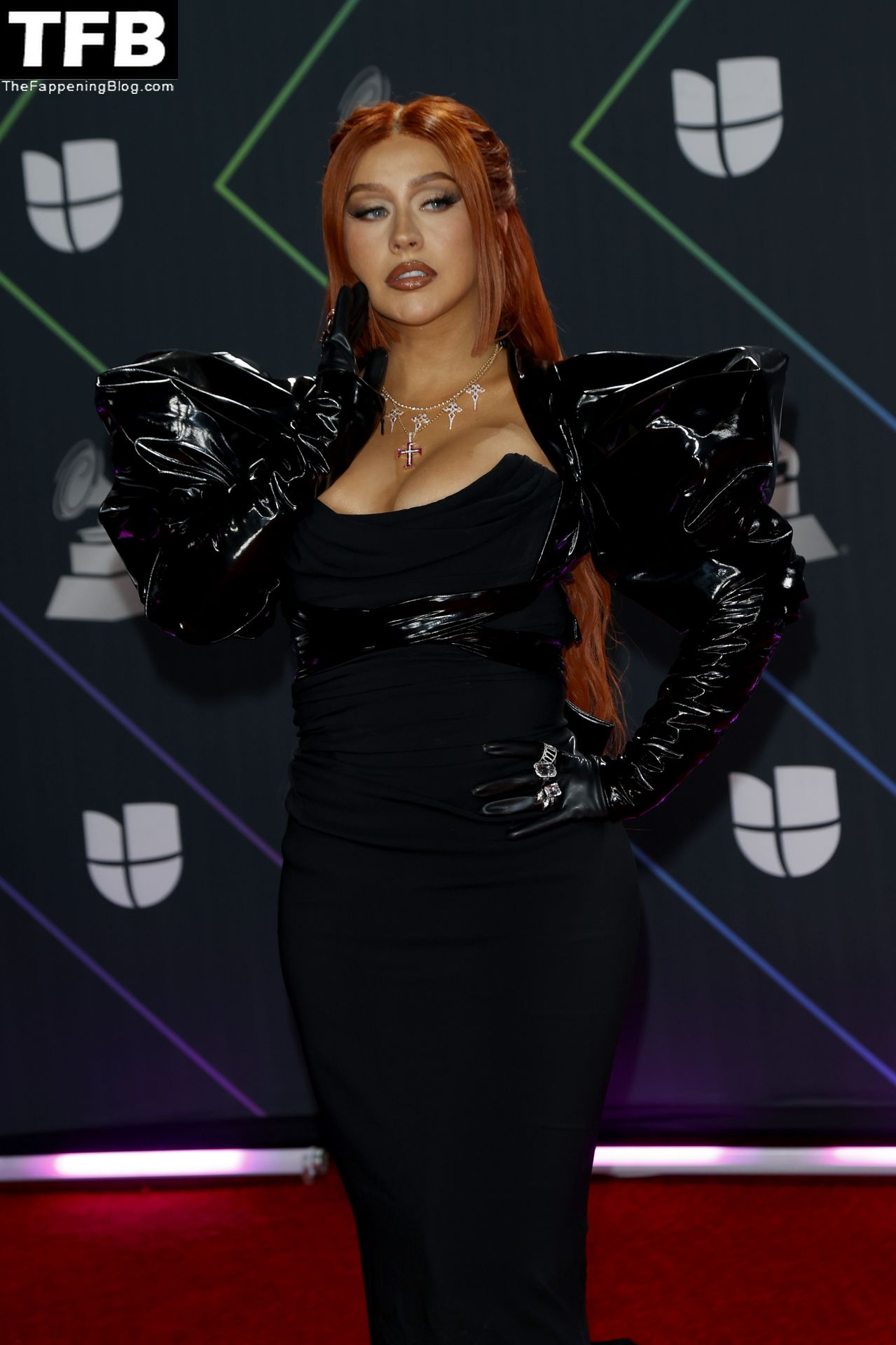 Christina Aguilera arrive sur le tapis rouge pour la 22e cérémonie annuelle des Latin Grammy Awards à la MGM Grand Garden Arena de Las Vegas, le 18/11/2021. La chanteuse se produit également sur scène pendant l’événement.