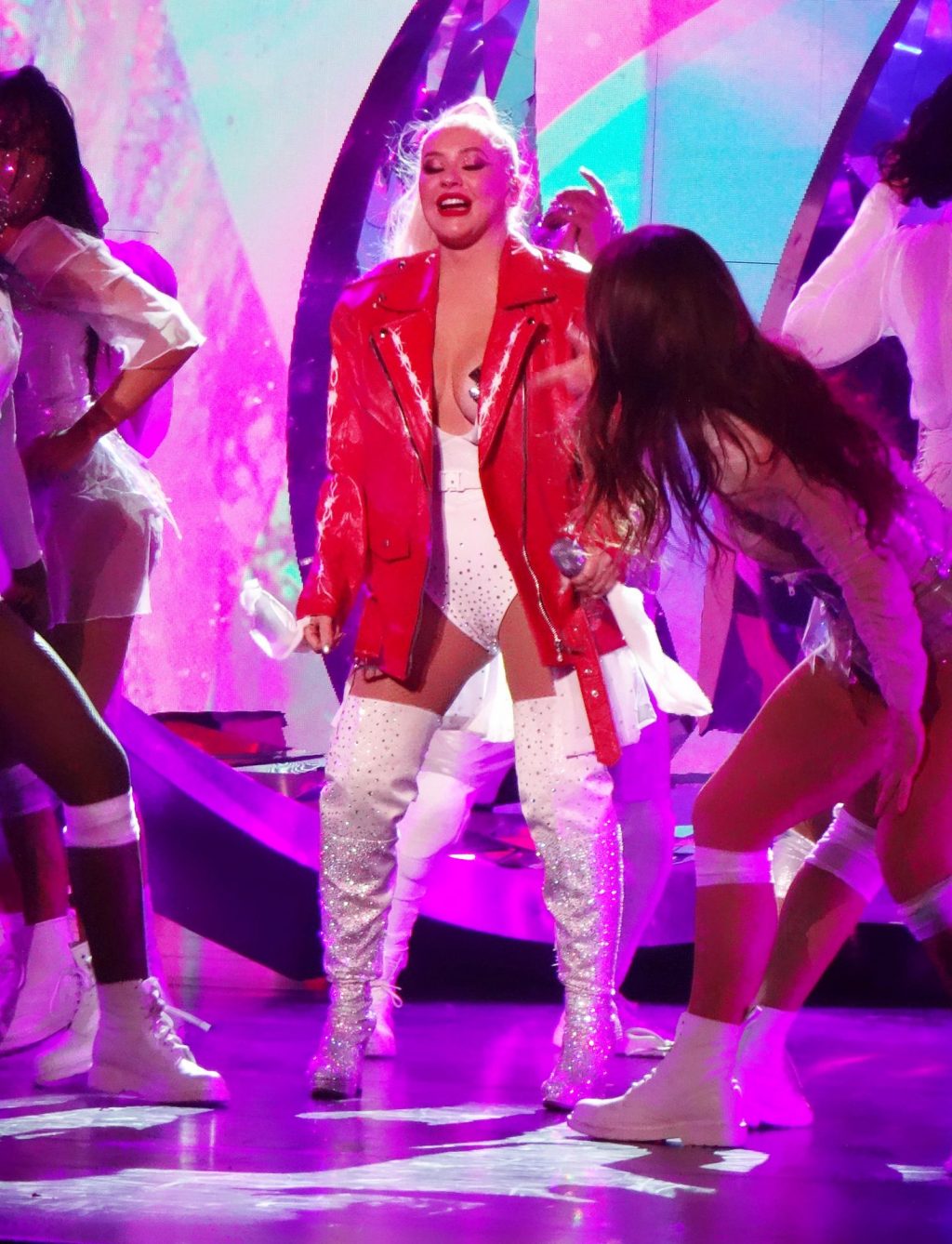 Christina Aguilera a subi un grave problème de costume lors de sa performance du réveillon du Nouvel An au Zappos Theatre à Las Vegas, le 31/12/2019.