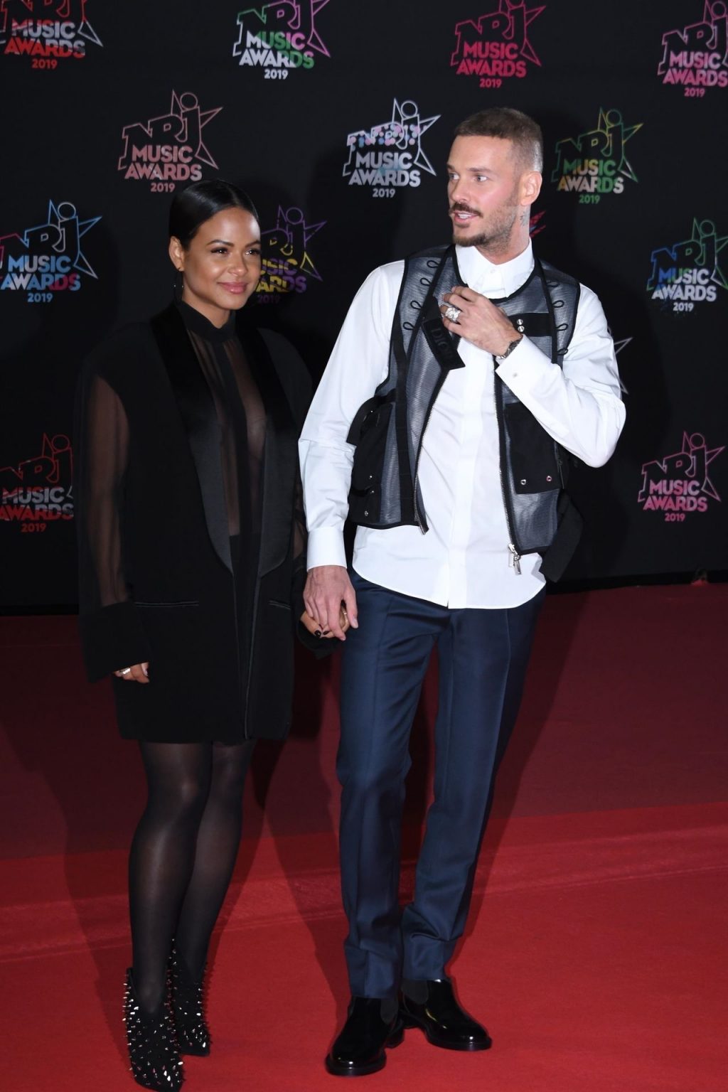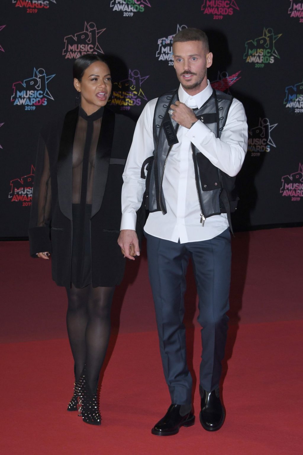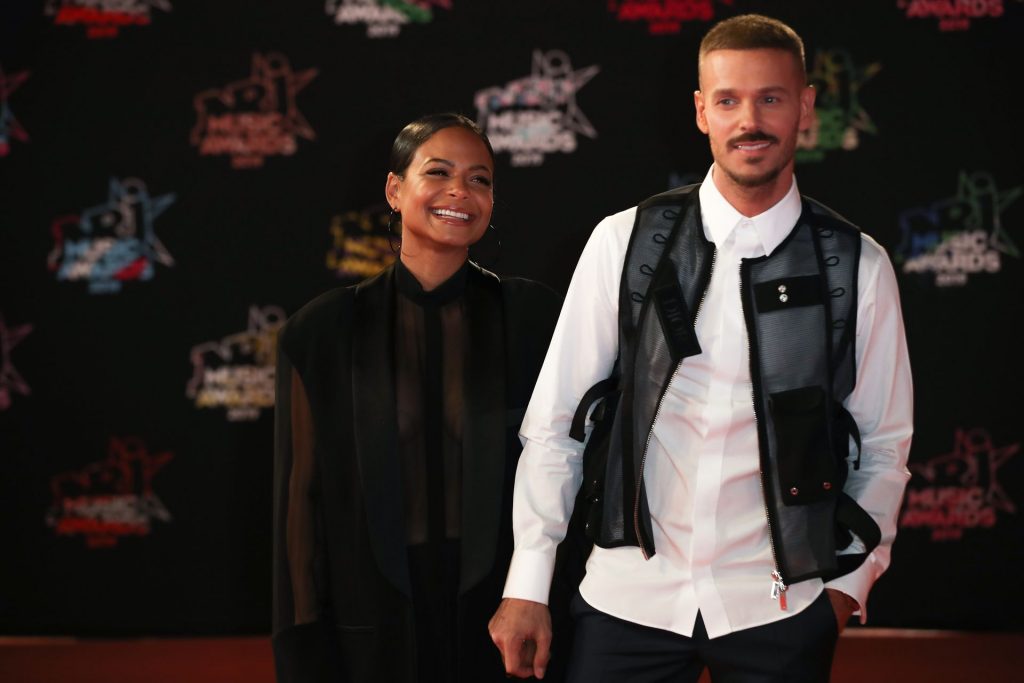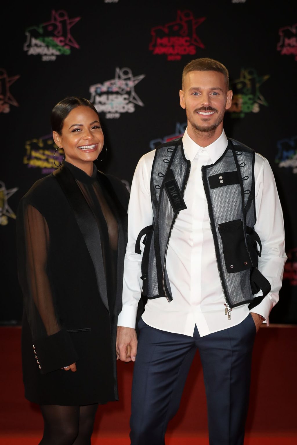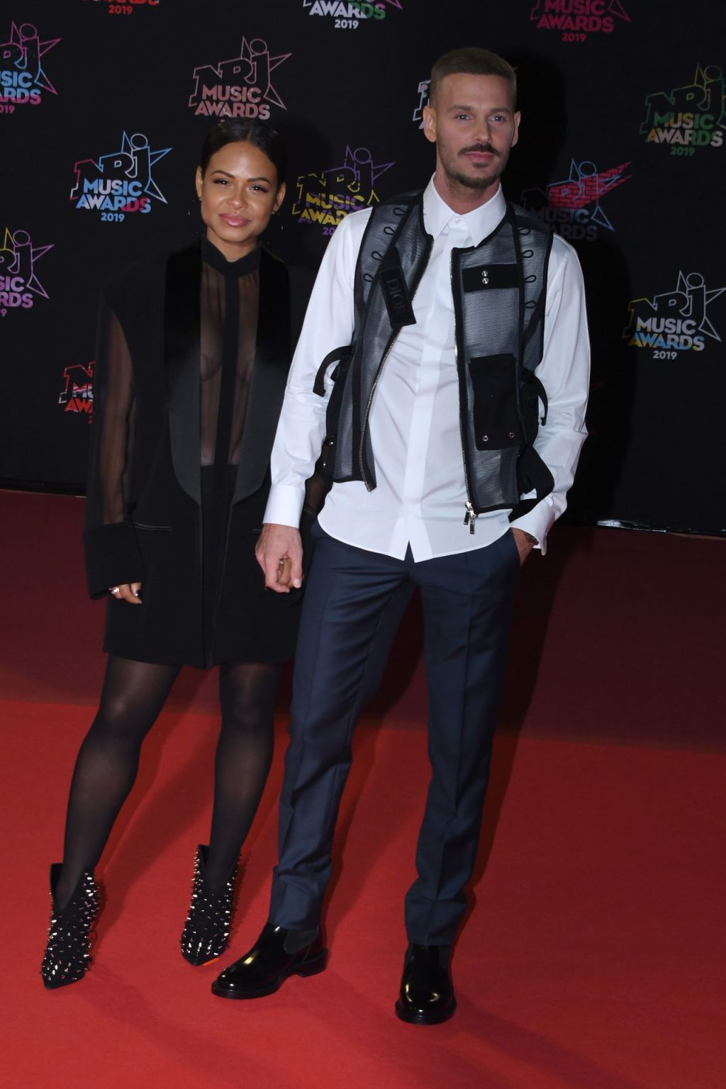 Chanteuse américaine Christina Milian et chanteur français M Pokora posent sur le tapis rouge à leur arrivée pour assister à la 21e cérémonie des NRJ Music Awards au Palais des Festivals à Cannes, dans le sud-est de la France, 11/09/2019.
