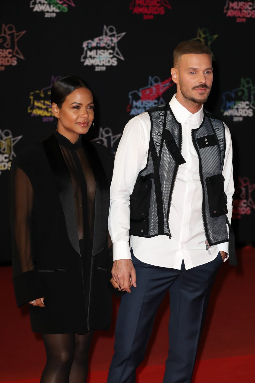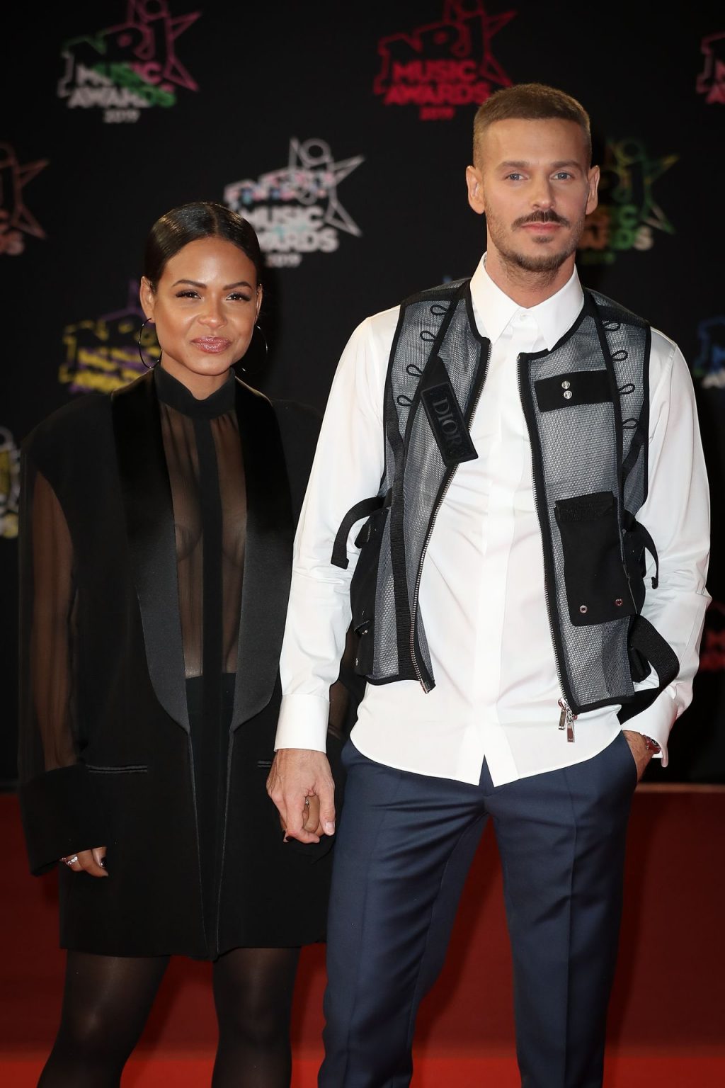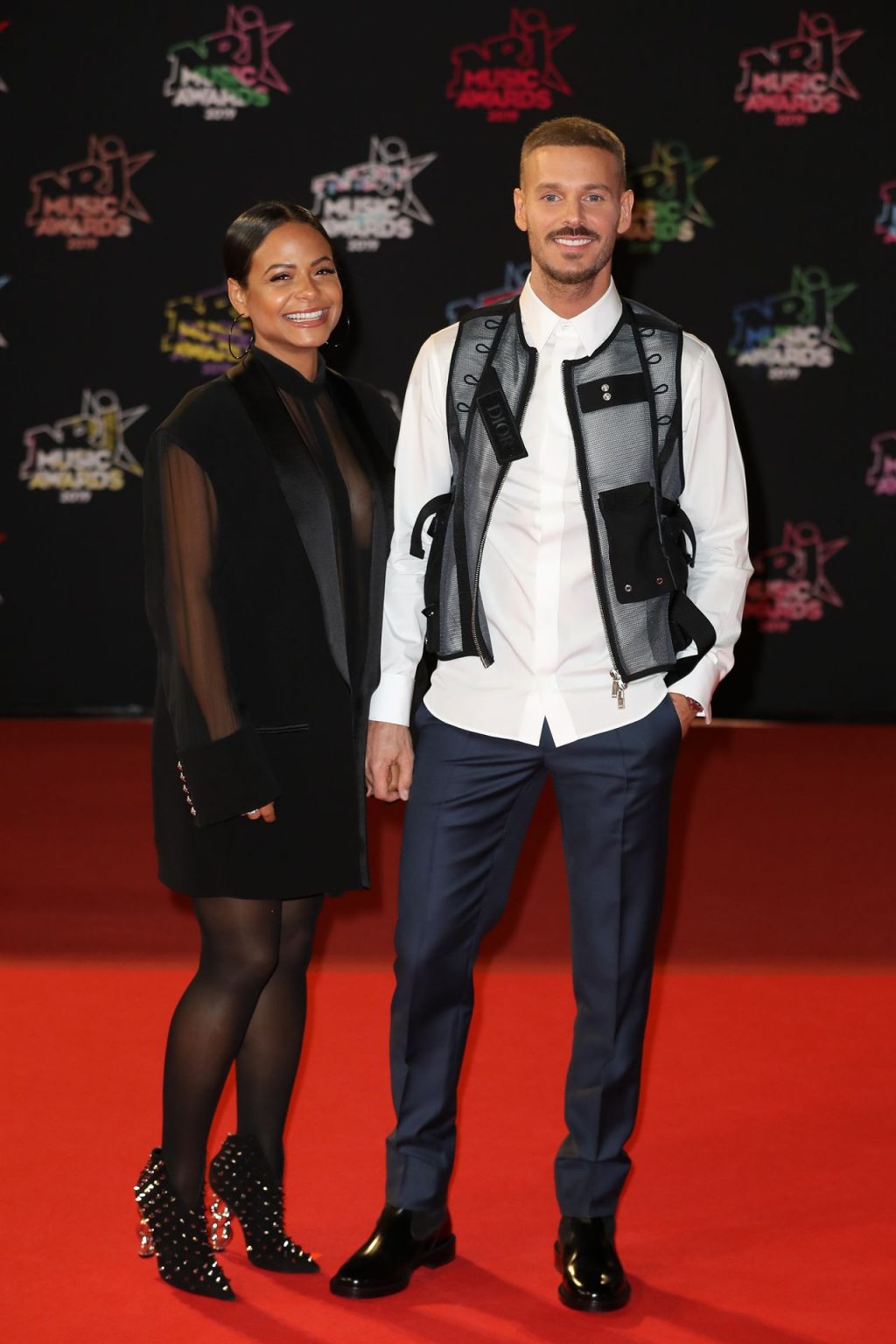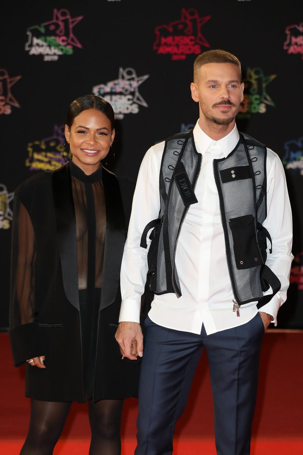Chanteuse américaine Christina Milian et chanteur français M Pokora posent sur le tapis rouge à leur arrivée pour assister à la 21e cérémonie des NRJ Music Awards au Palais des Festivals à Cannes, dans le sud-est de la France, 11/09/2019.