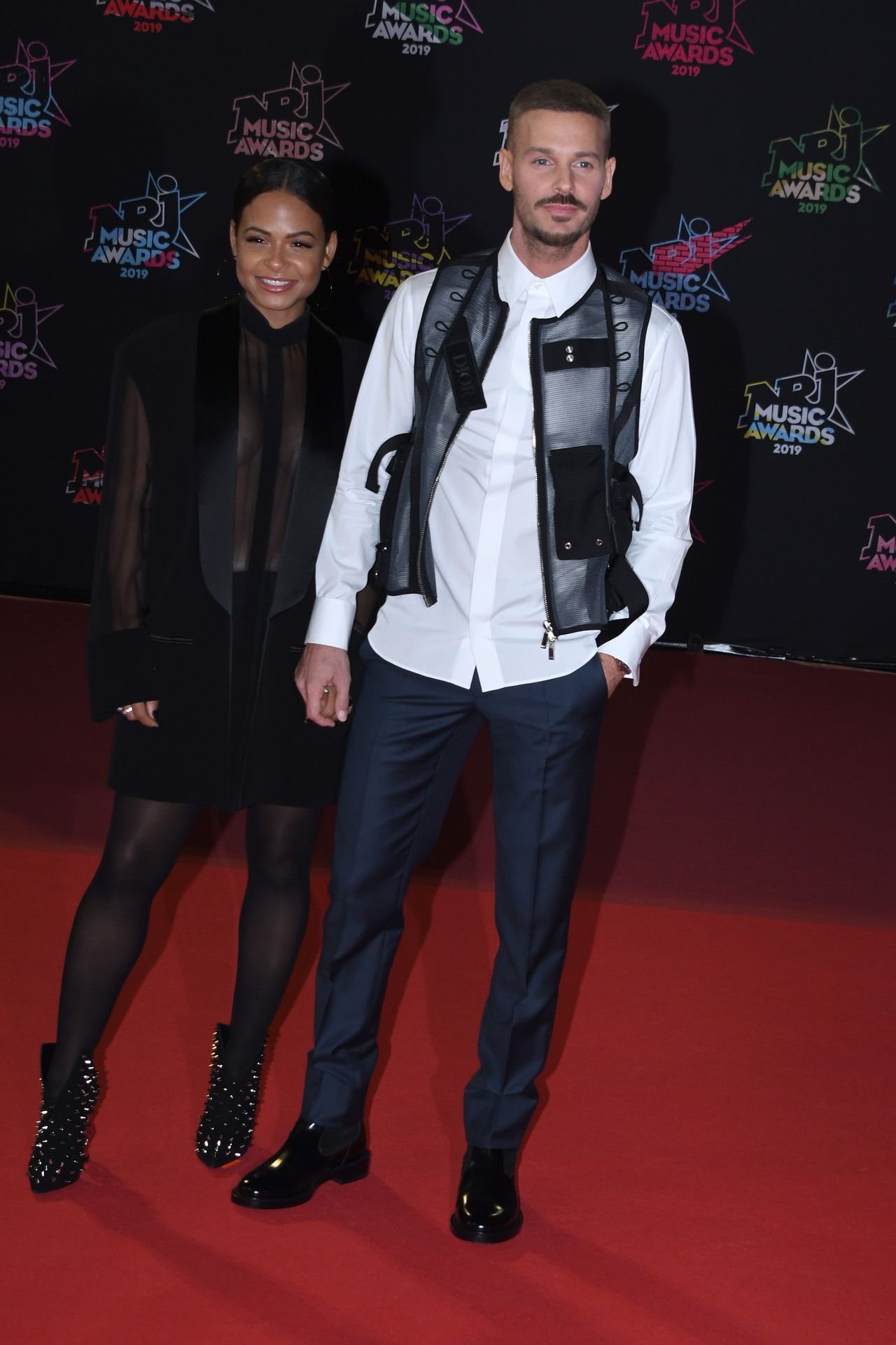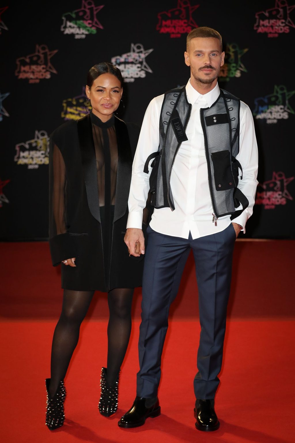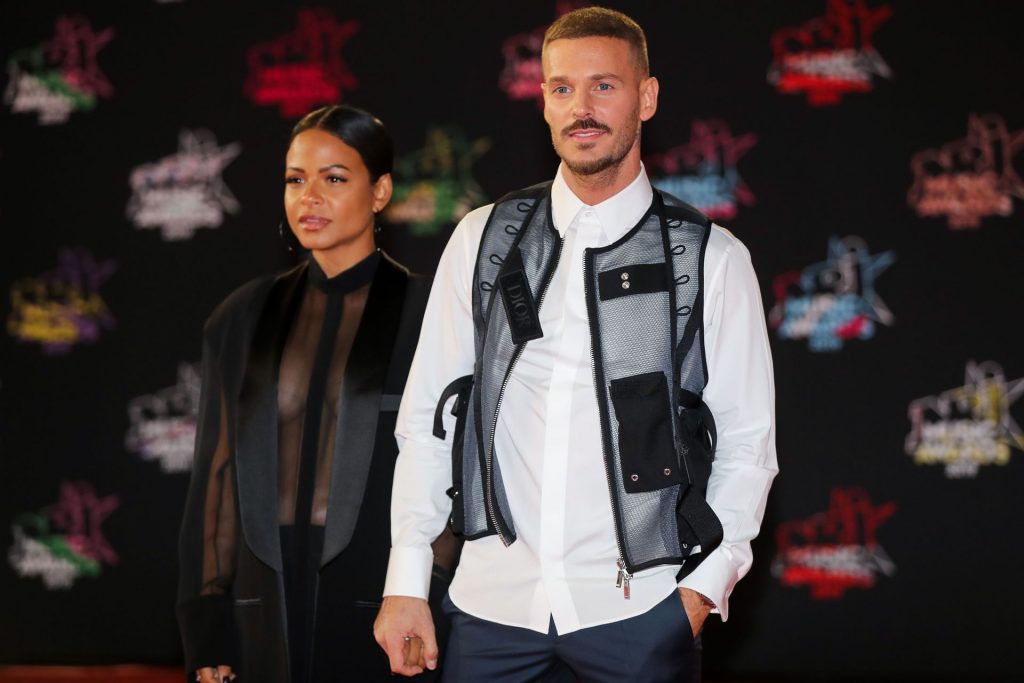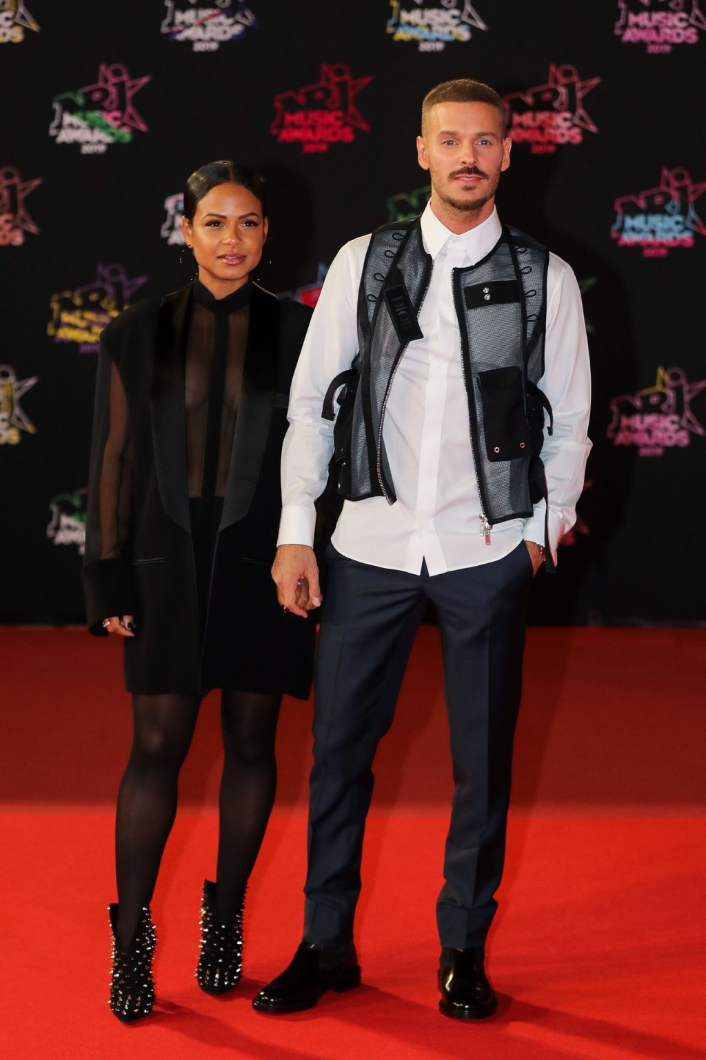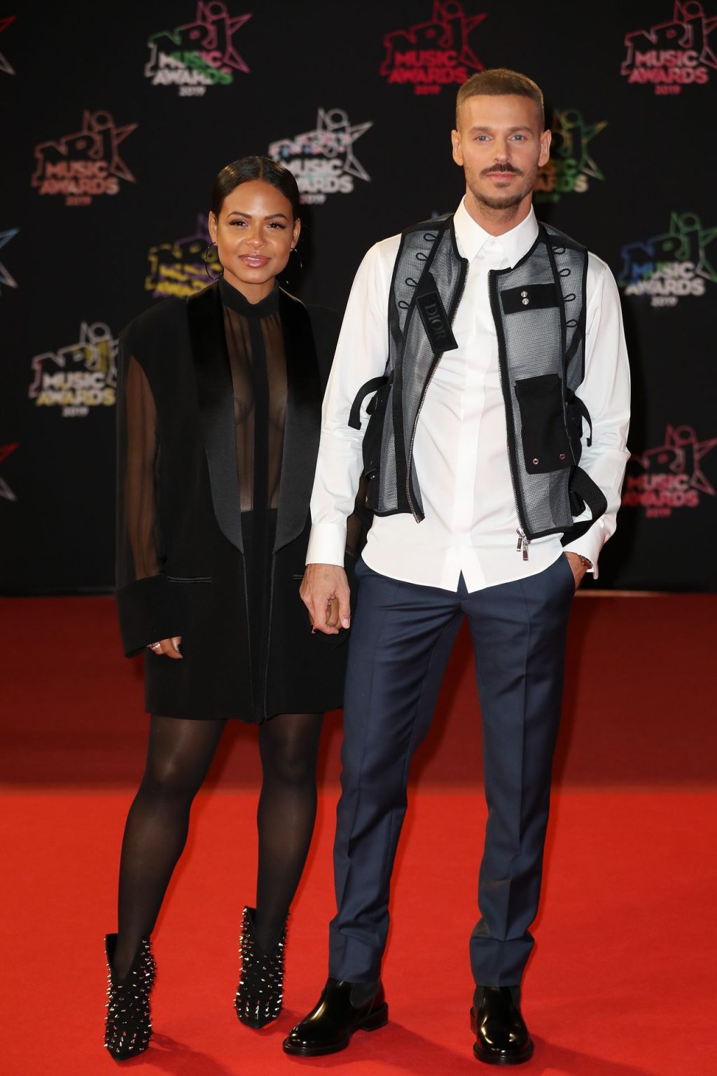 Chanteuse américaine Christina Milian et chanteur français M Pokora posent sur le tapis rouge à leur arrivée pour assister à la 21e cérémonie des NRJ Music Awards au Palais des Festivals à Cannes, dans le sud-est de la France, 11/09/2019.