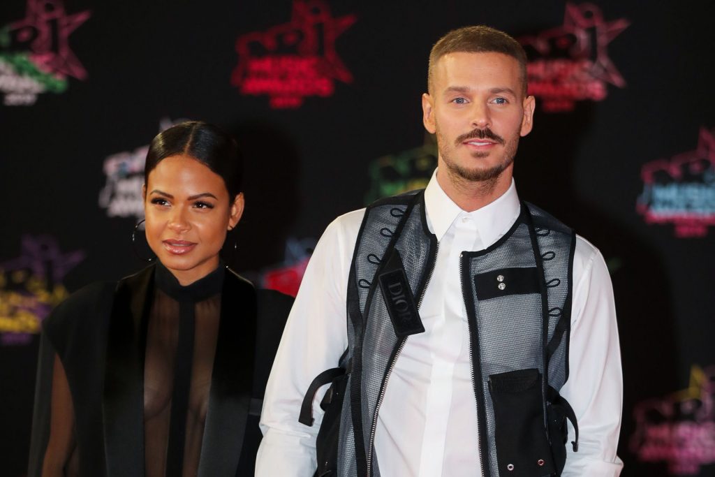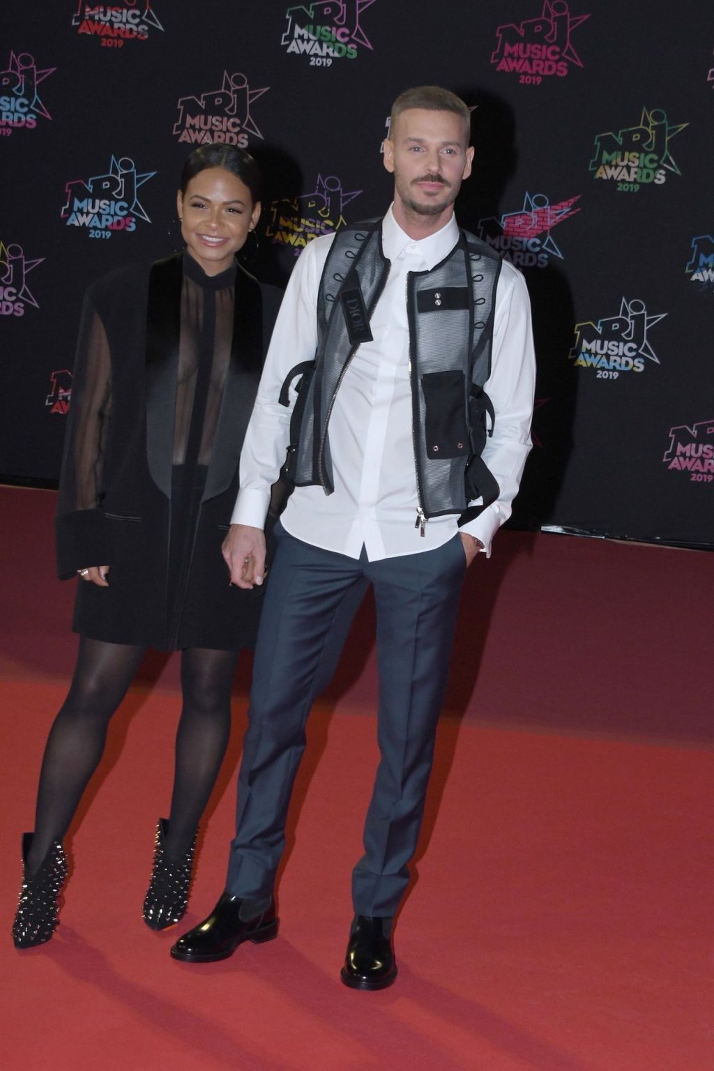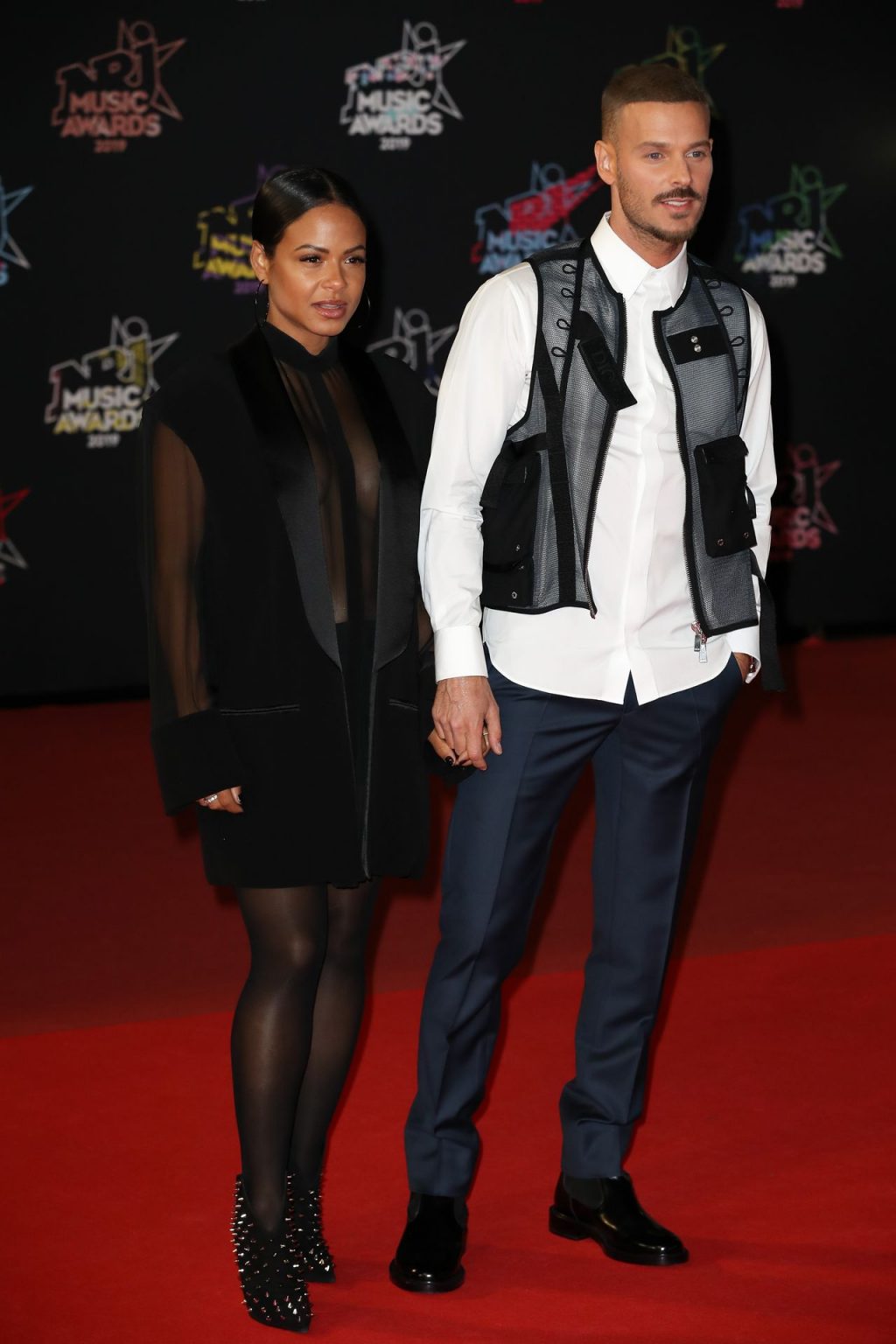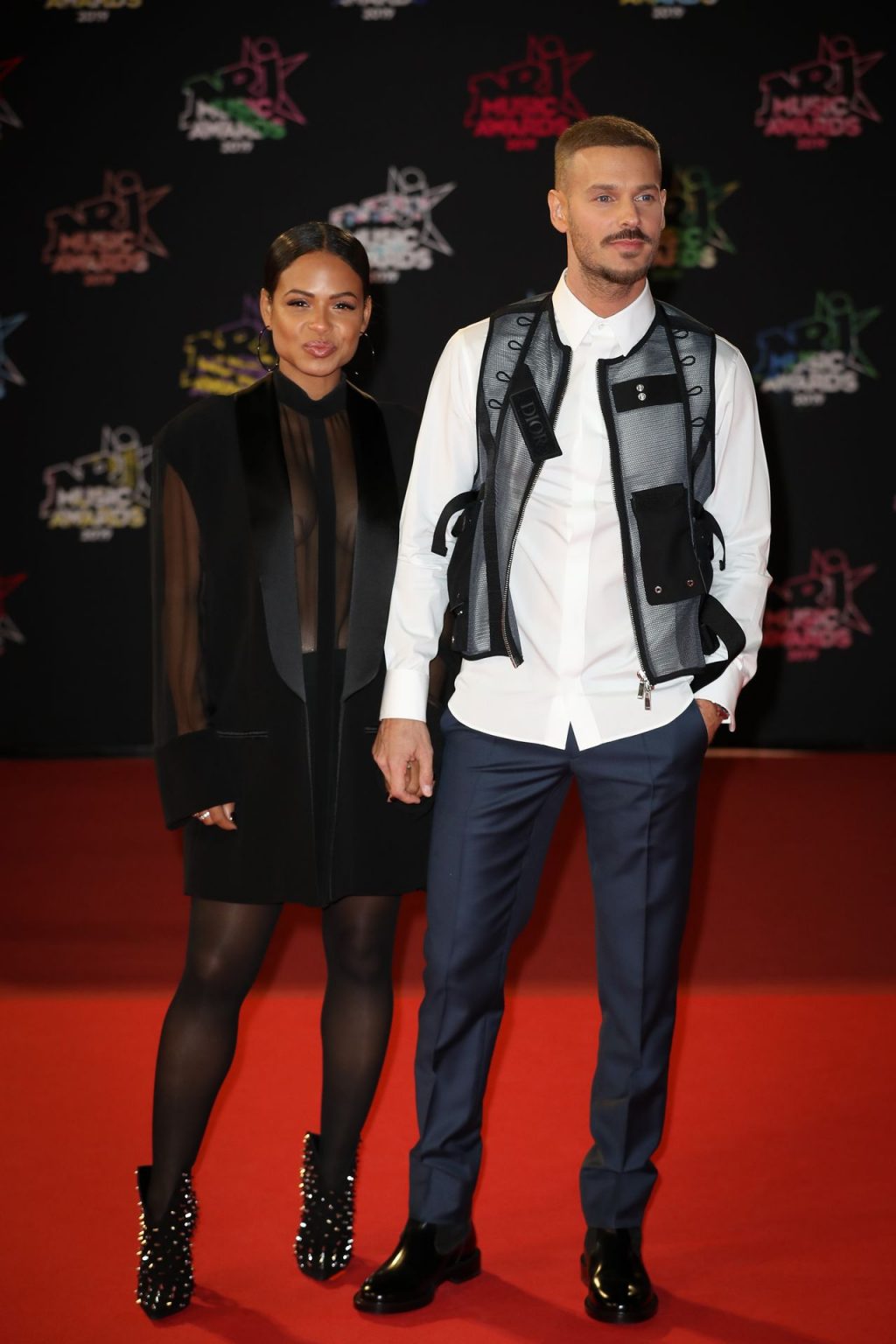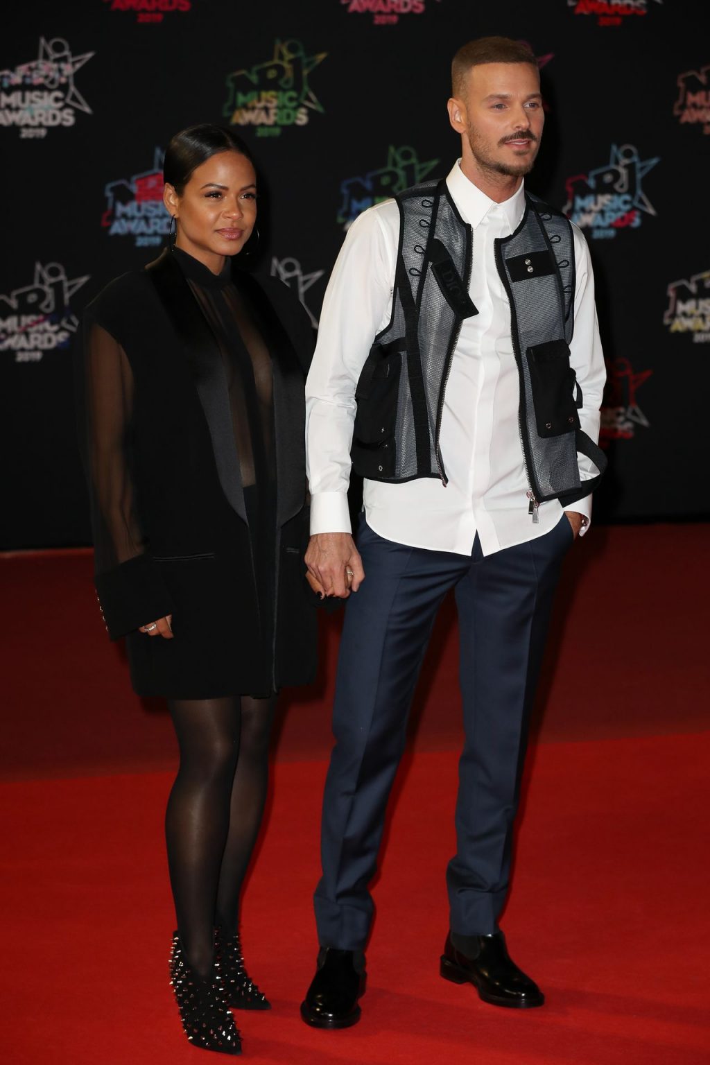 Chanteuse américaine Christina Milian et chanteur français M Pokora posent sur le tapis rouge à leur arrivée pour assister à la 21e cérémonie des NRJ Music Awards au Palais des Festivals à Cannes, dans le sud-est de la France, 11/09/2019.