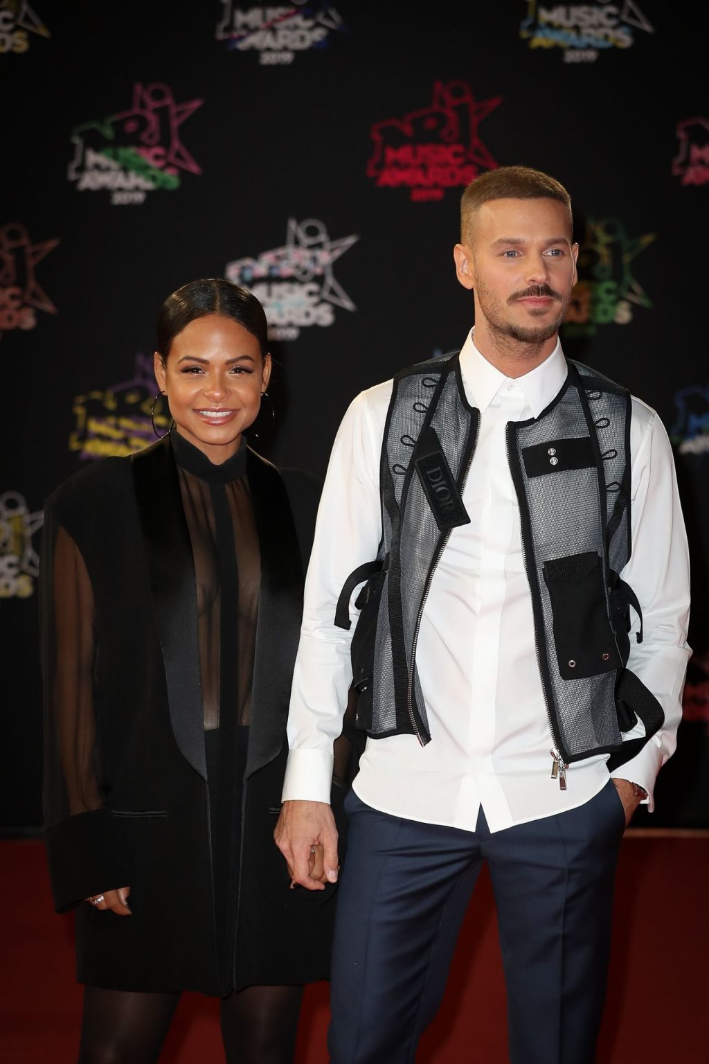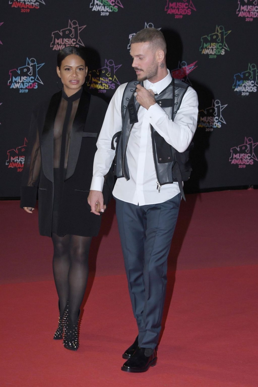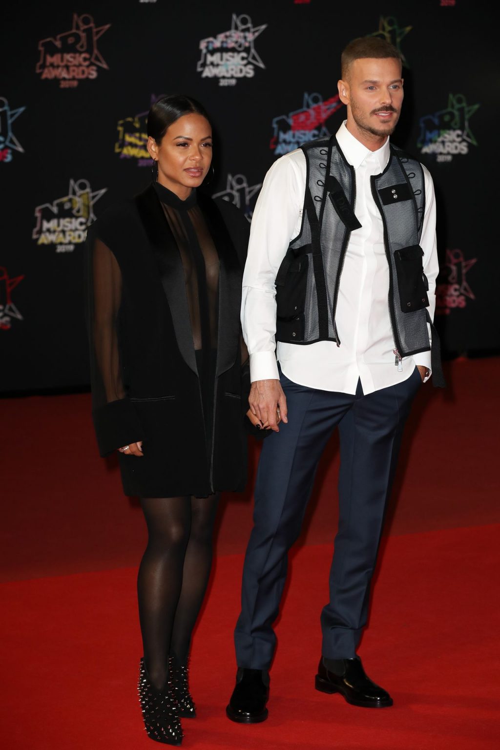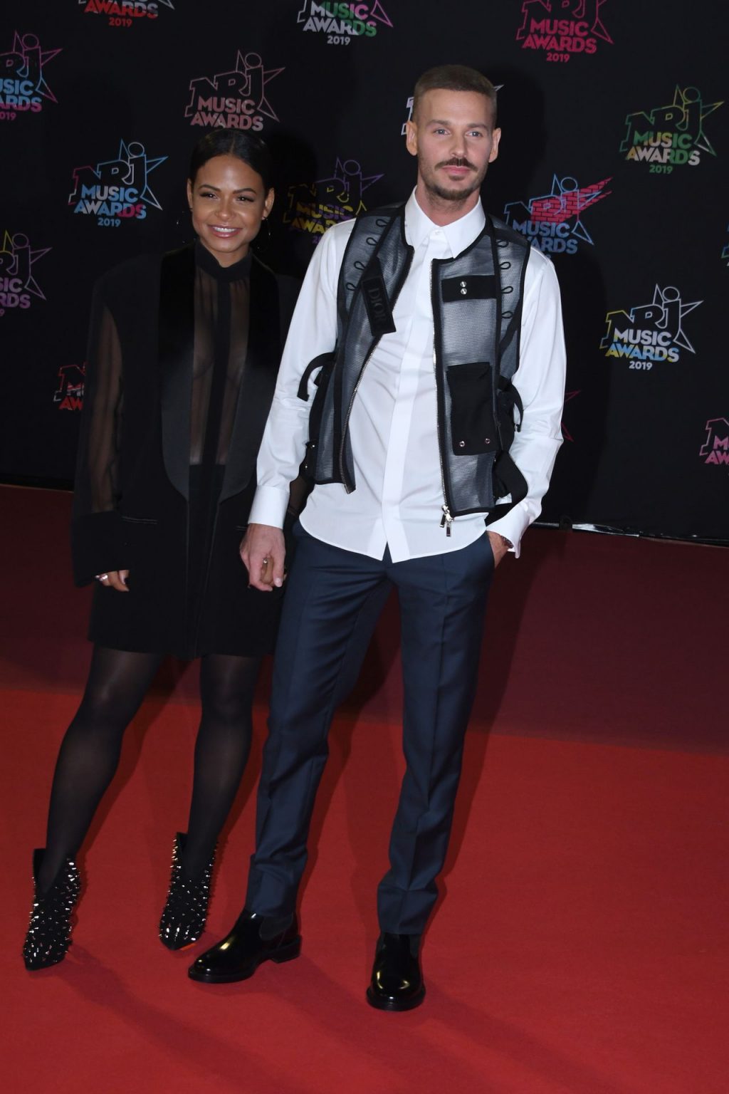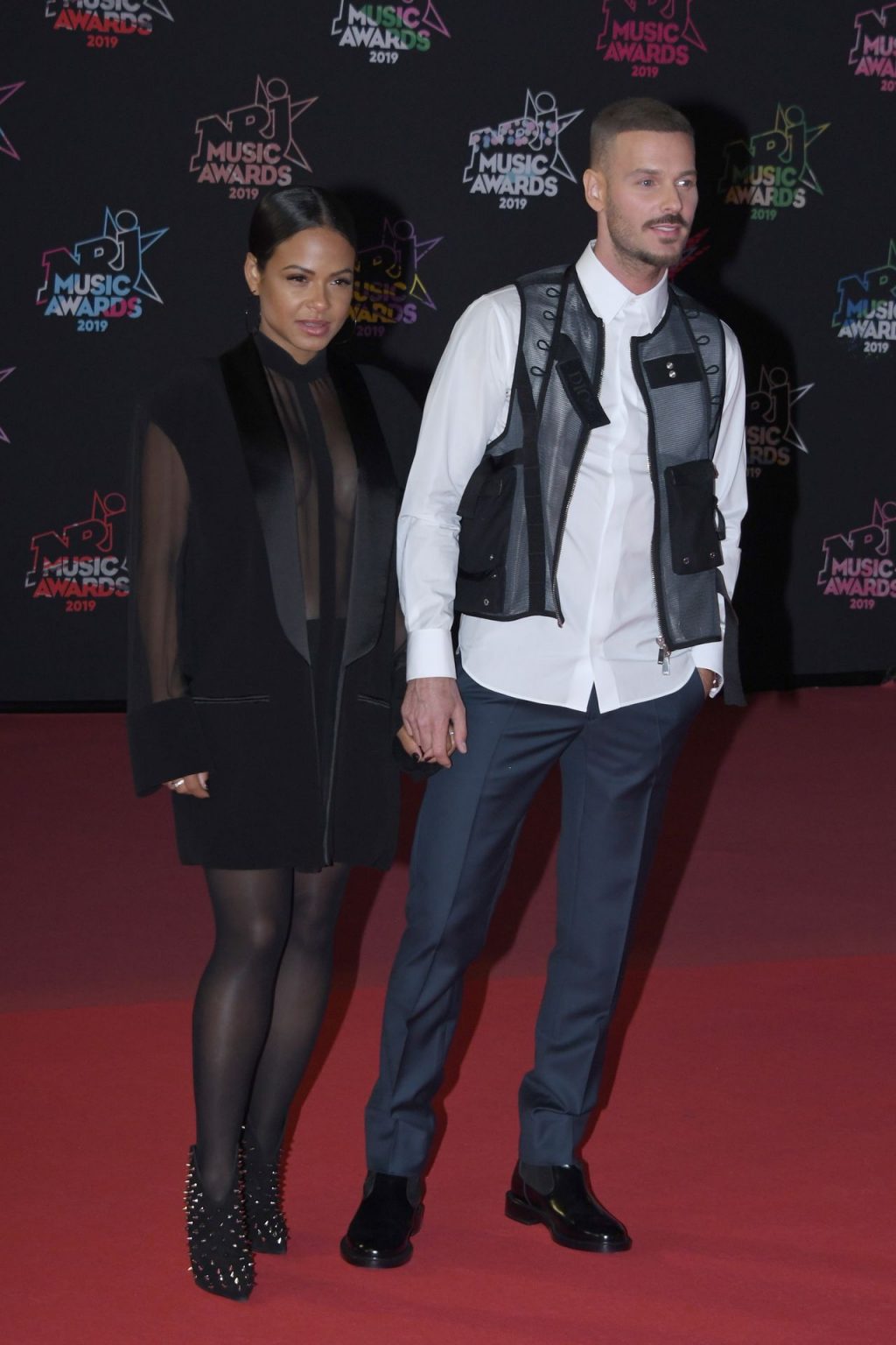 Chanteuse américaine Christina Milian et chanteur français M Pokora posent sur le tapis rouge à leur arrivée pour assister à la 21e cérémonie des NRJ Music Awards au Palais des Festivals à Cannes, dans le sud-est de la France, 11/09/2019.