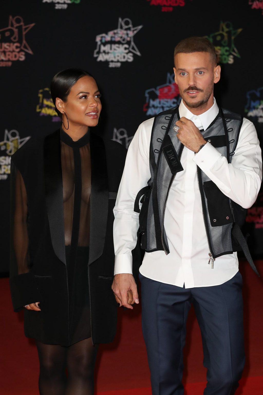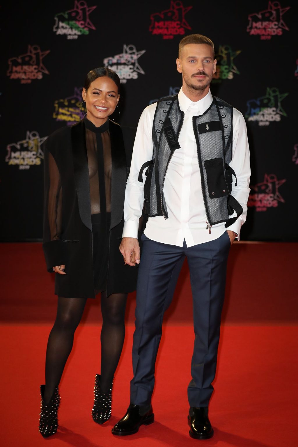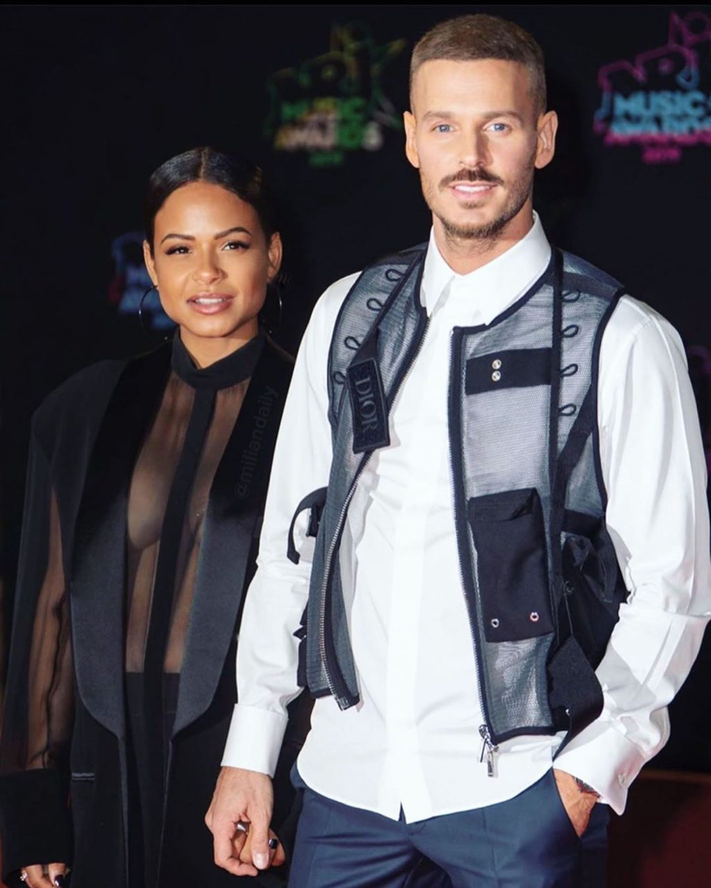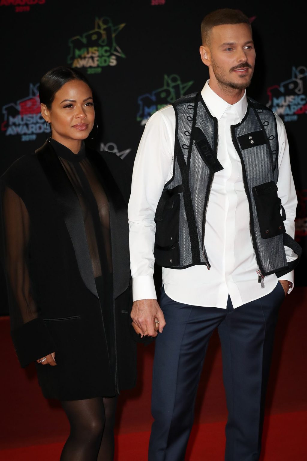 Chanteuse américaine Christina Milian et chanteur français M Pokora posent sur le tapis rouge à leur arrivée pour assister à la 21e cérémonie des NRJ Music Awards au Palais des Festivals à Cannes, dans le sud-est de la France, 11/09/2019.