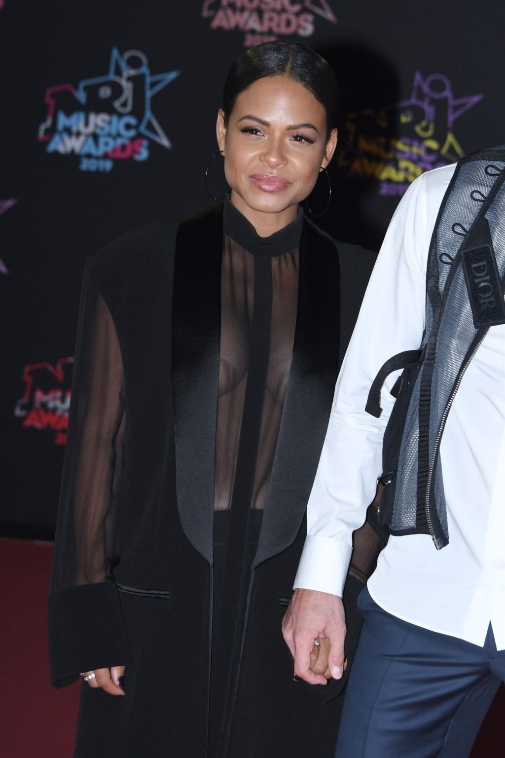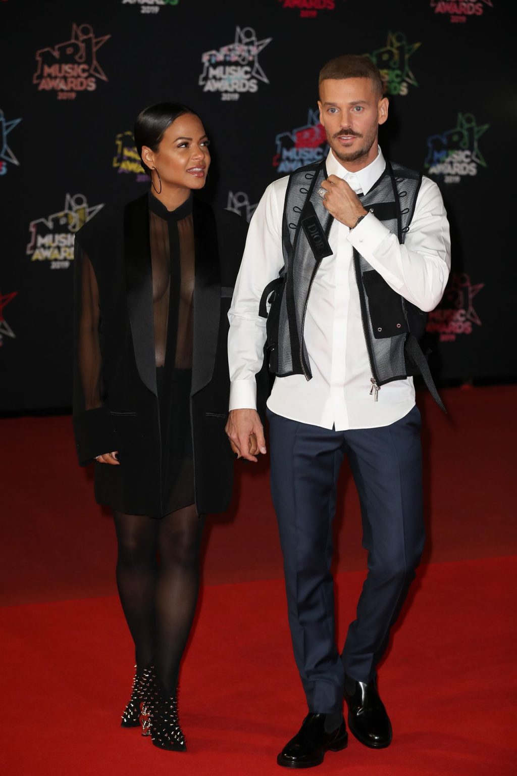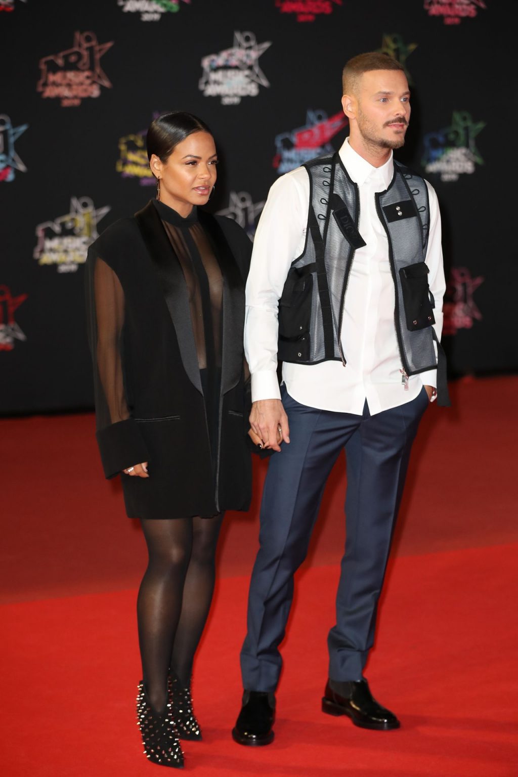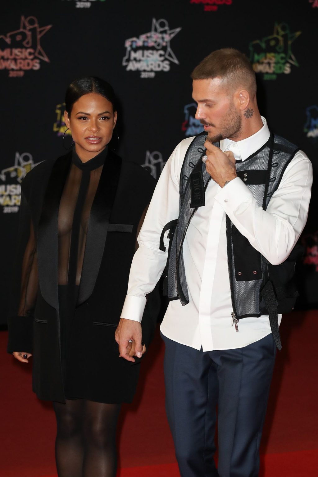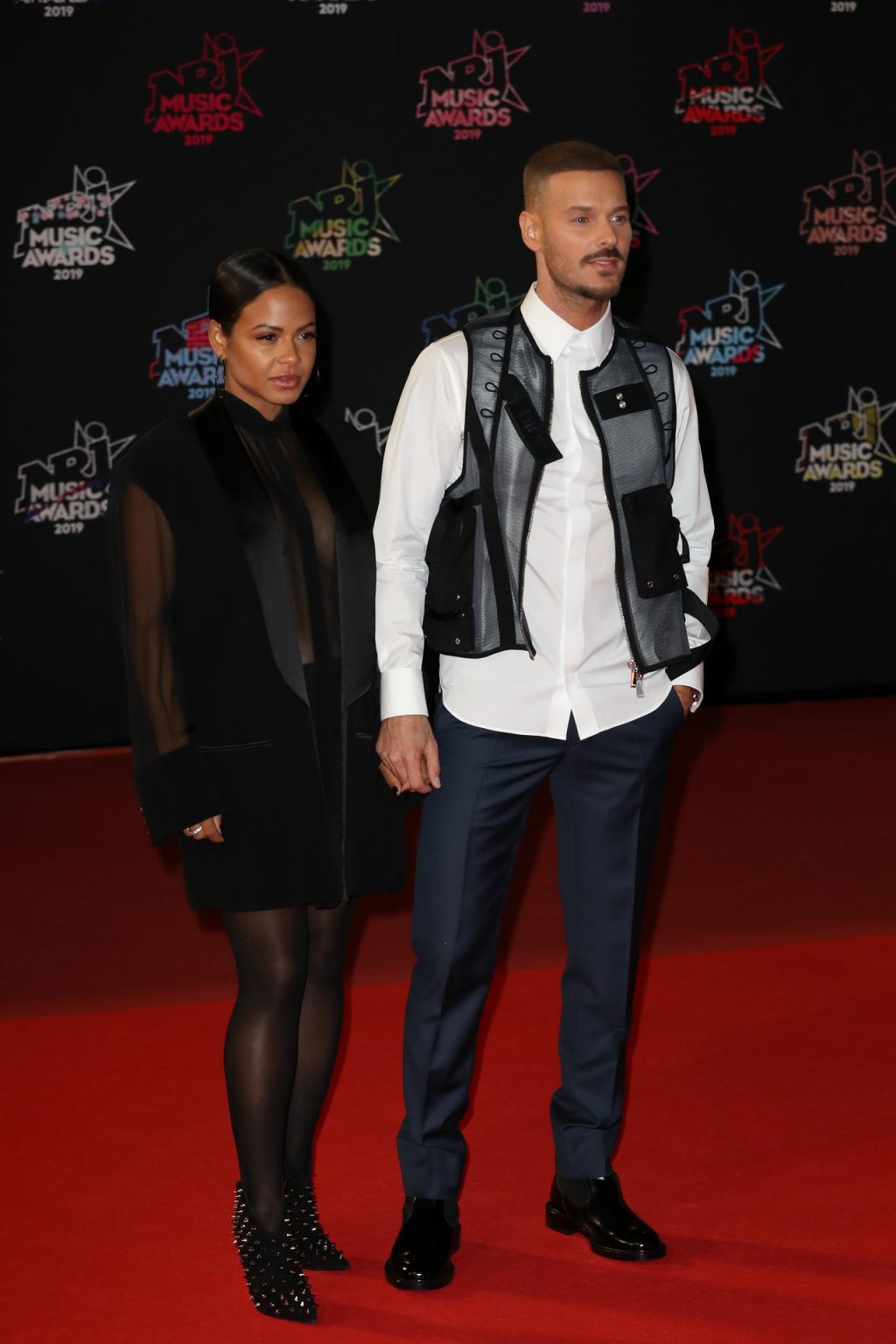 Chanteuse américaine Christina Milian et chanteur français M Pokora posent sur le tapis rouge à leur arrivée pour assister à la 21e cérémonie des NRJ Music Awards au Palais des Festivals à Cannes, dans le sud-est de la France, 11/09/2019.