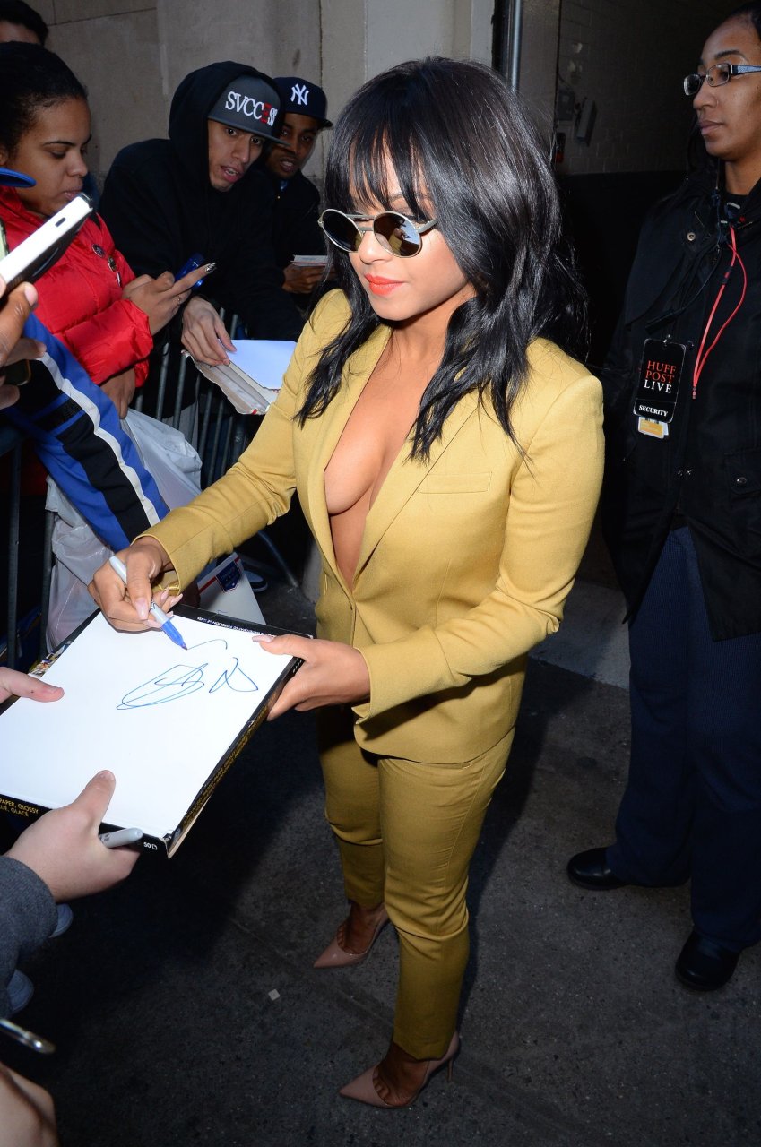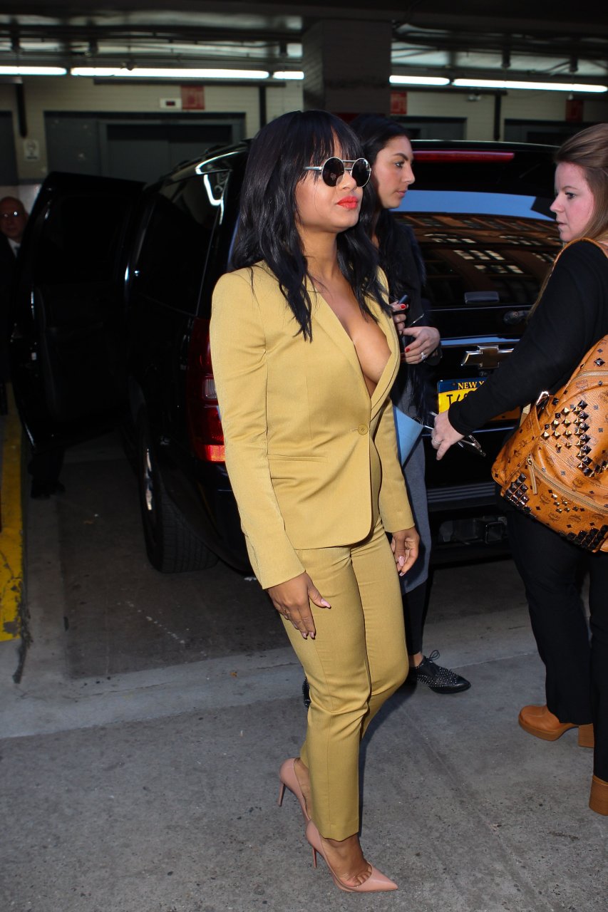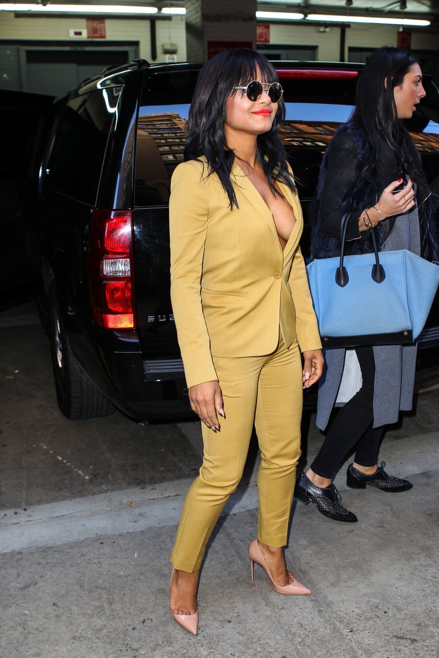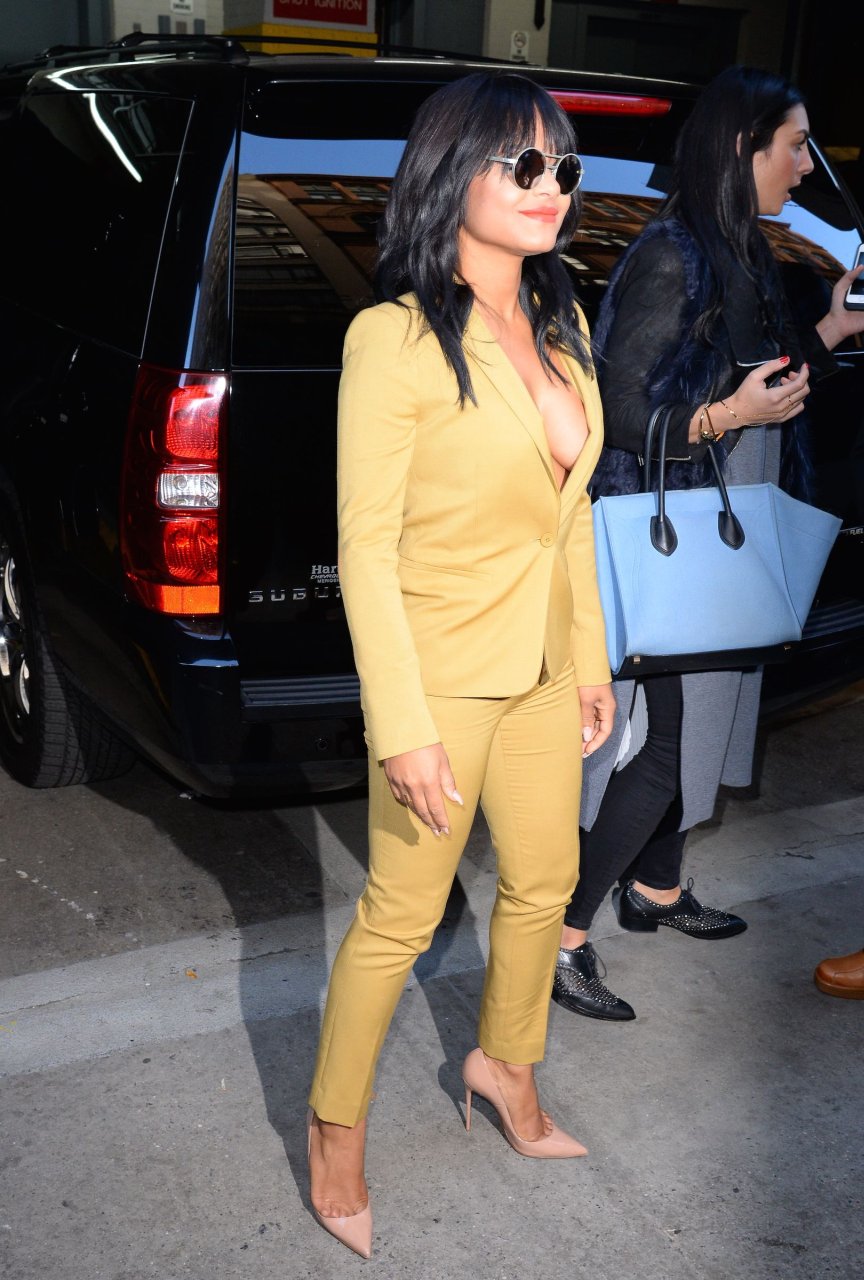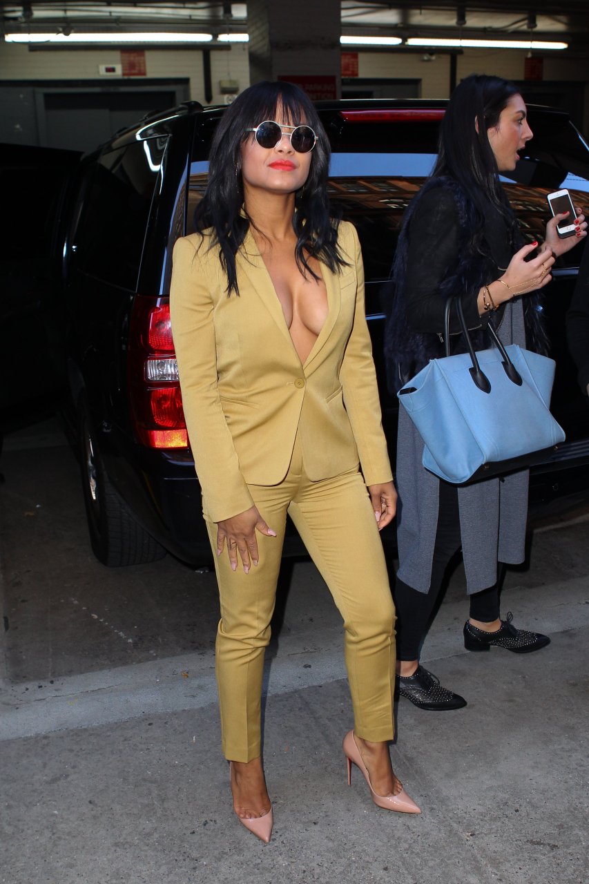 Nouvelles photos de paparazzi de Christina Milian sans soutien-gorge à HuffPost Live à NY le 26/10/15. Christina Milian est une actrice, chanteuse et auteure-compositrice américaine. Âge : 34 (26 septembre 1981).