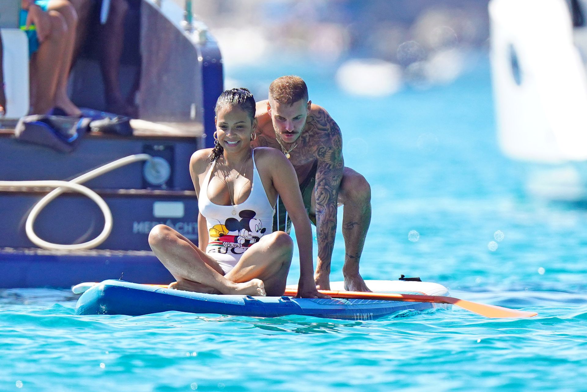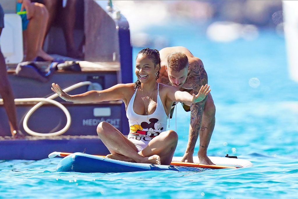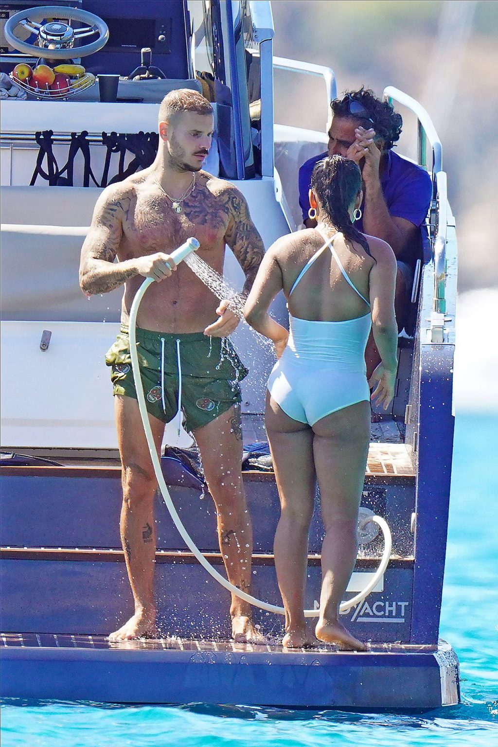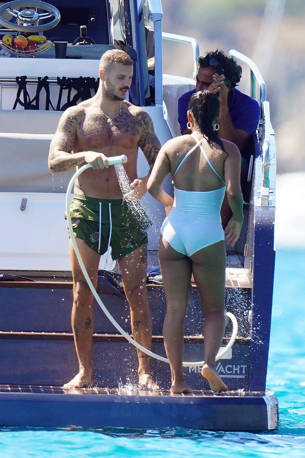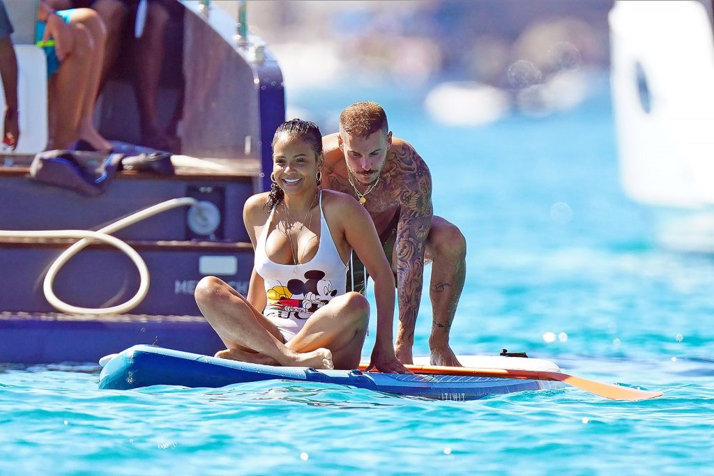 Matt Pokora (M. Pokora) et Christina Milian profitent d’une journée en bateau avec leur bébé pendant les vacances à St Tropez, 20/07/2020