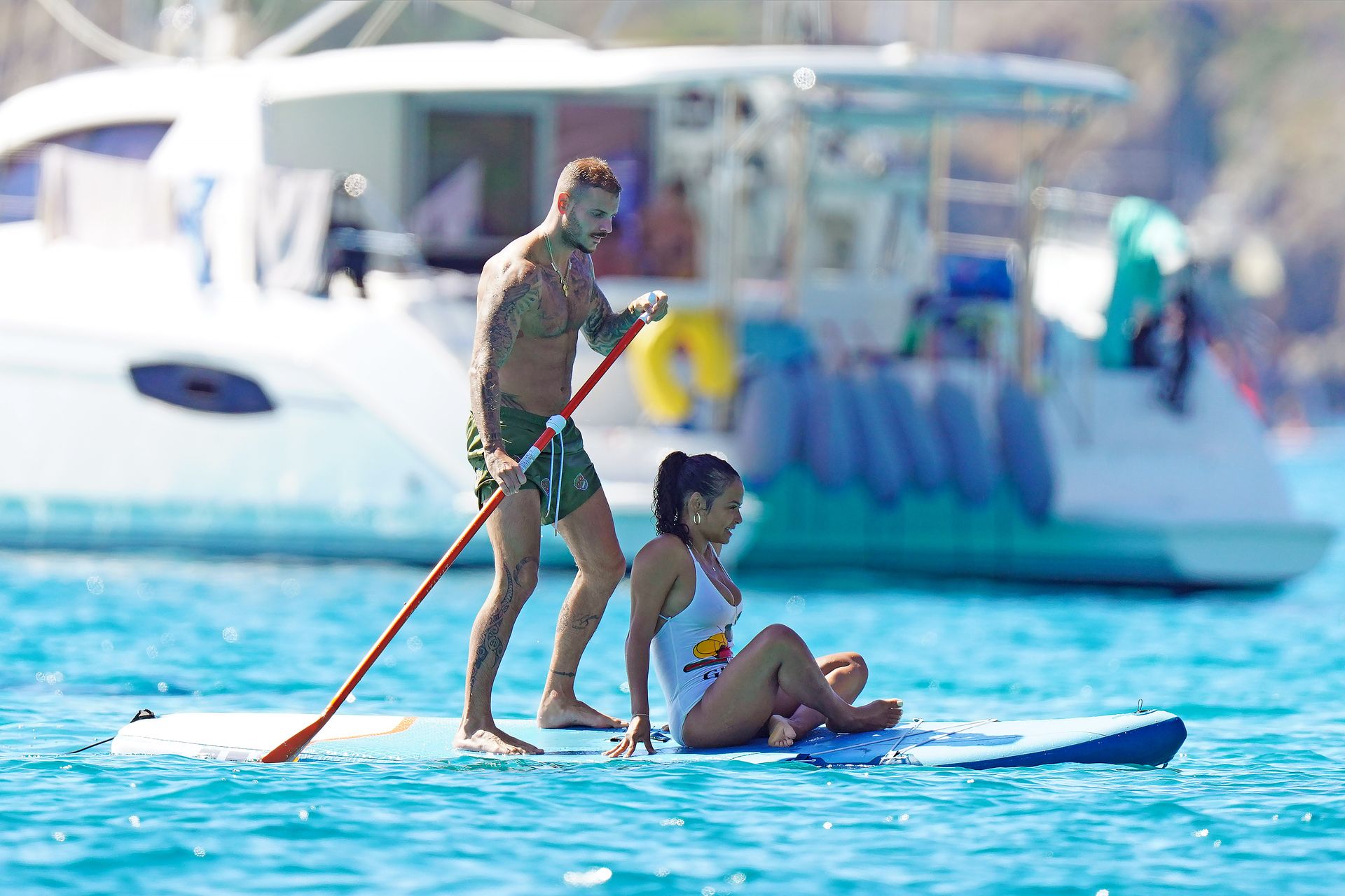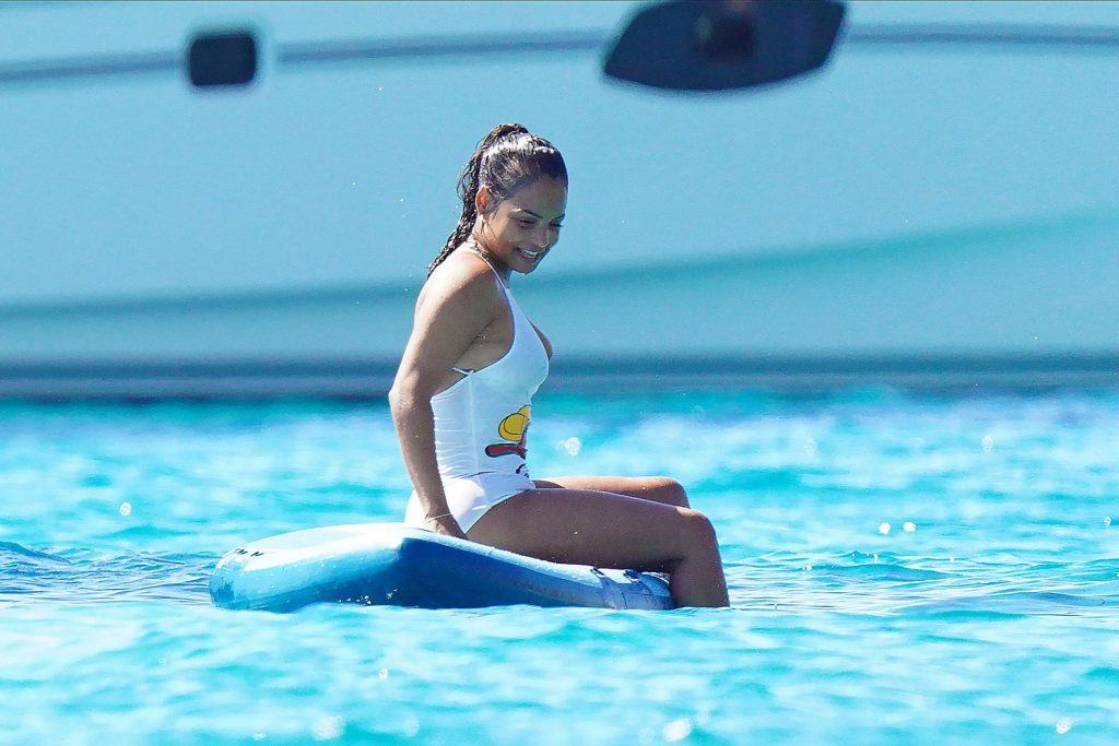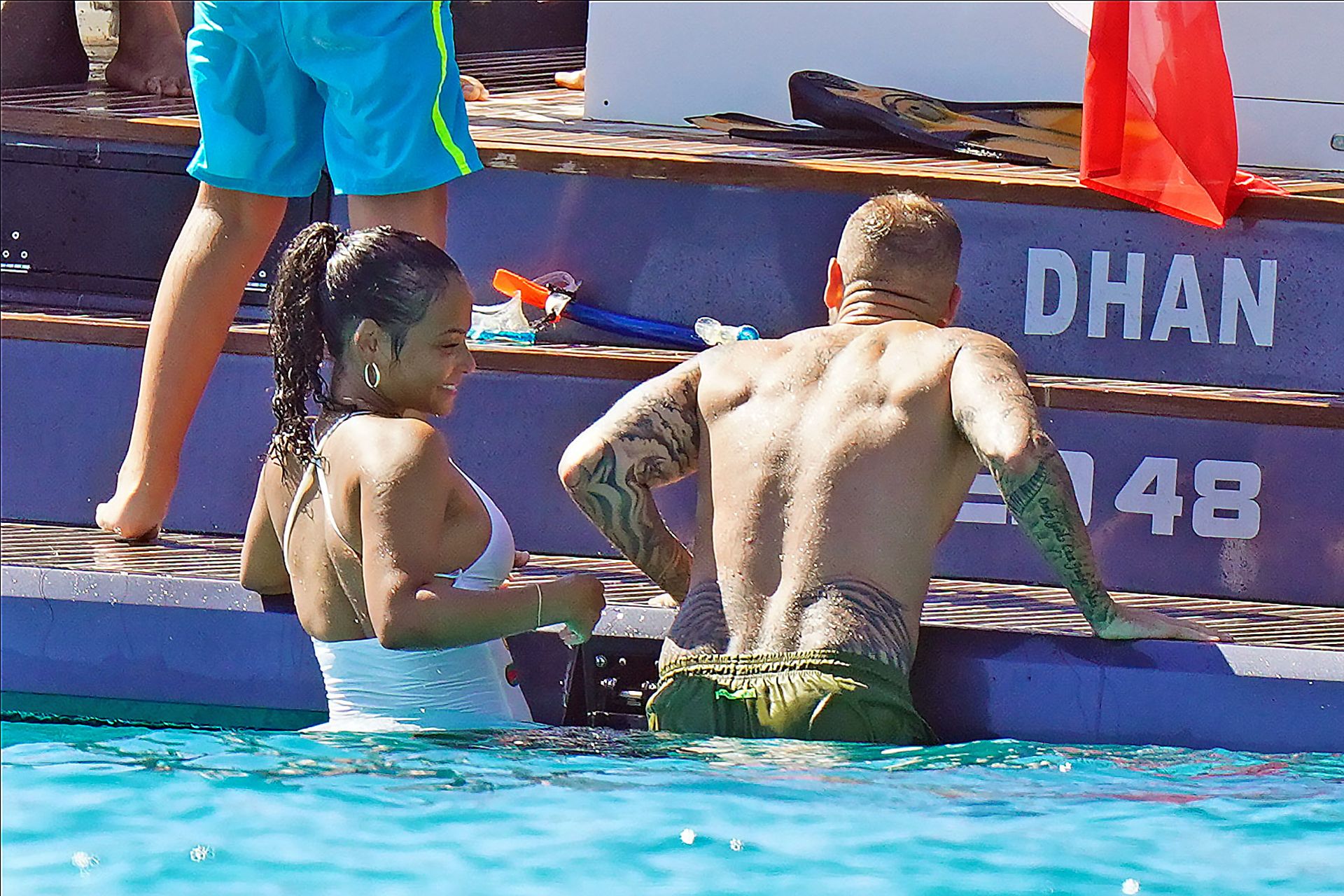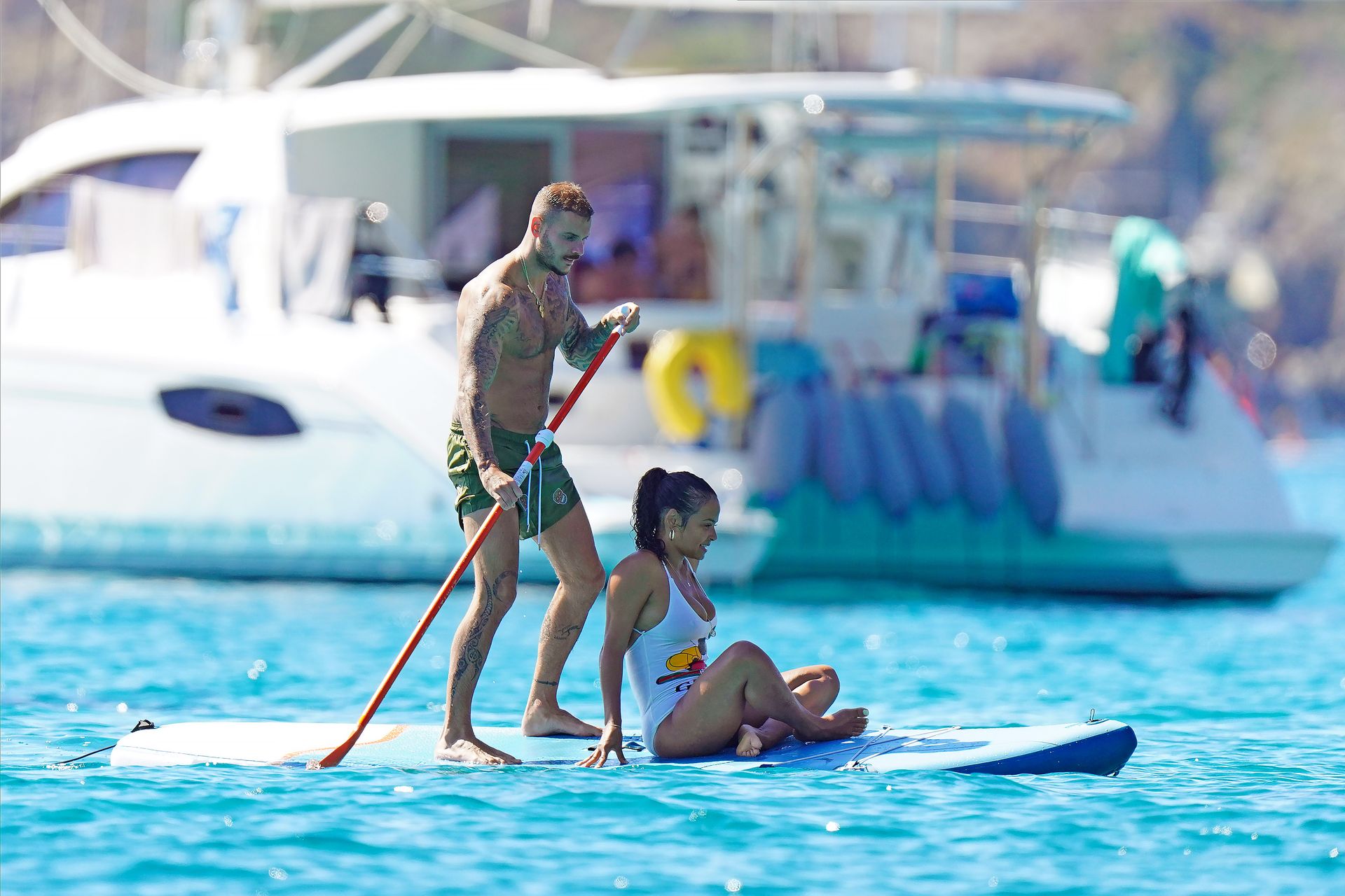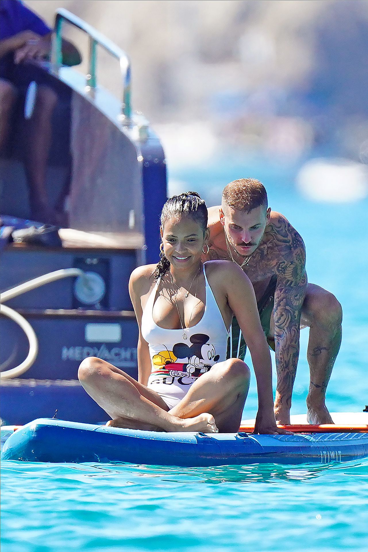 Matt Pokora (M. Pokora) et Christina Milian profitent d’une journée en bateau avec leur bébé pendant les vacances à St Tropez, 20/07/2020