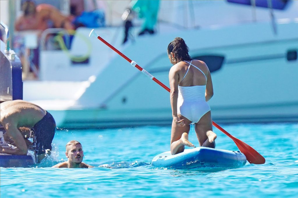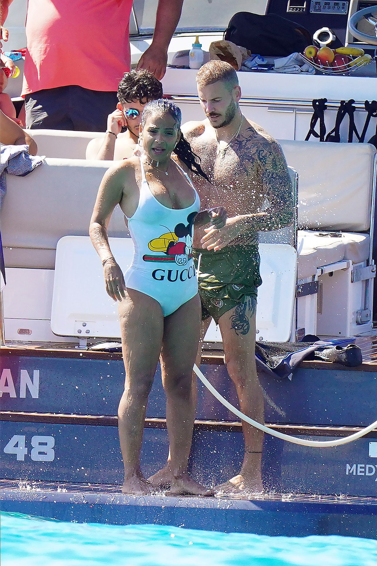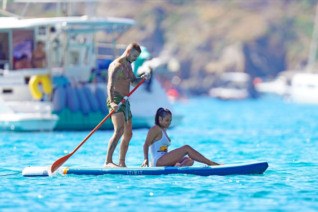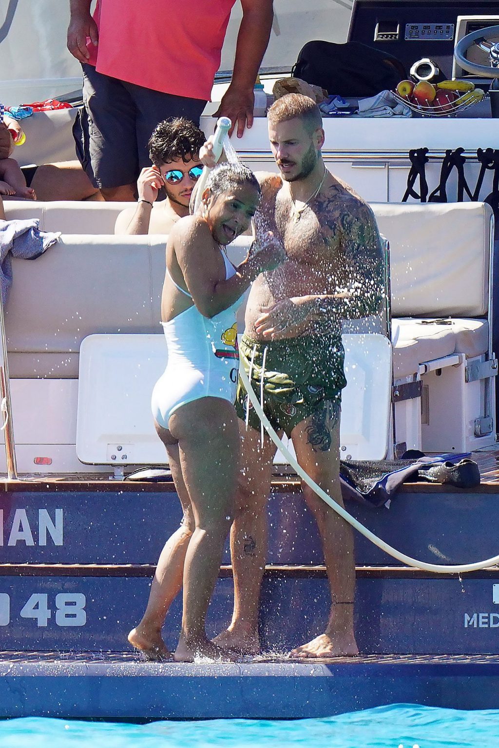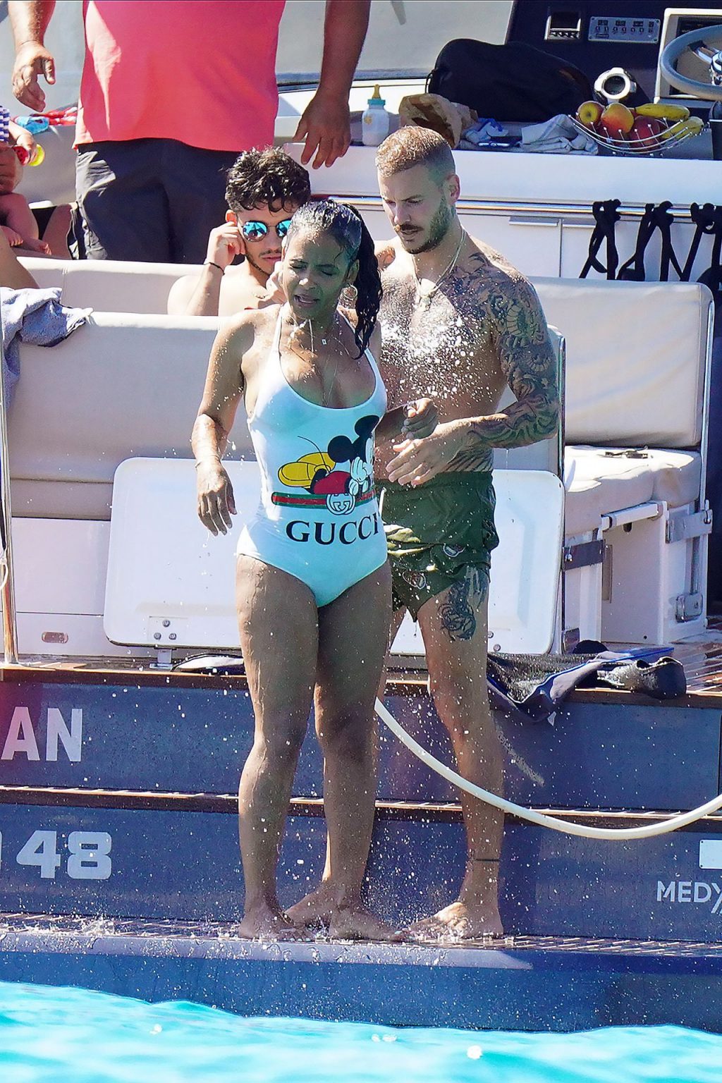 Matt Pokora (M. Pokora) et Christina Milian profitent d’une journée en bateau avec leur bébé pendant les vacances à St Tropez, 20/07/2020