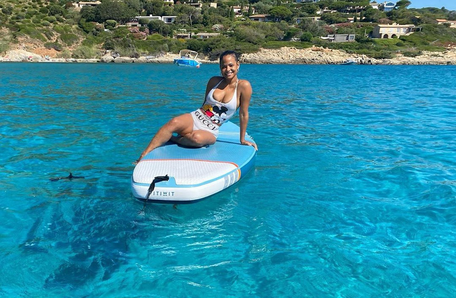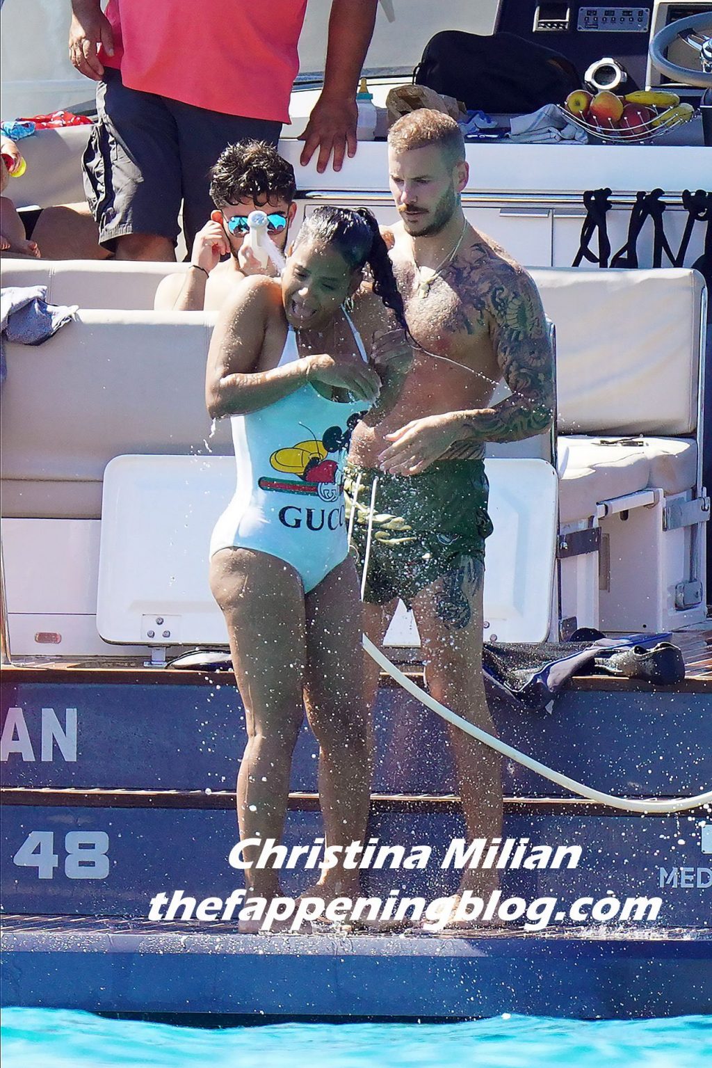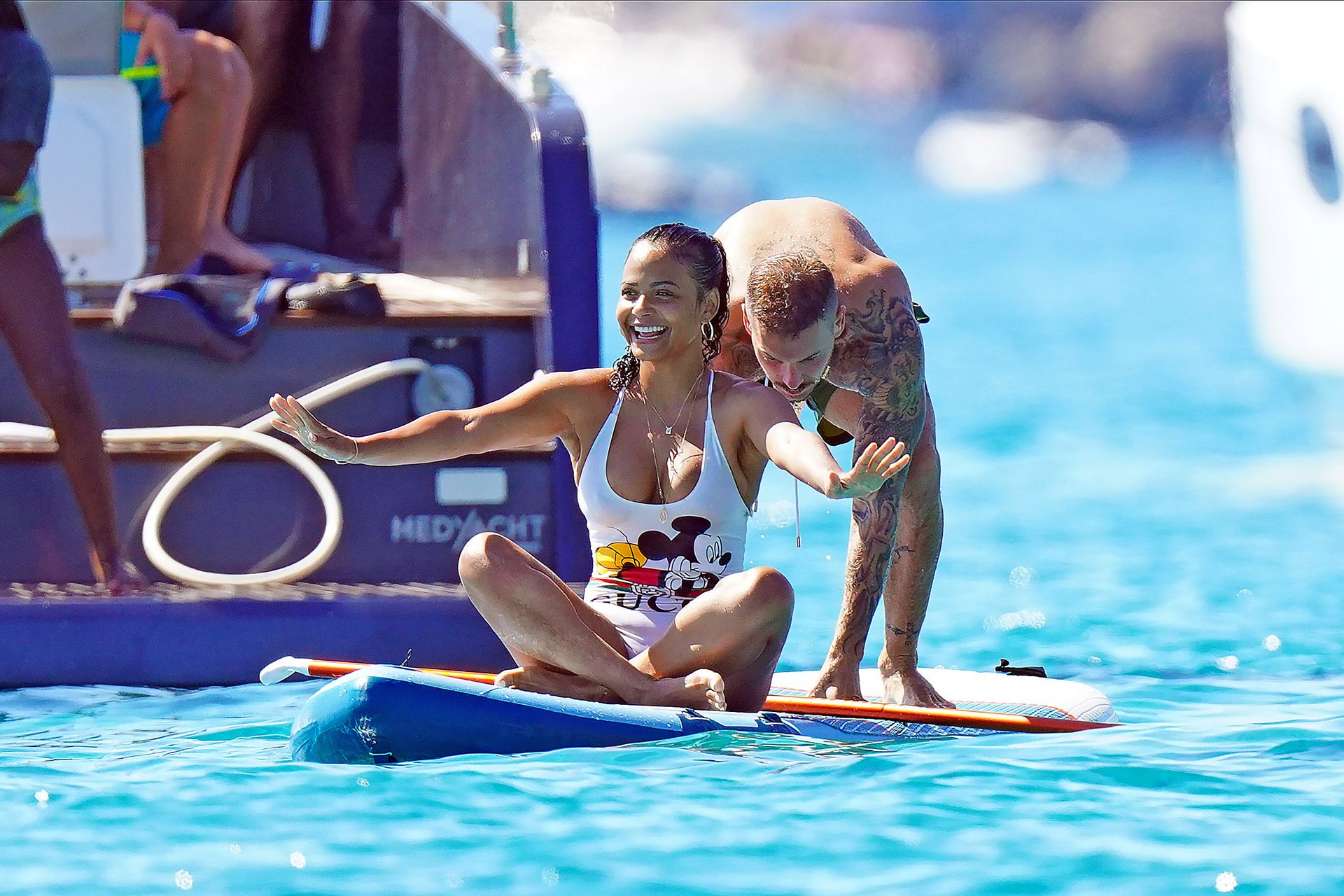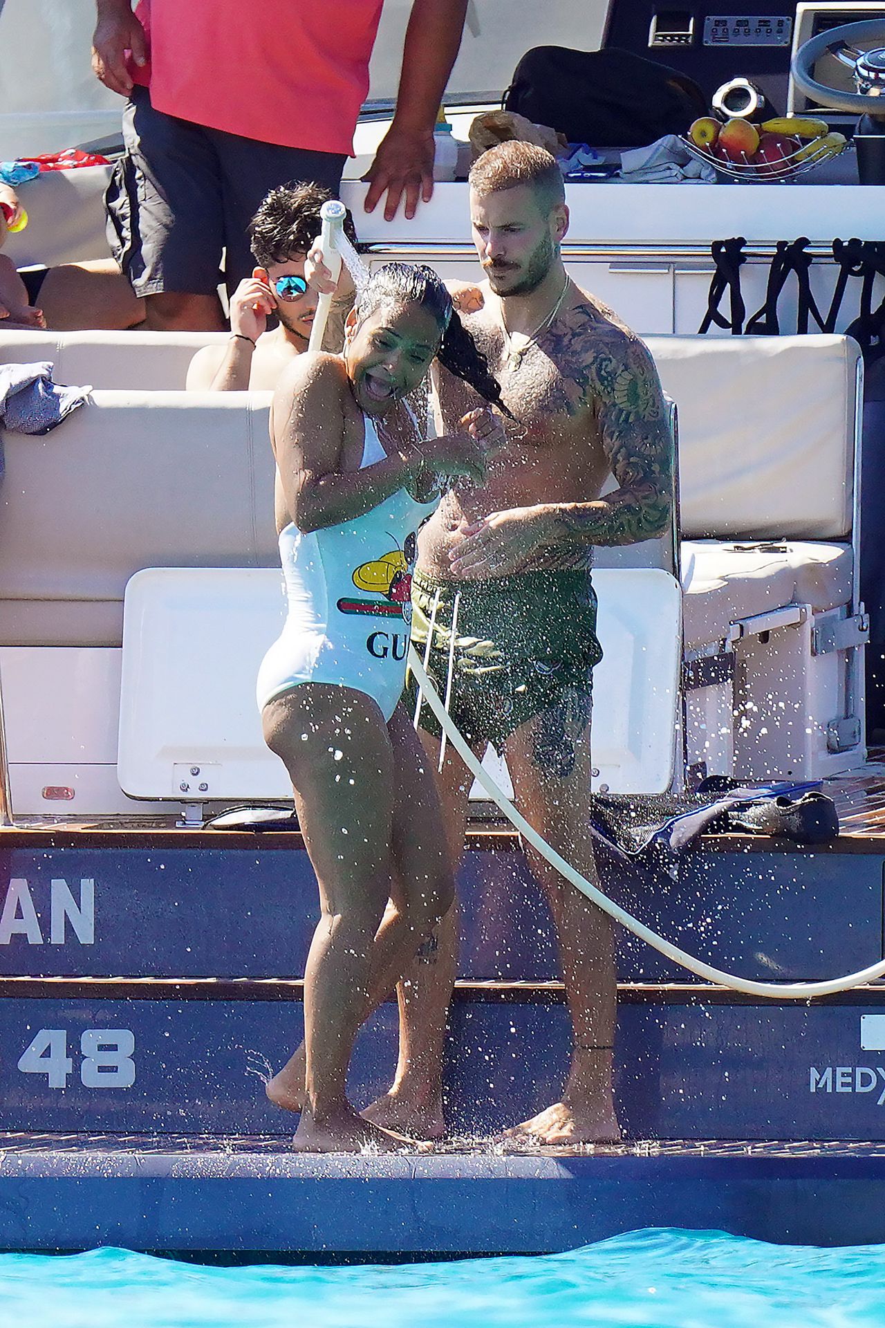 Matt Pokora (M. Pokora) et Christina Milian profitent d’une journée en bateau avec leur bébé pendant les vacances à St Tropez, 20/07/2020
