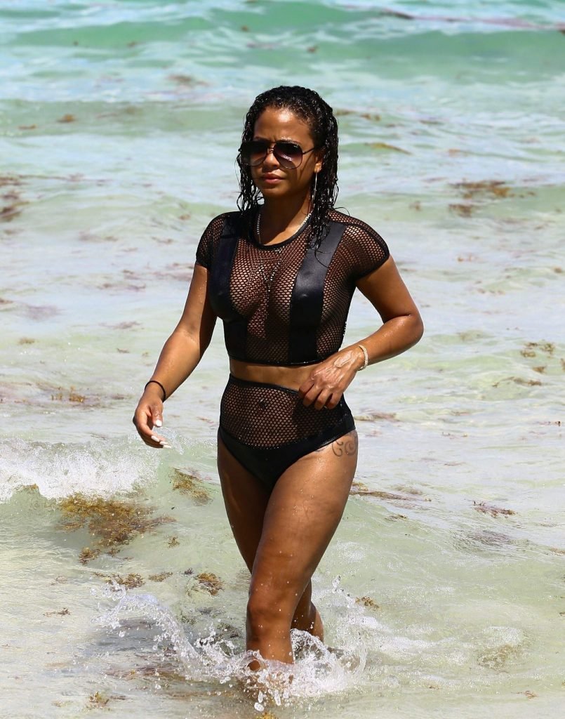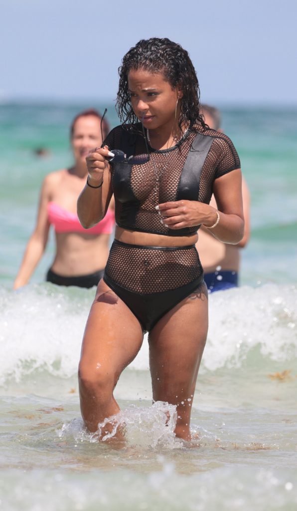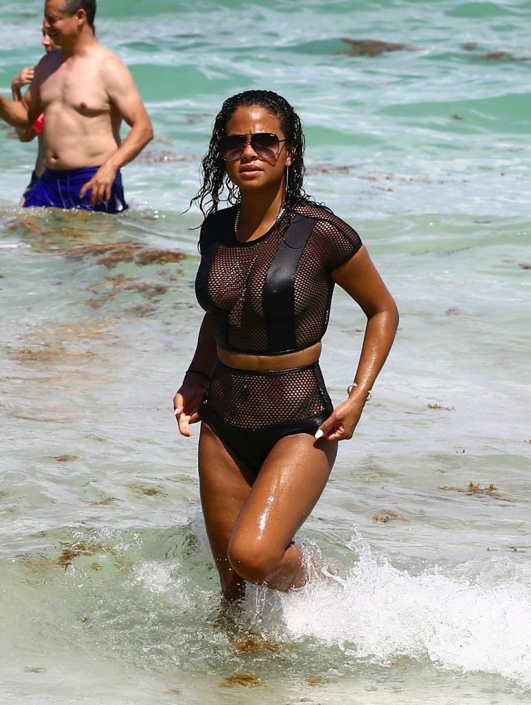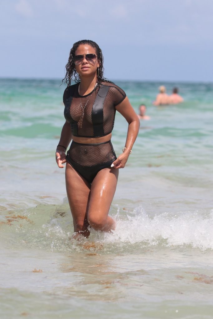 Christina Milian montre son corps super sexy tout en profitant de la plage avec des amis à Miami, 19/08/2017. Christina Milian est une chanteuse, auteure-compositrice et actrice américaine (Grandfathered). Âge – 35 ans.