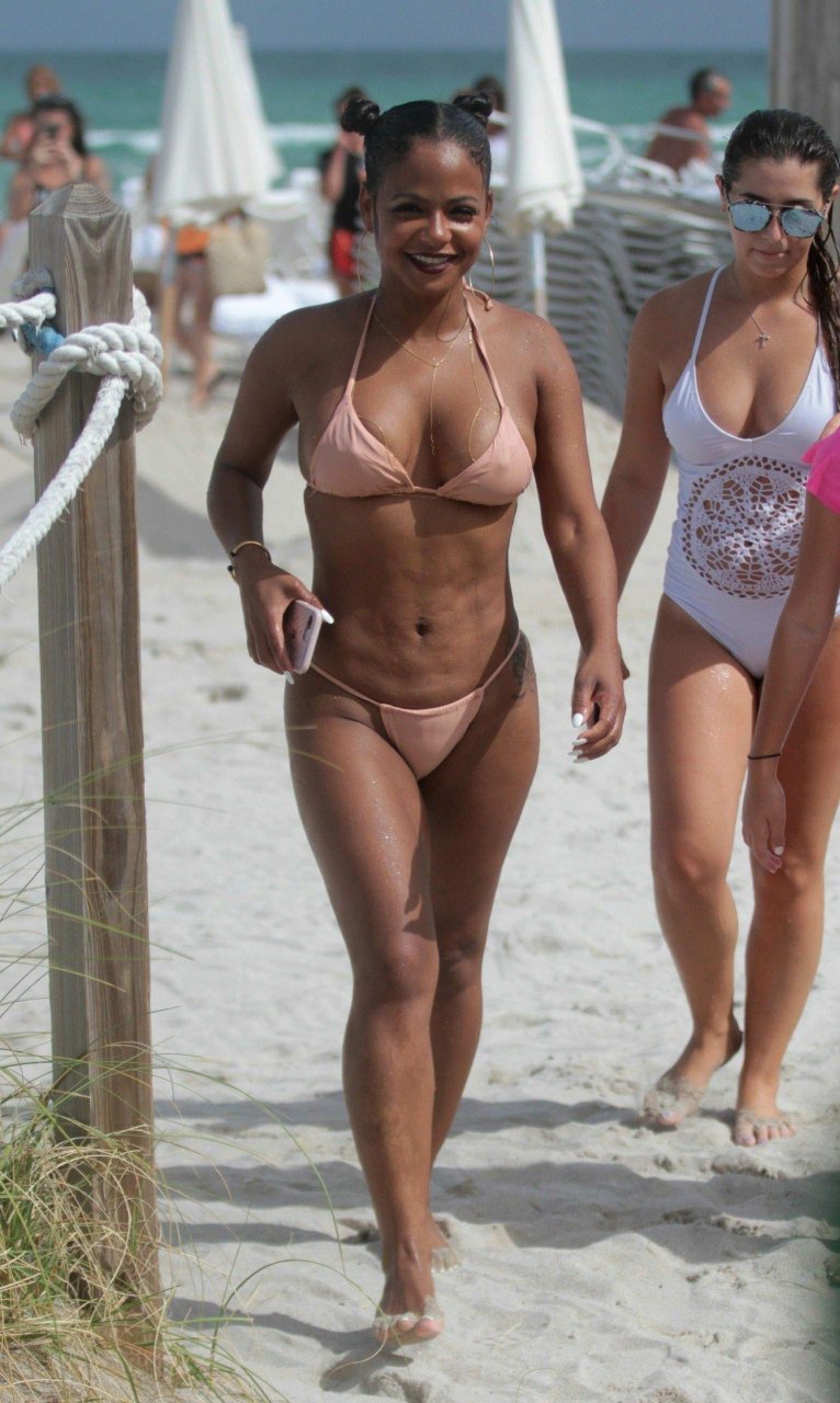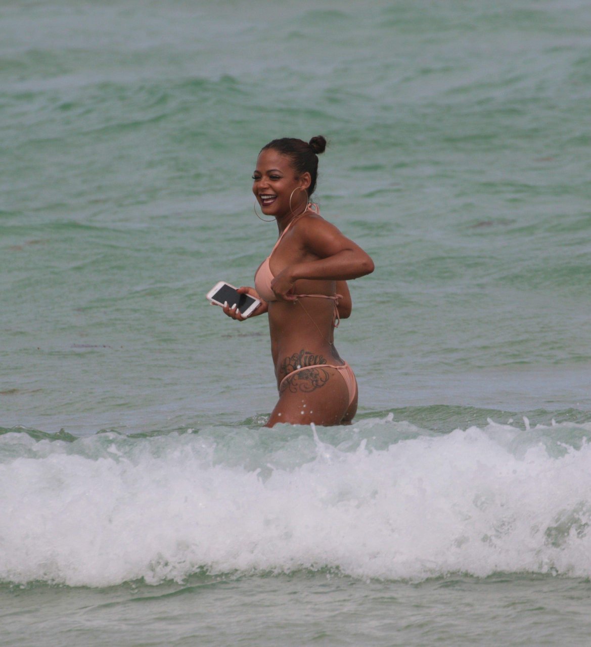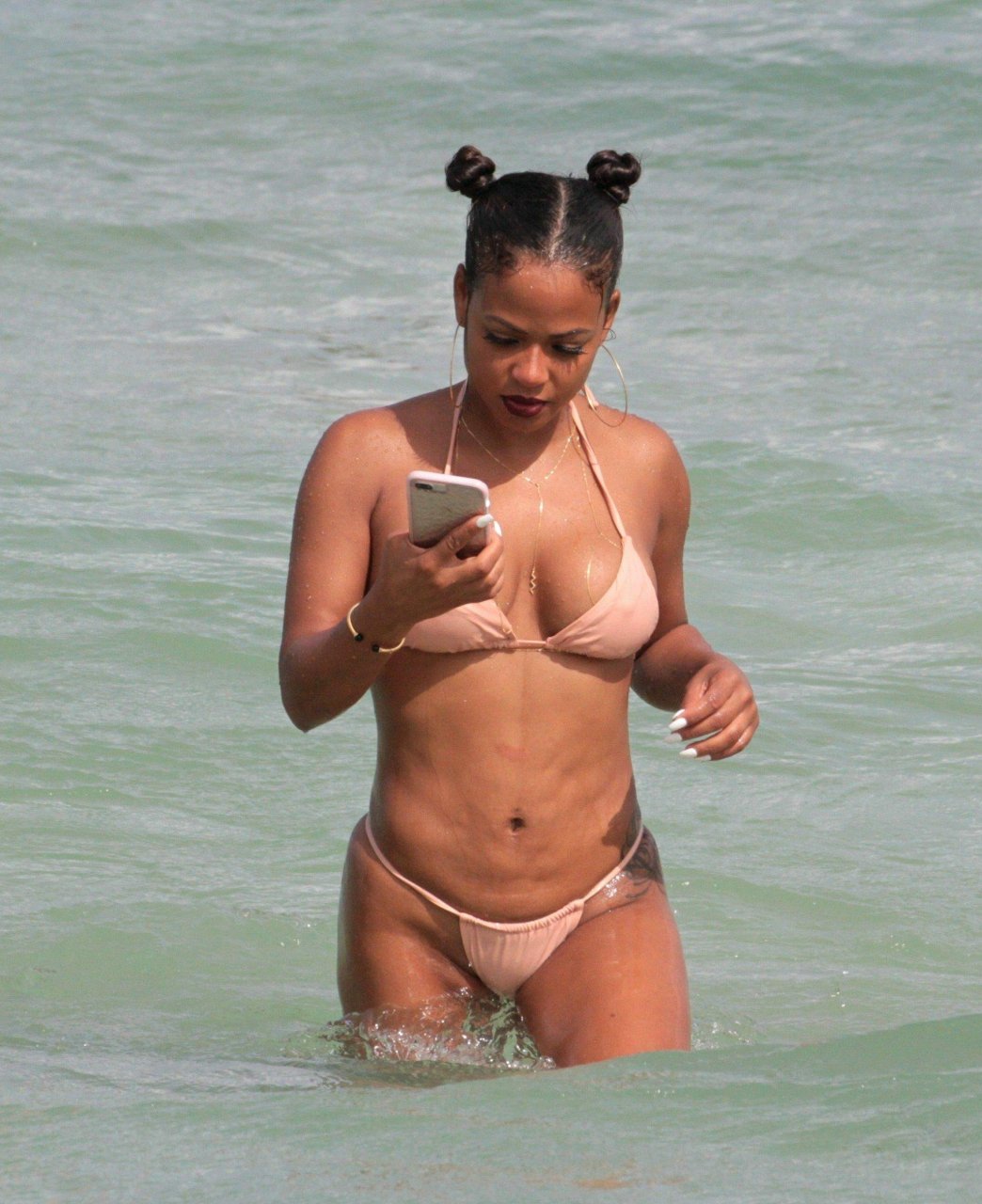 Christina Milian montre son corps en bikini à la plage de Miami, 20/08/2017. Christina Milian est une star américaine de R&B et actrice.