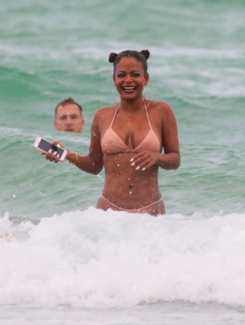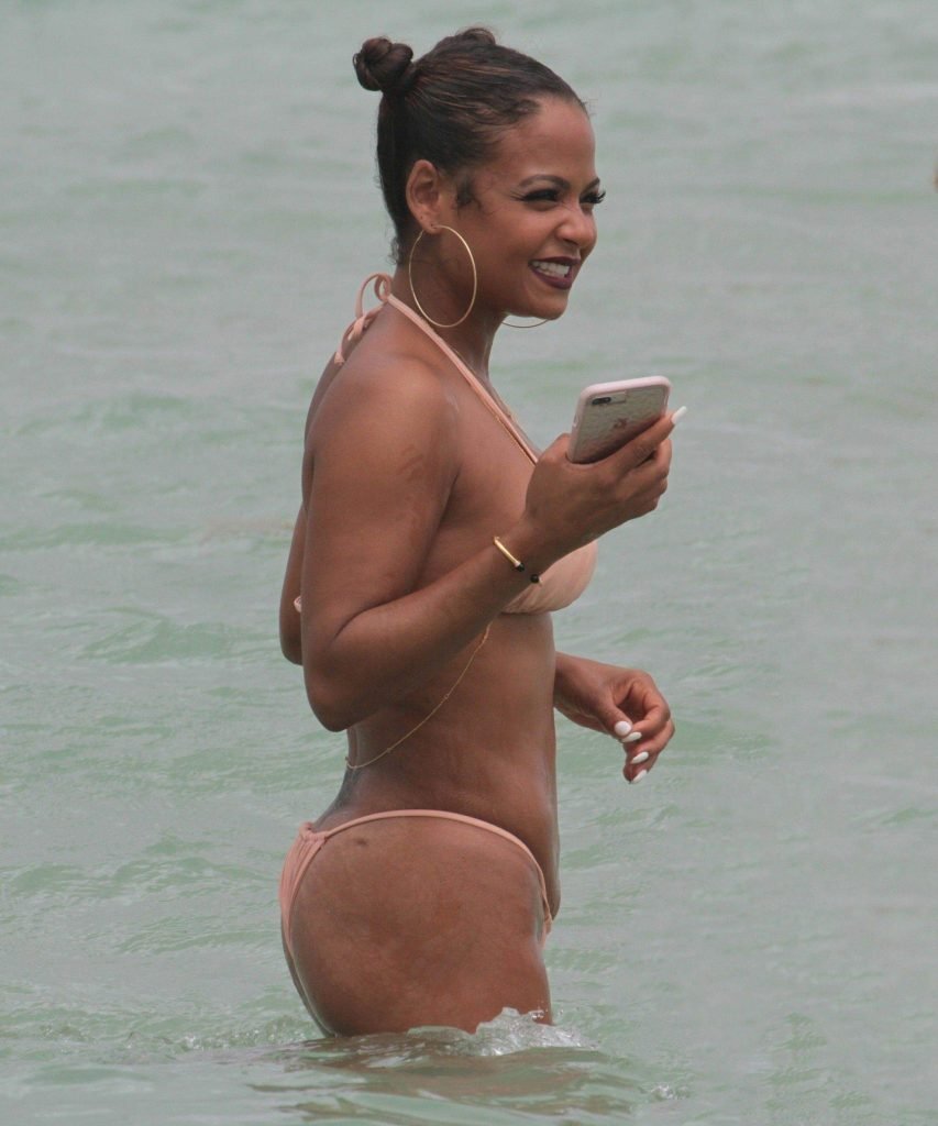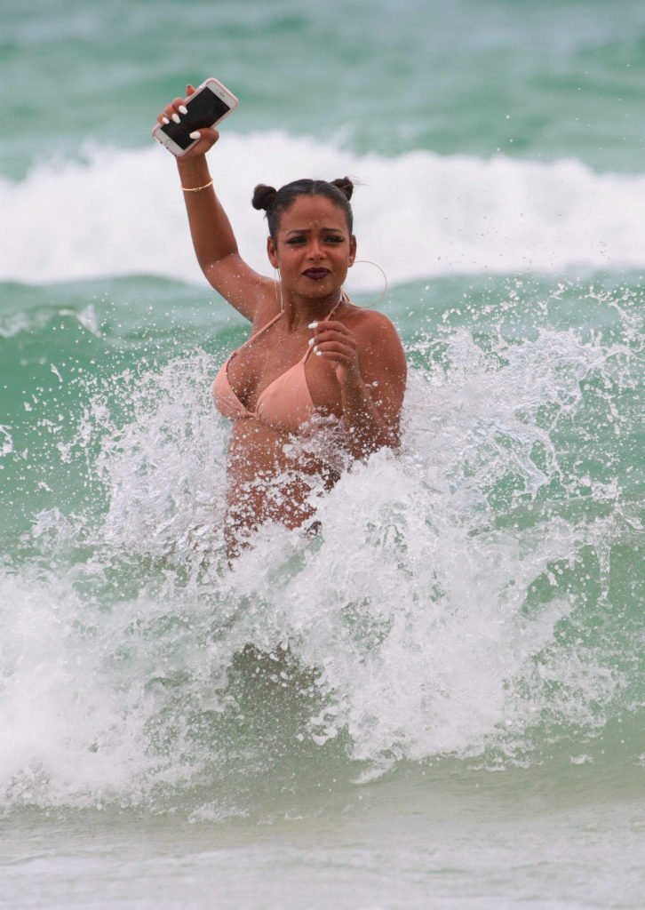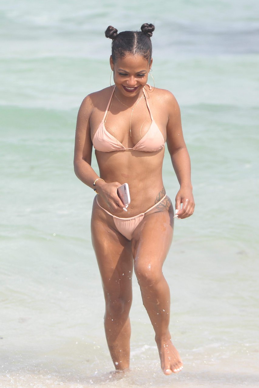 Christina Milian montre son corps en bikini à la plage de Miami, 20/08/2017. Christina Milian est une star américaine de R&B et actrice.