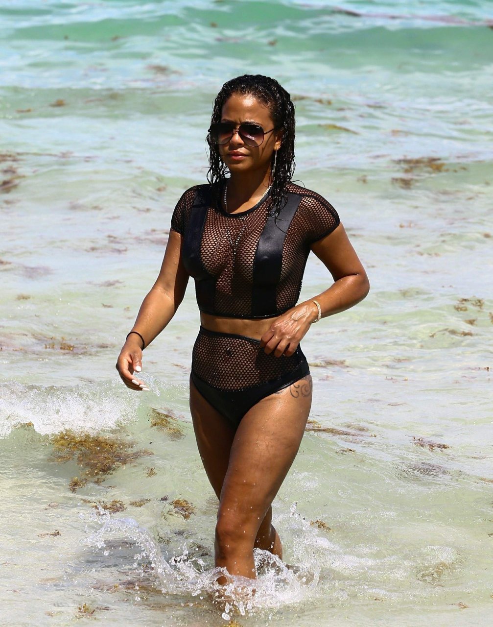 Christina Milian montre son corps super sexy tout en profitant de la plage avec des amis à Miami, 19/08/2017. Christina Milian est une chanteuse, auteure-compositrice et actrice américaine (Grandfathered). Âge – 35 ans.