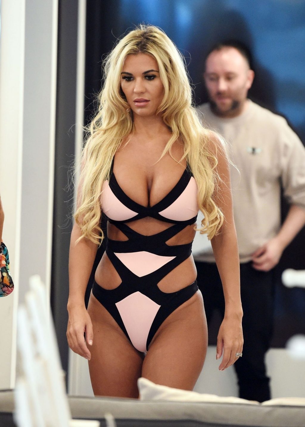 Sous tous les regards braqués sur la star sexy, Christine a exhibé toutes ses courbes voluptueuses dans plusieurs bikinis très révélateurs, en tant qu’épouse du présentateur TV Paddy McGuinness, dégageant un sex-appeal irrésistible dans une tenue audacieuse.