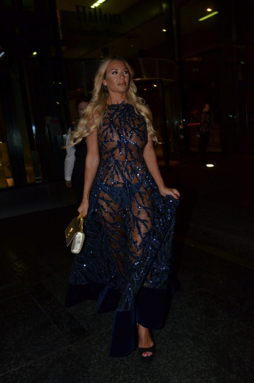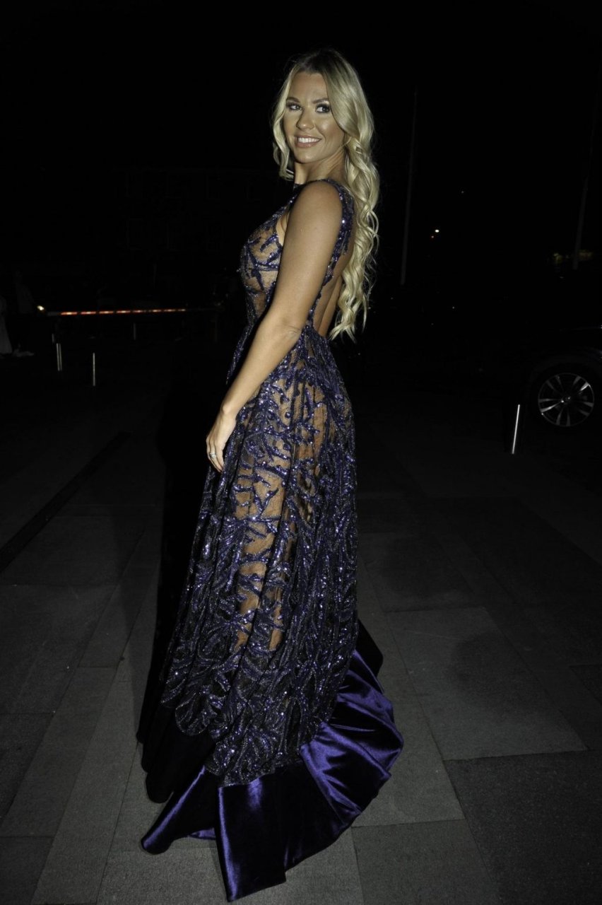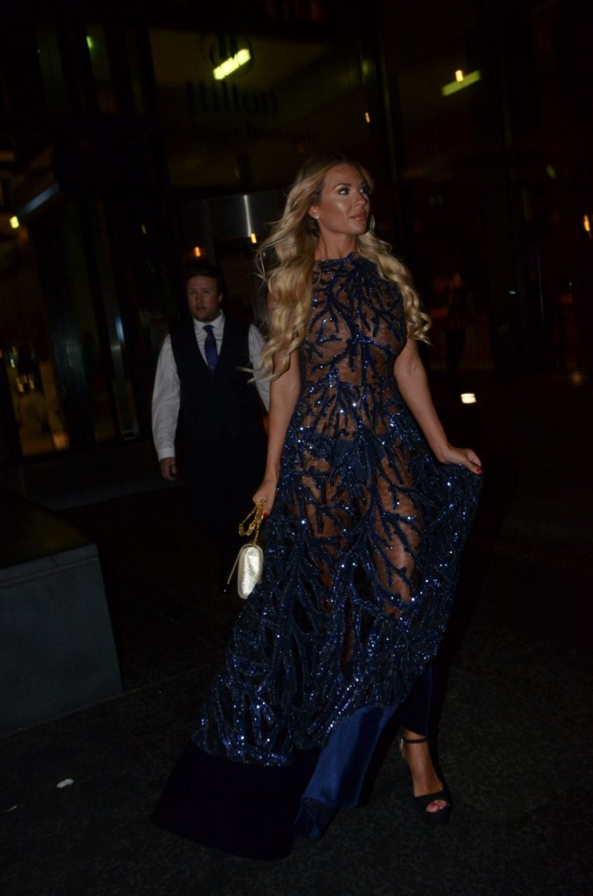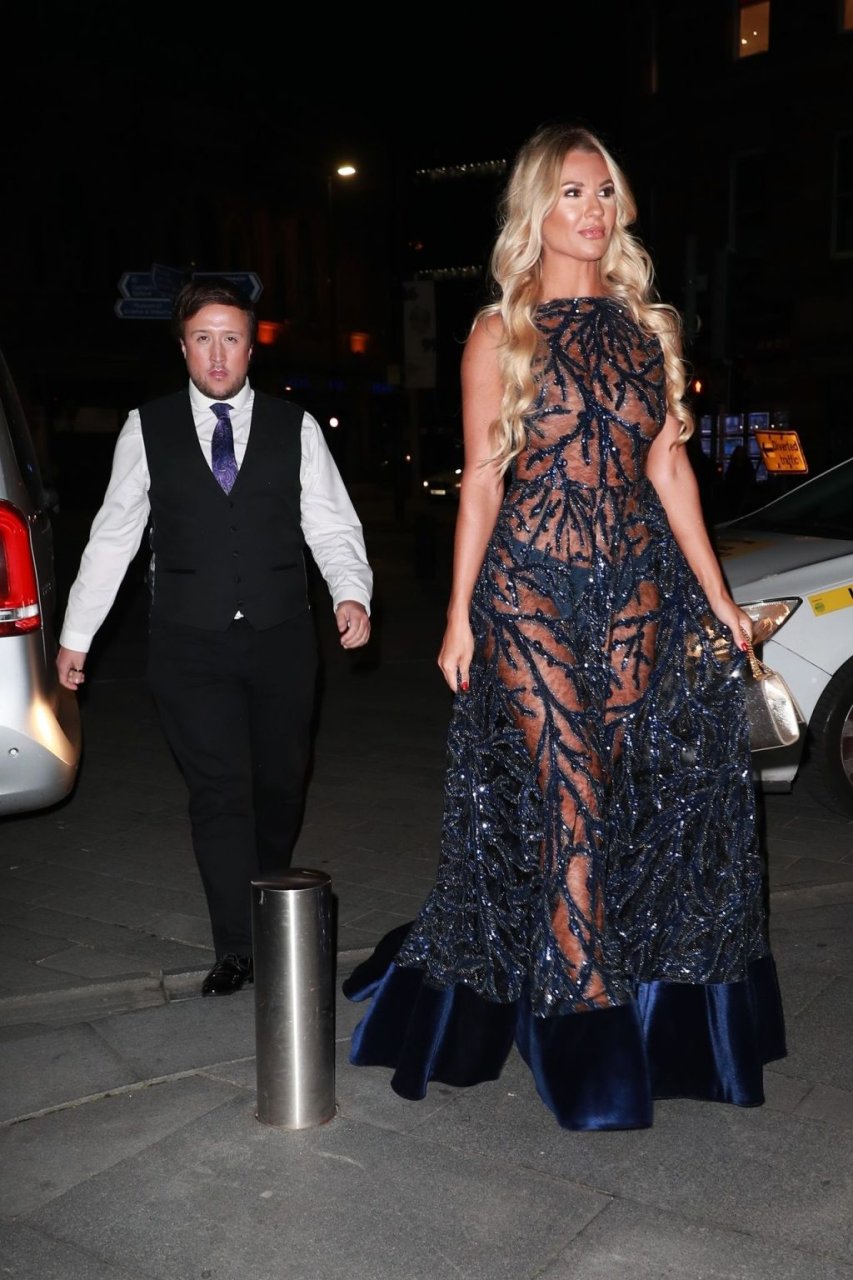 La star anglaise de la télé-réalité et mannequin Christine McGuinness (31 ans) a été vue dans une magnifique robe bleue transparente au Manchester Fashion Festival à l’hôtel Hilton de Manchester, le 12/10/2019.