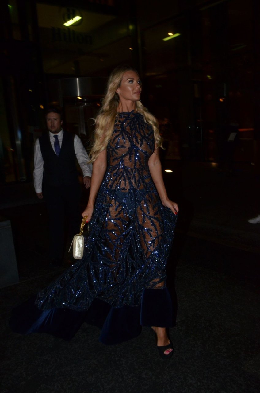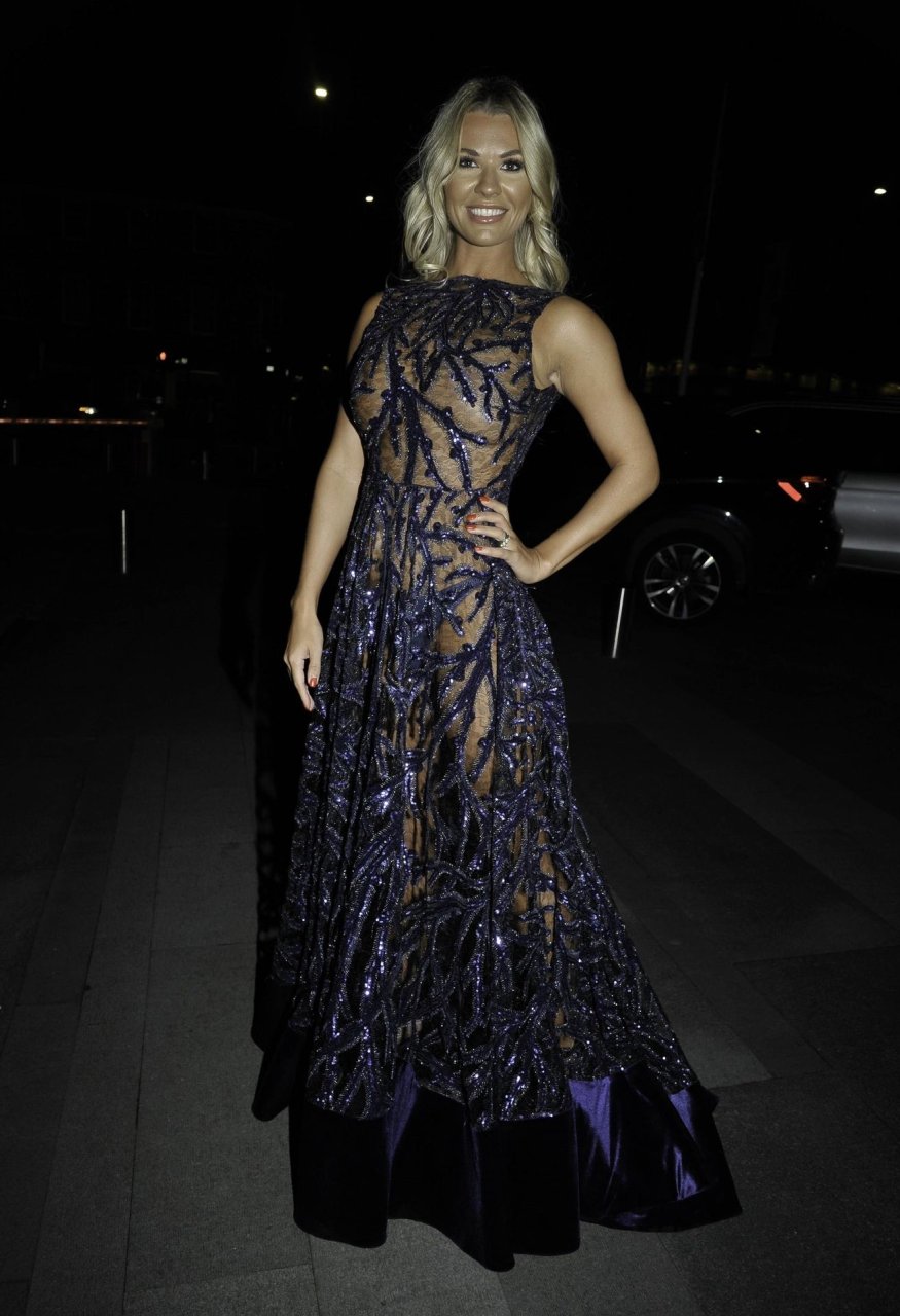 La star anglaise de la télé-réalité et mannequin Christine McGuinness (31 ans) a été vue dans une magnifique robe bleue transparente au Manchester Fashion Festival à l’hôtel Hilton de Manchester, le 12/10/2019.