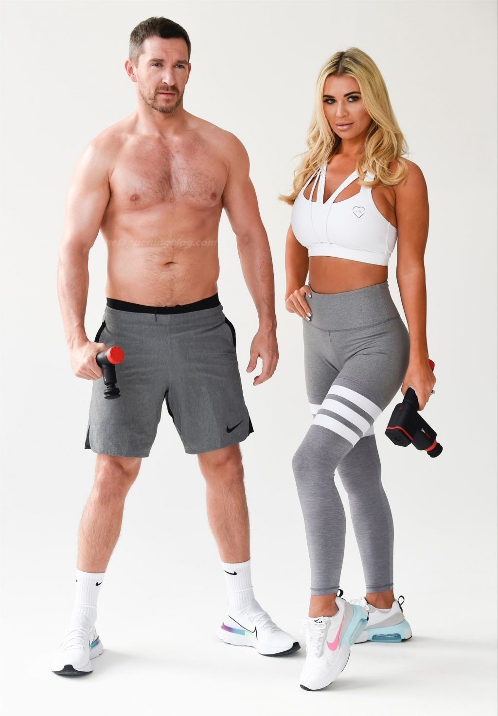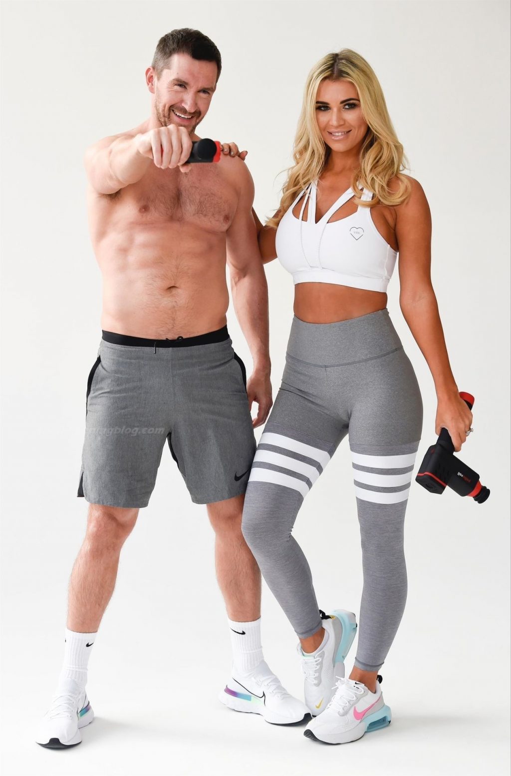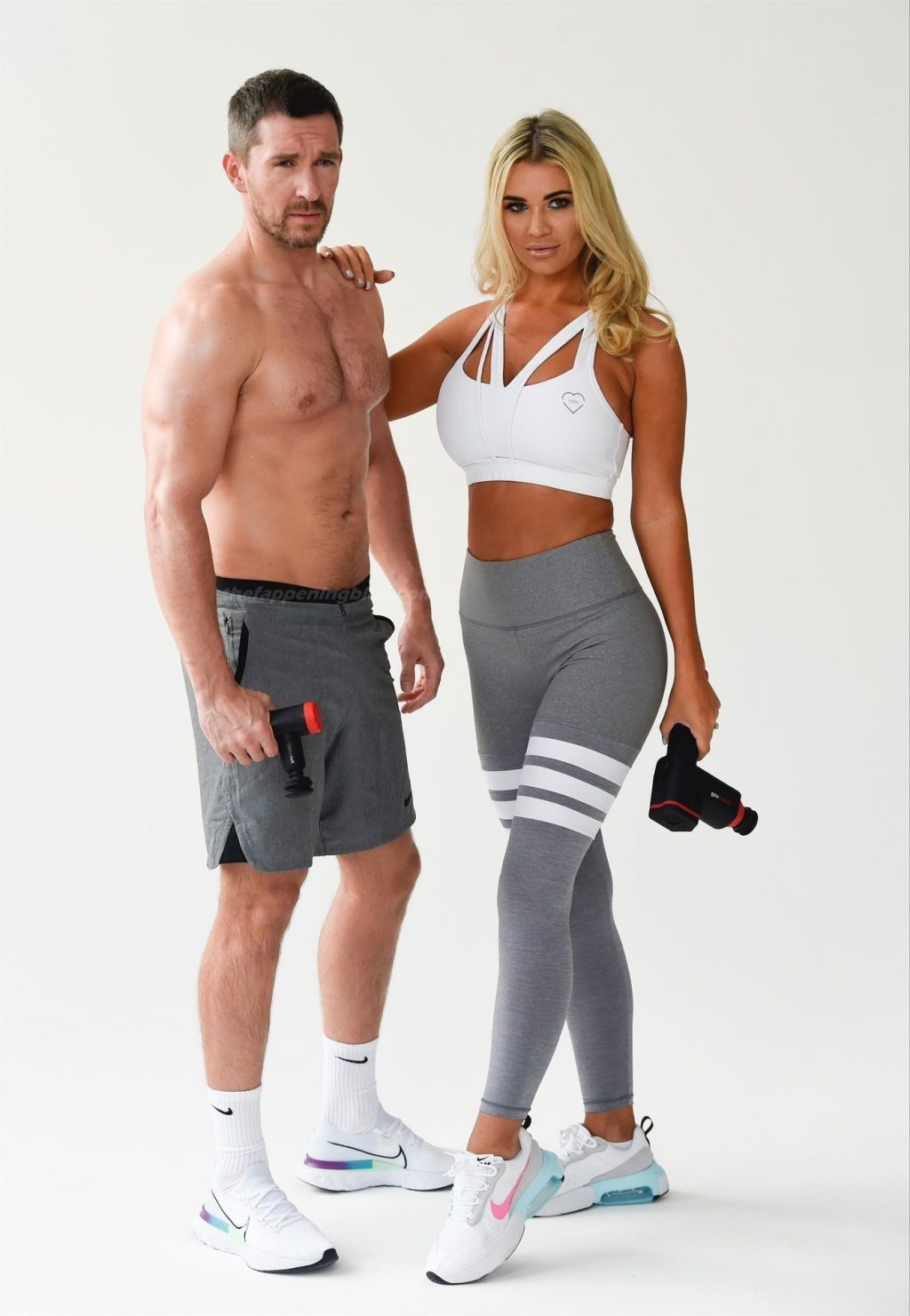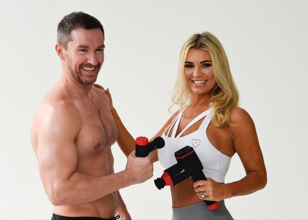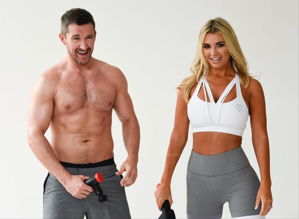 Le mannequin britannique et ancienne star de Real Housewives of Cheshire, Christine McGuinness, montre son corps incroyable lors d’une séance photo avec Anthony Quinlan pour sa gamme de vêtements de sport My Vibe et son pistolet de massage Pulse Roll à Manchester, le 23/12/2020.