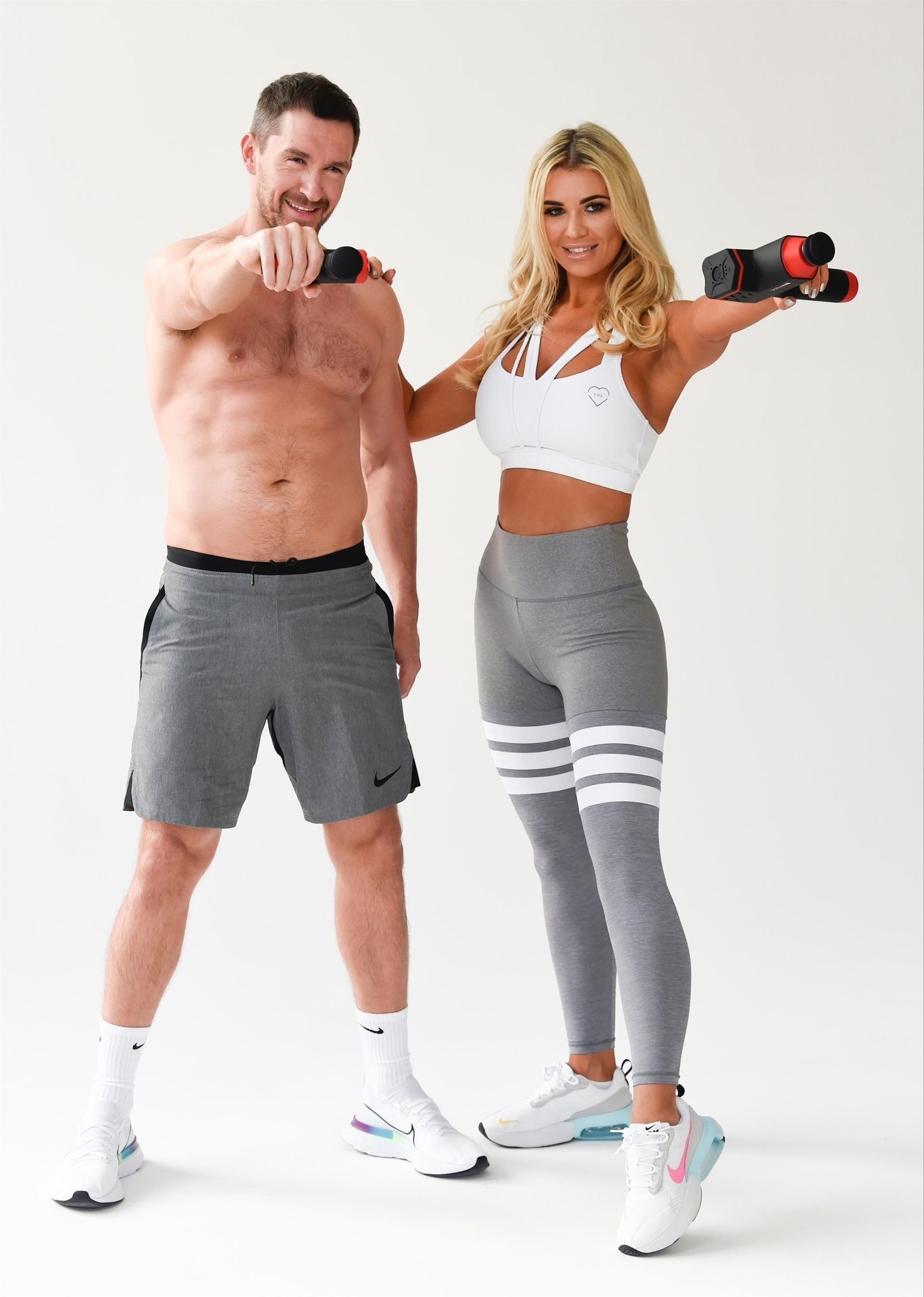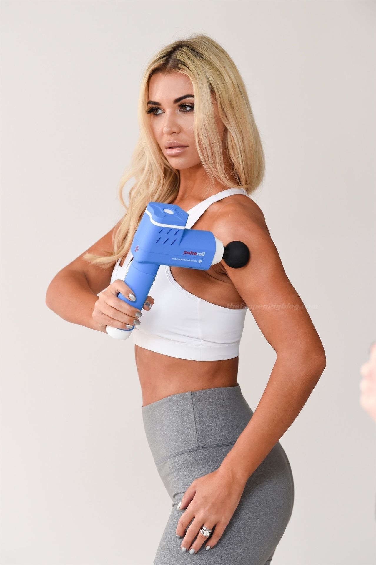Le mannequin britannique et ancienne star de Real Housewives of Cheshire, Christine McGuinness, montre son corps incroyable lors d’une séance photo avec Anthony Quinlan pour sa gamme de vêtements de sport My Vibe et son pistolet de massage Pulse Roll à Manchester, le 23/12/2020.