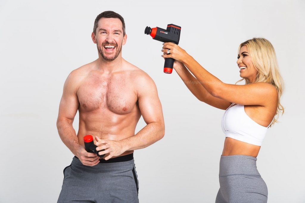 Christine McGuinness est photographiée montrant sa silhouette tonique lors d’une séance promotionnelle avec l’acteur Anthony Quinlan pour le nouveau Pulse Roll à Manchester, 17/12/2020.