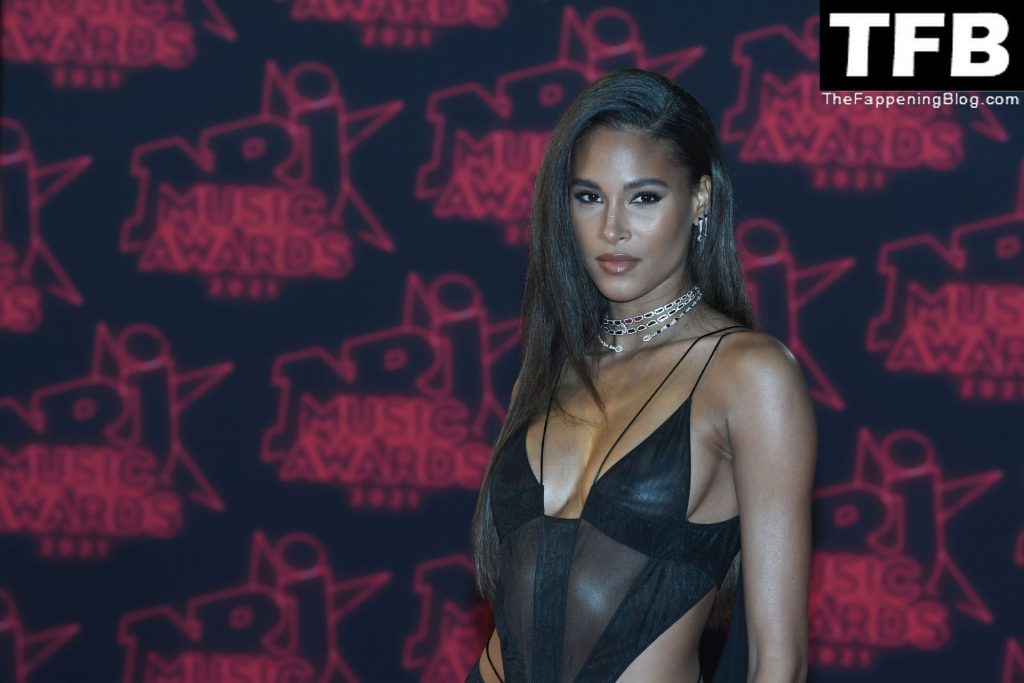 Le mannequin français Cindy Bruna pose sur le tapis rouge avant la cérémonie des 23èmes NRJ Music Awards au Palais des Festivals à Cannes, dans le sud-est de la France, le 20/11/2021.