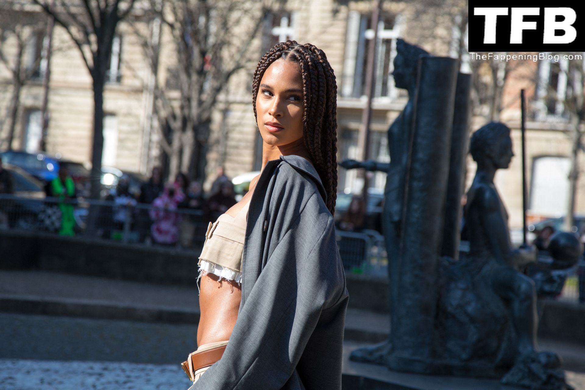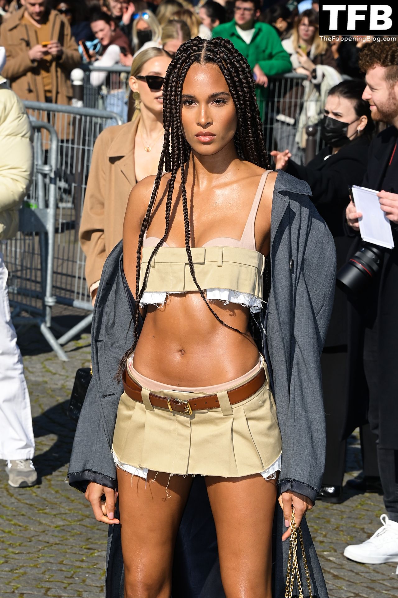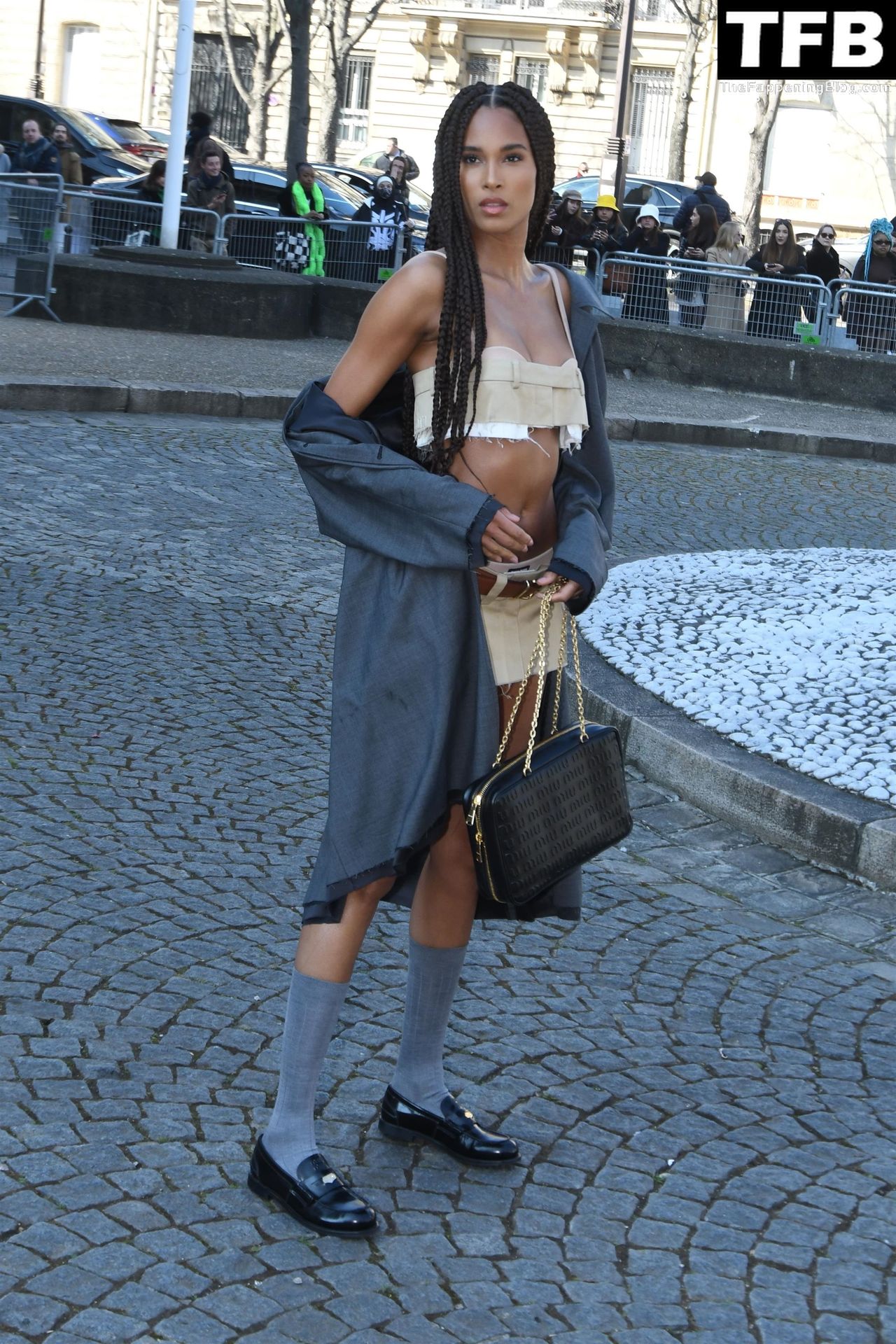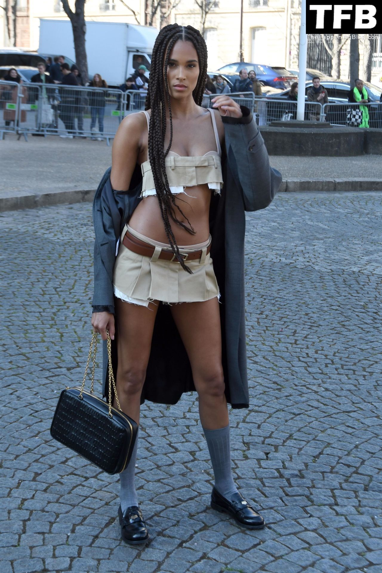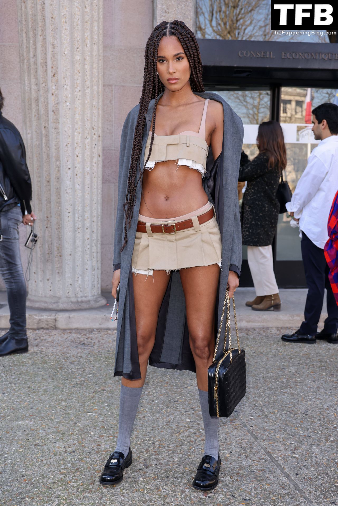 Le mannequin Cindy Bruna assiste au défilé Miu Miu Prêt-à-porter Automne-Hiver 2022-2023 pendant la Fashion Week de Paris, 08/03/2022.