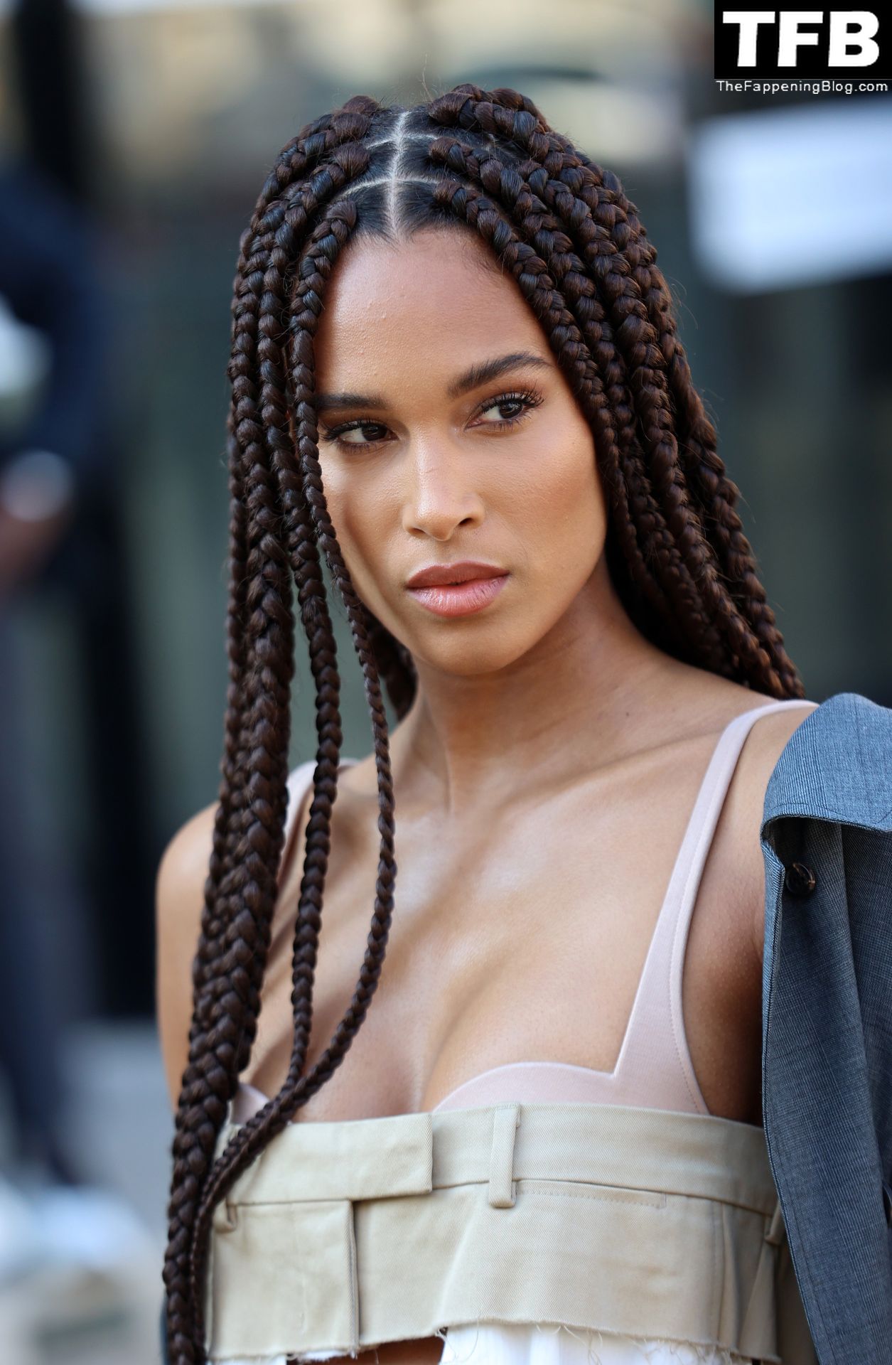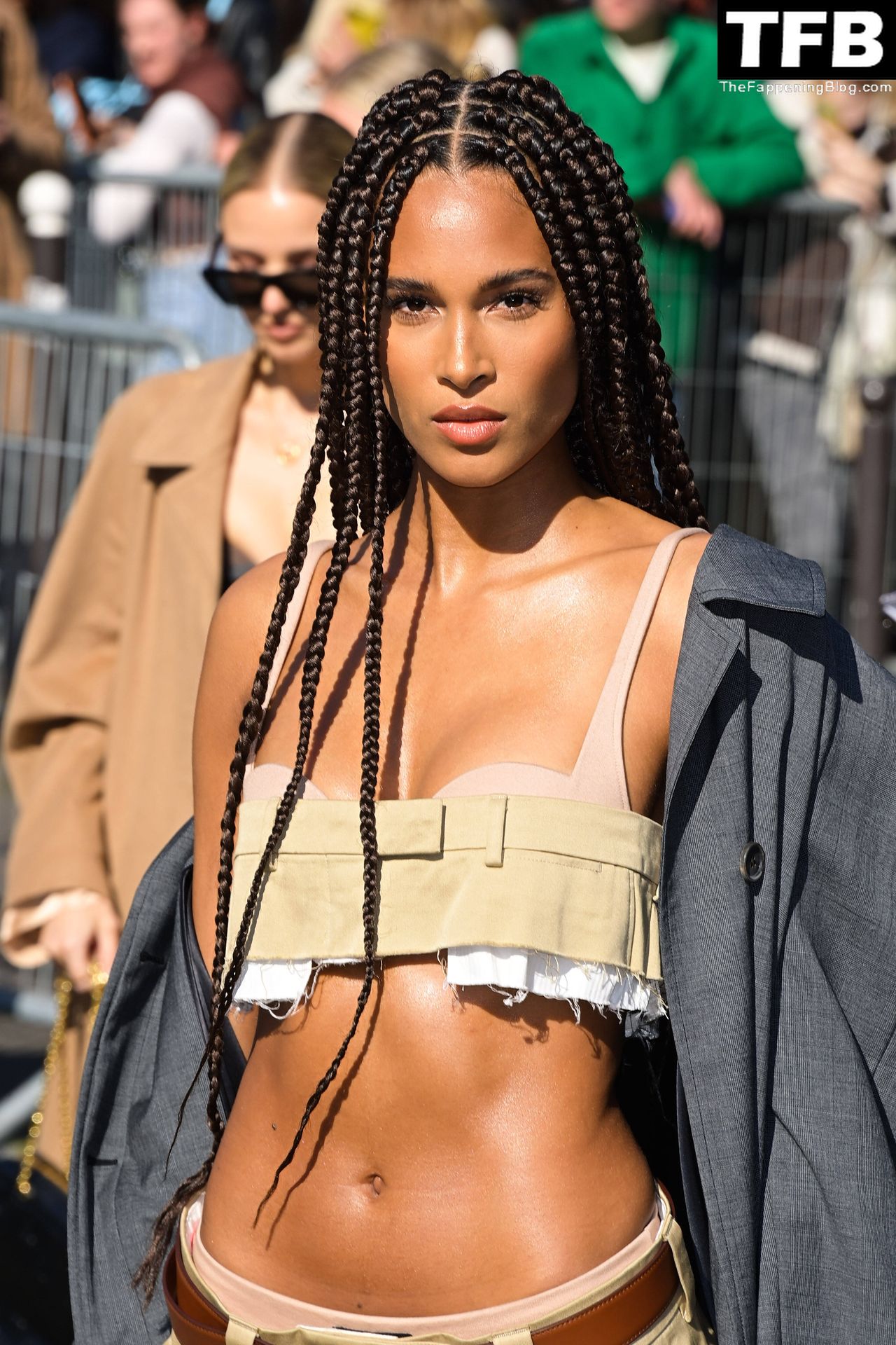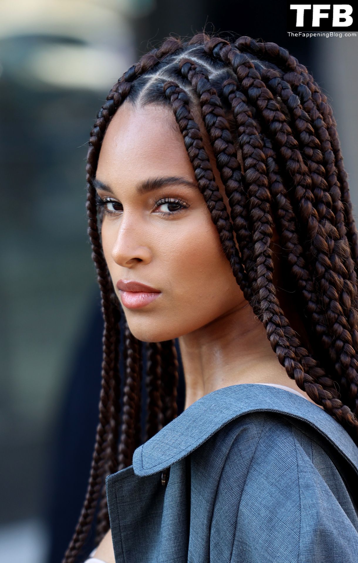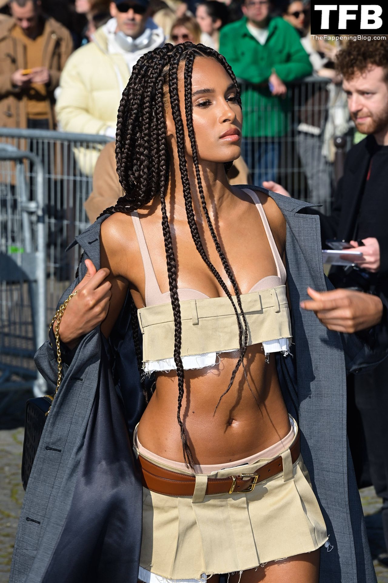 Le mannequin Cindy Bruna assiste au défilé Miu Miu Prêt-à-porter Automne-Hiver 2022-2023 pendant la Fashion Week de Paris, 08/03/2022.