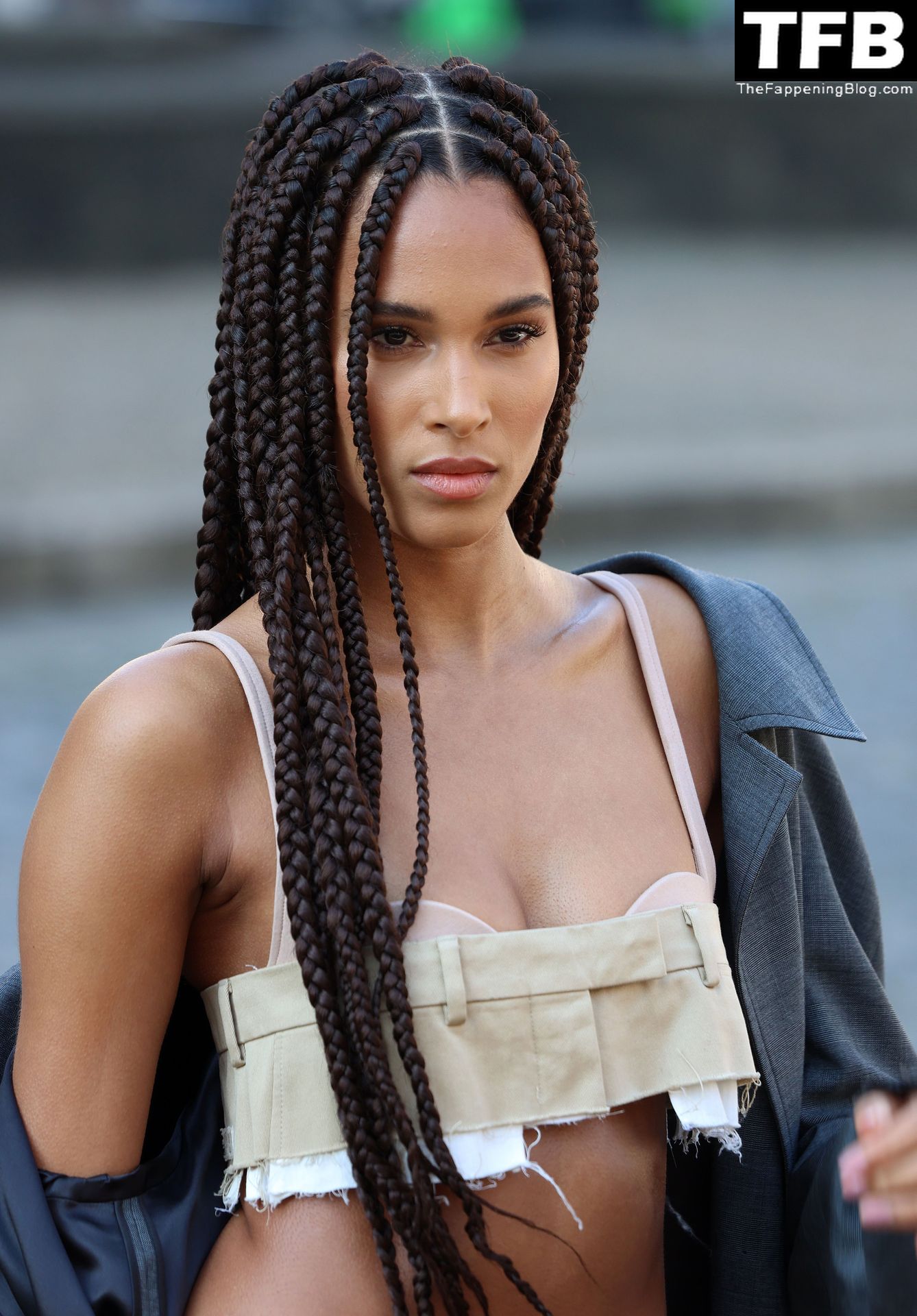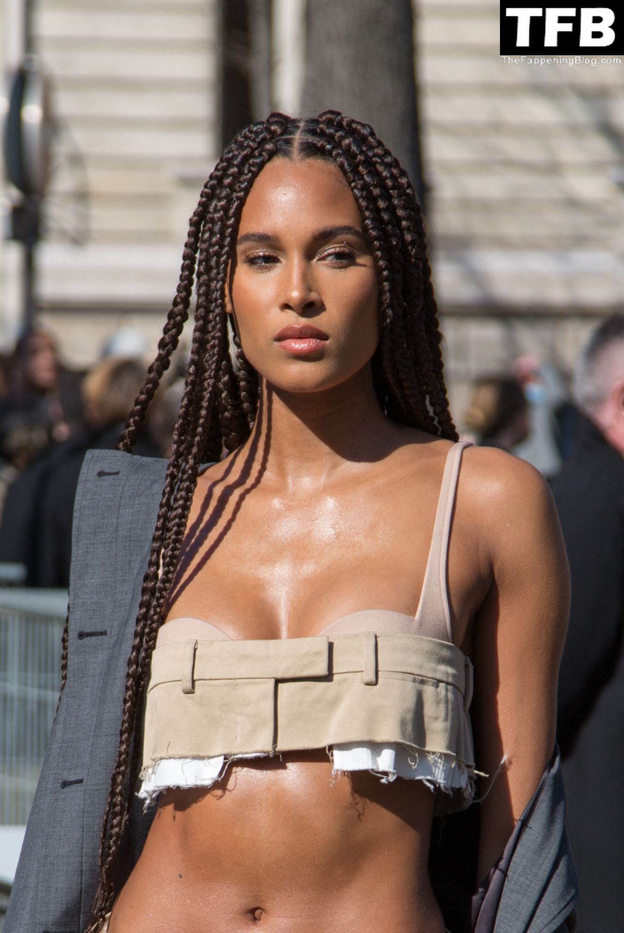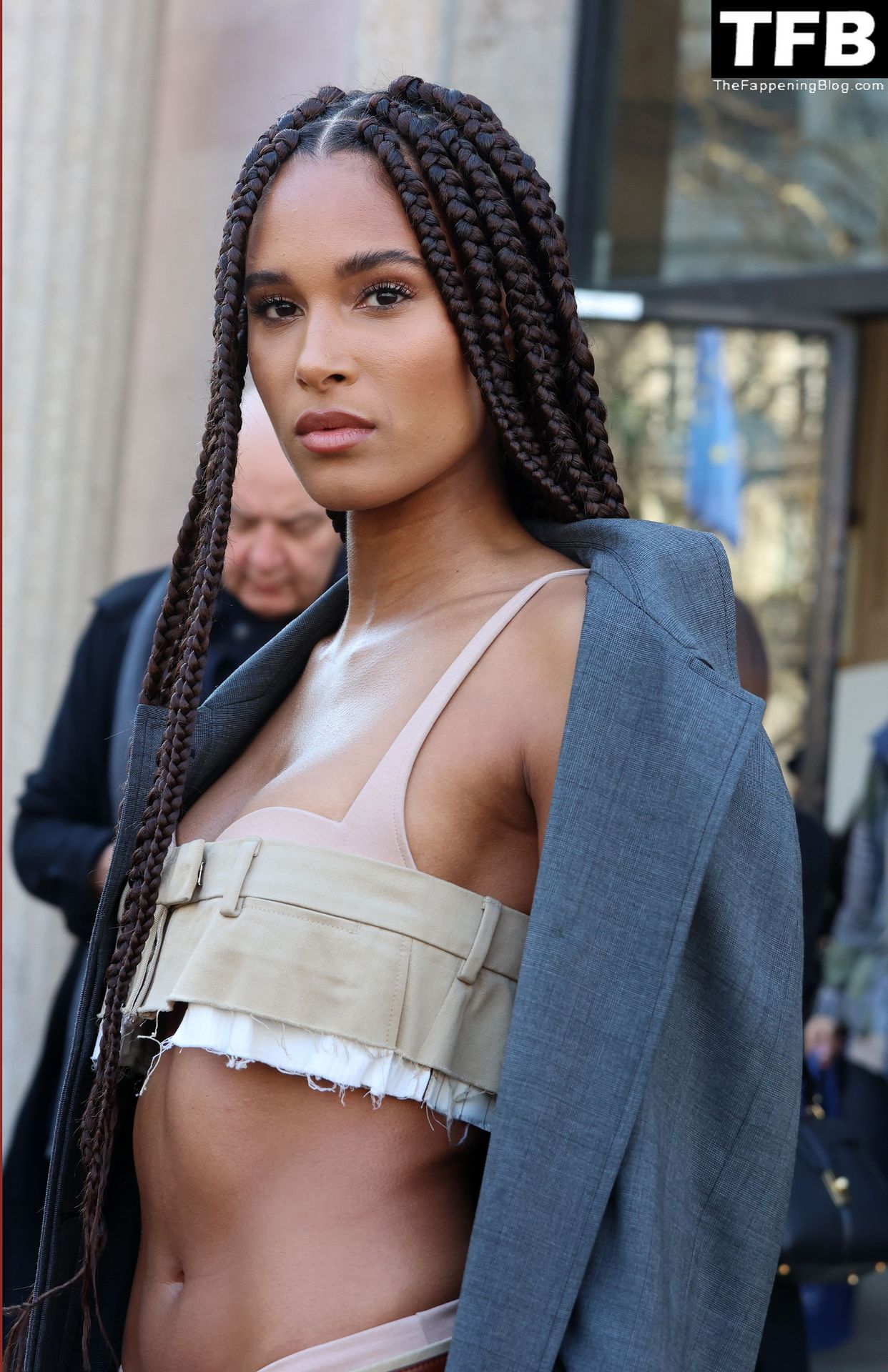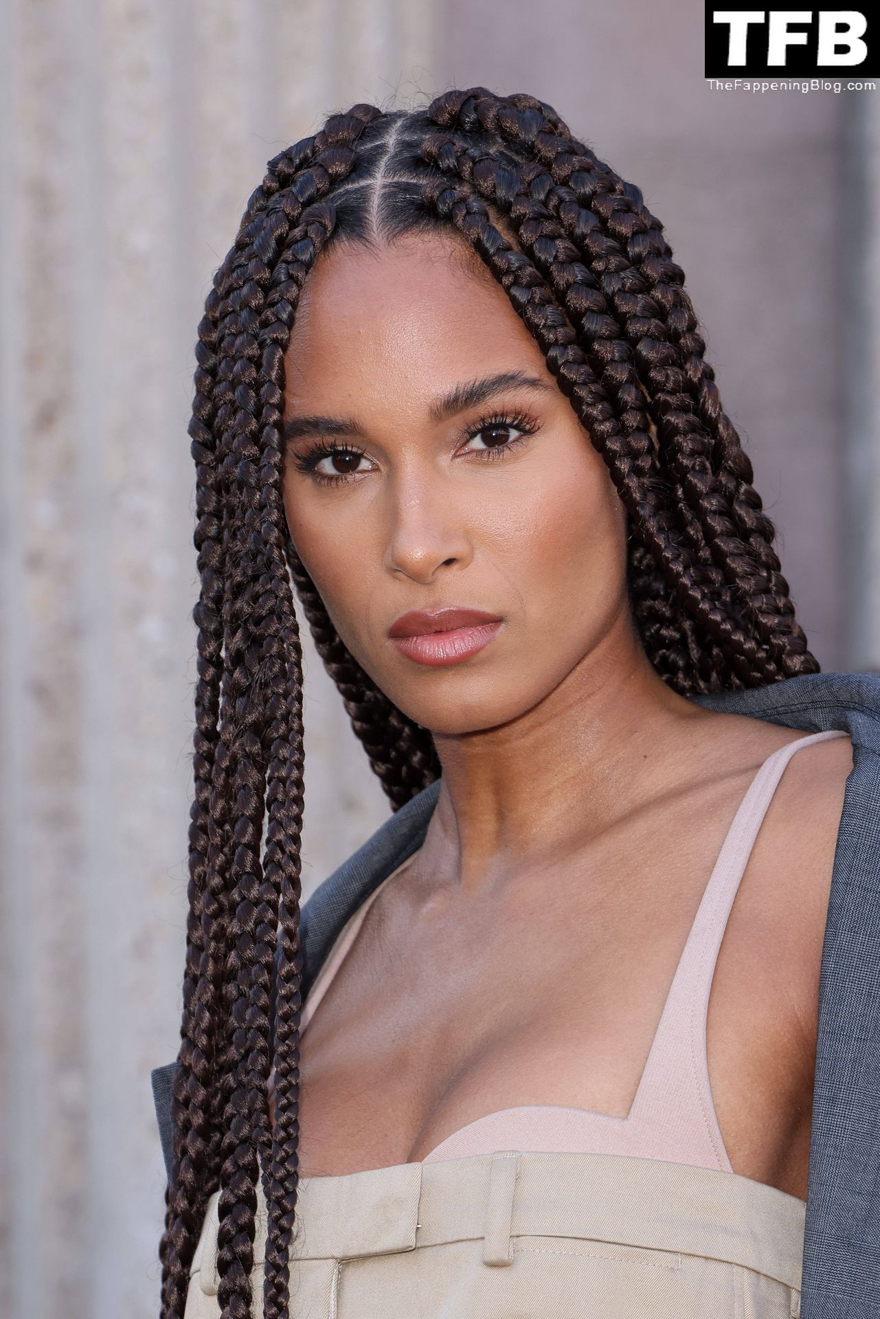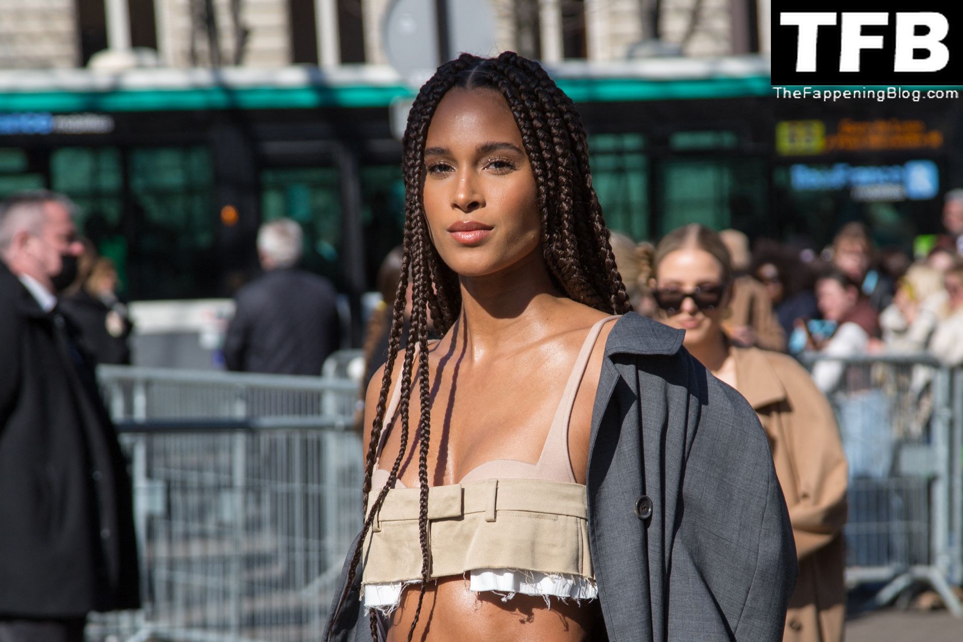 Le mannequin Cindy Bruna assiste au défilé Miu Miu Prêt-à-porter Automne-Hiver 2022-2023 pendant la Fashion Week de Paris, 08/03/2022.
