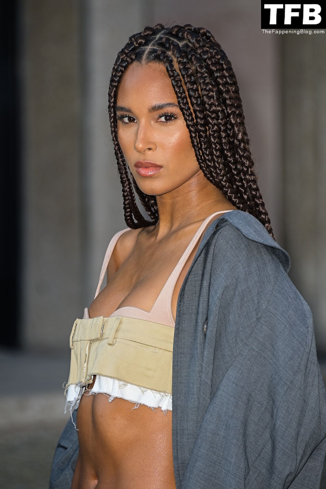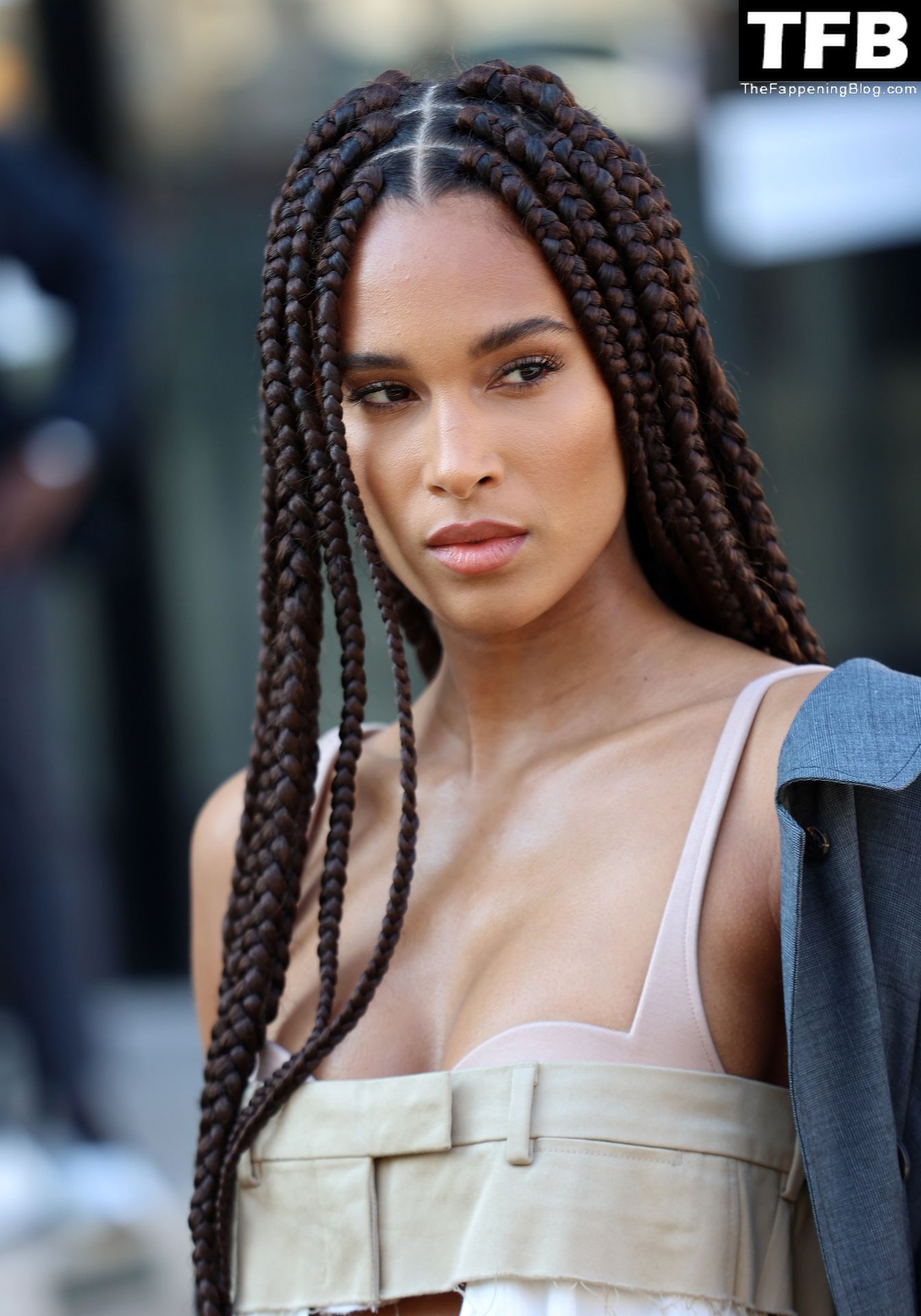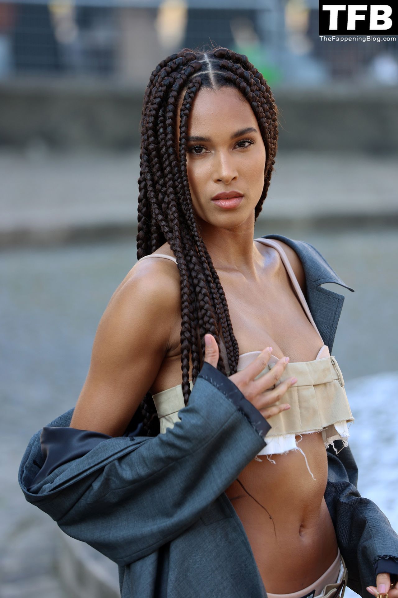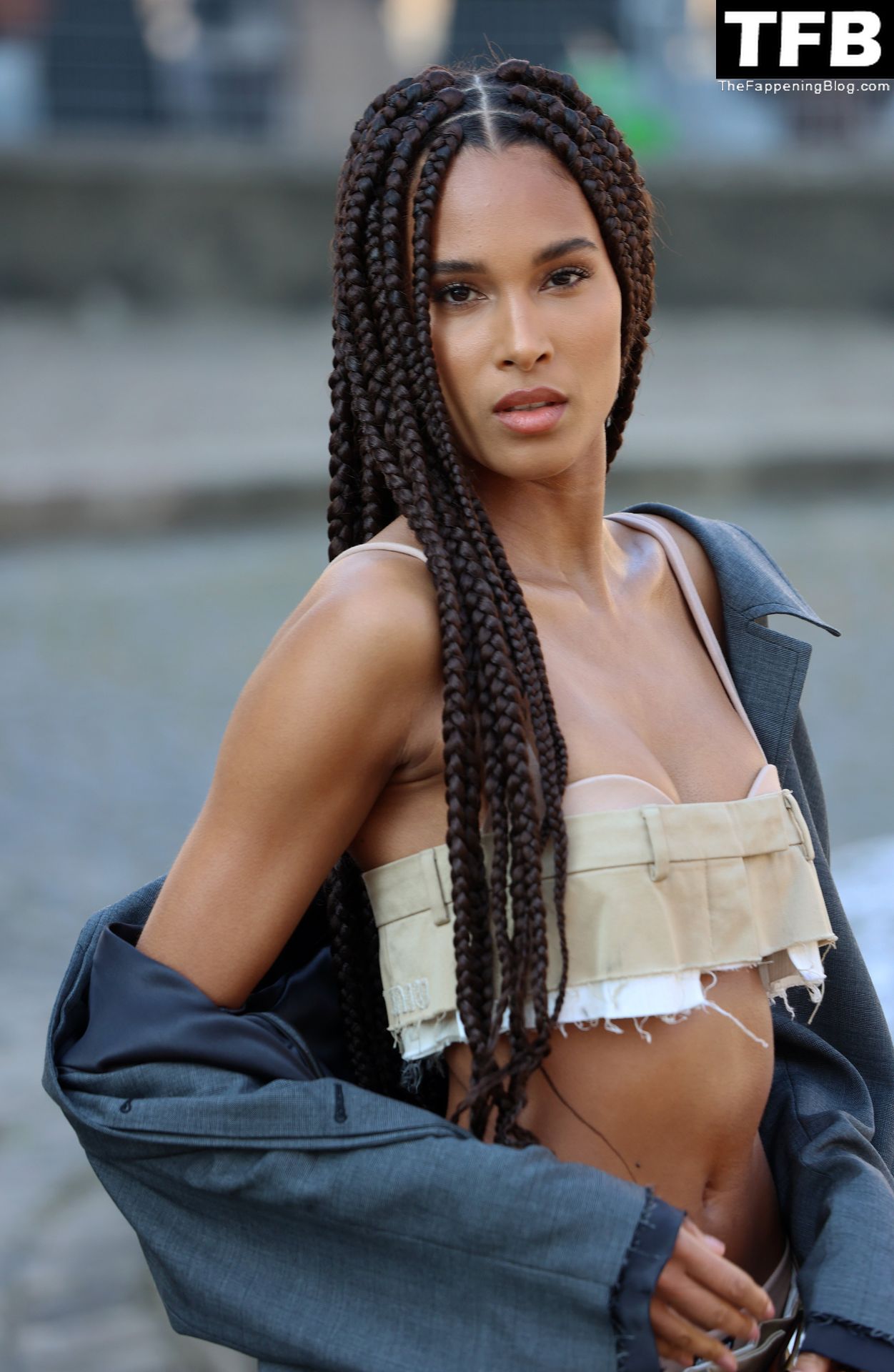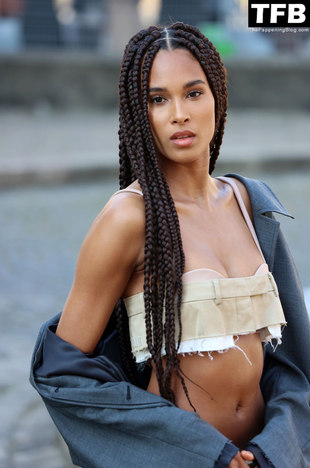 Le mannequin Cindy Bruna assiste au défilé Miu Miu Prêt-à-porter Automne-Hiver 2022-2023 pendant la Fashion Week de Paris, 08/03/2022.