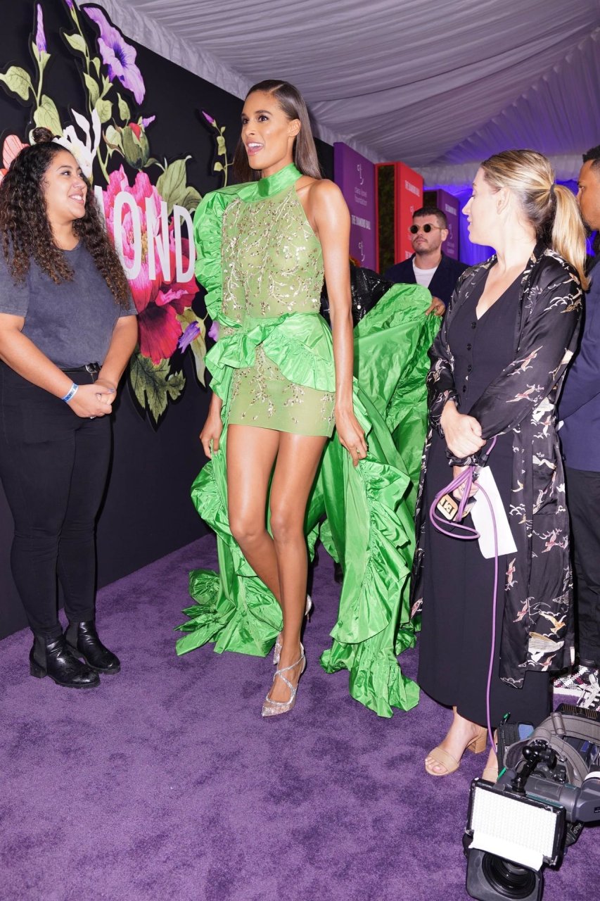 Le mannequin Cindy Bruna affiche ses jambes et sa poitrine sexy, portant une robe verte lors du 5e Bal Annuel du Diamant au profit de la Clara Lionel Foundation au Cipriani Wall Street à New York, le 12/09/2019.