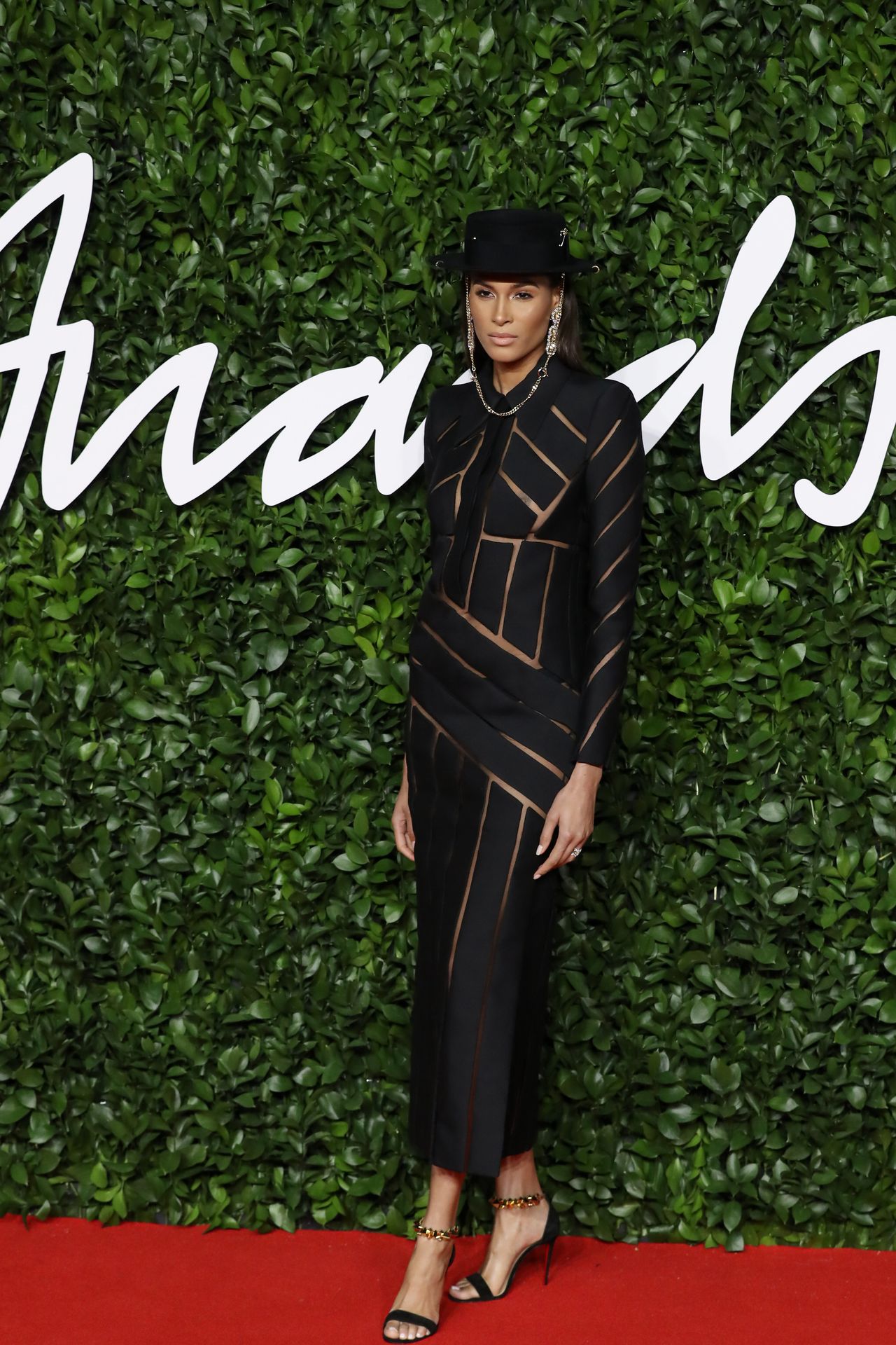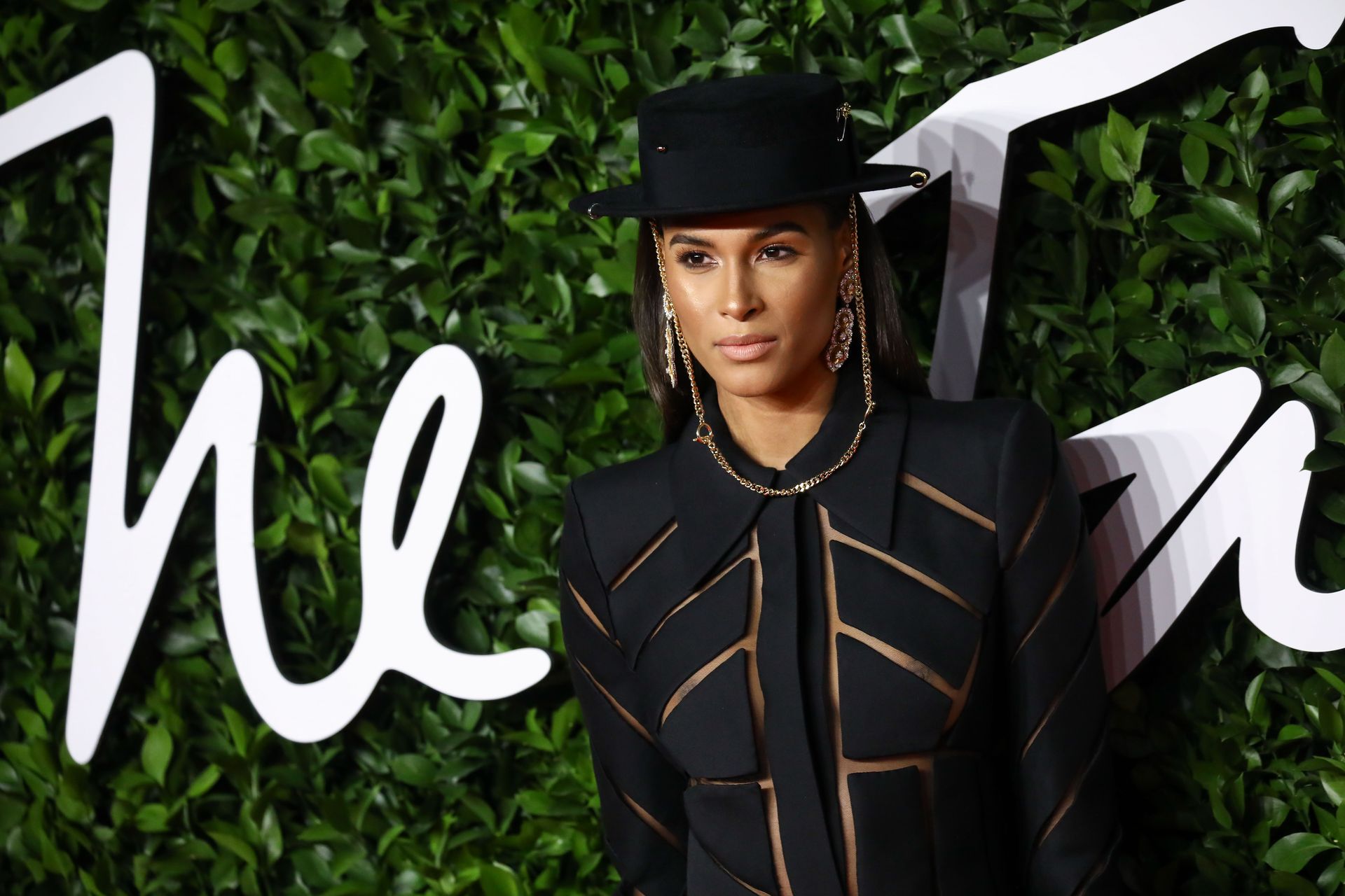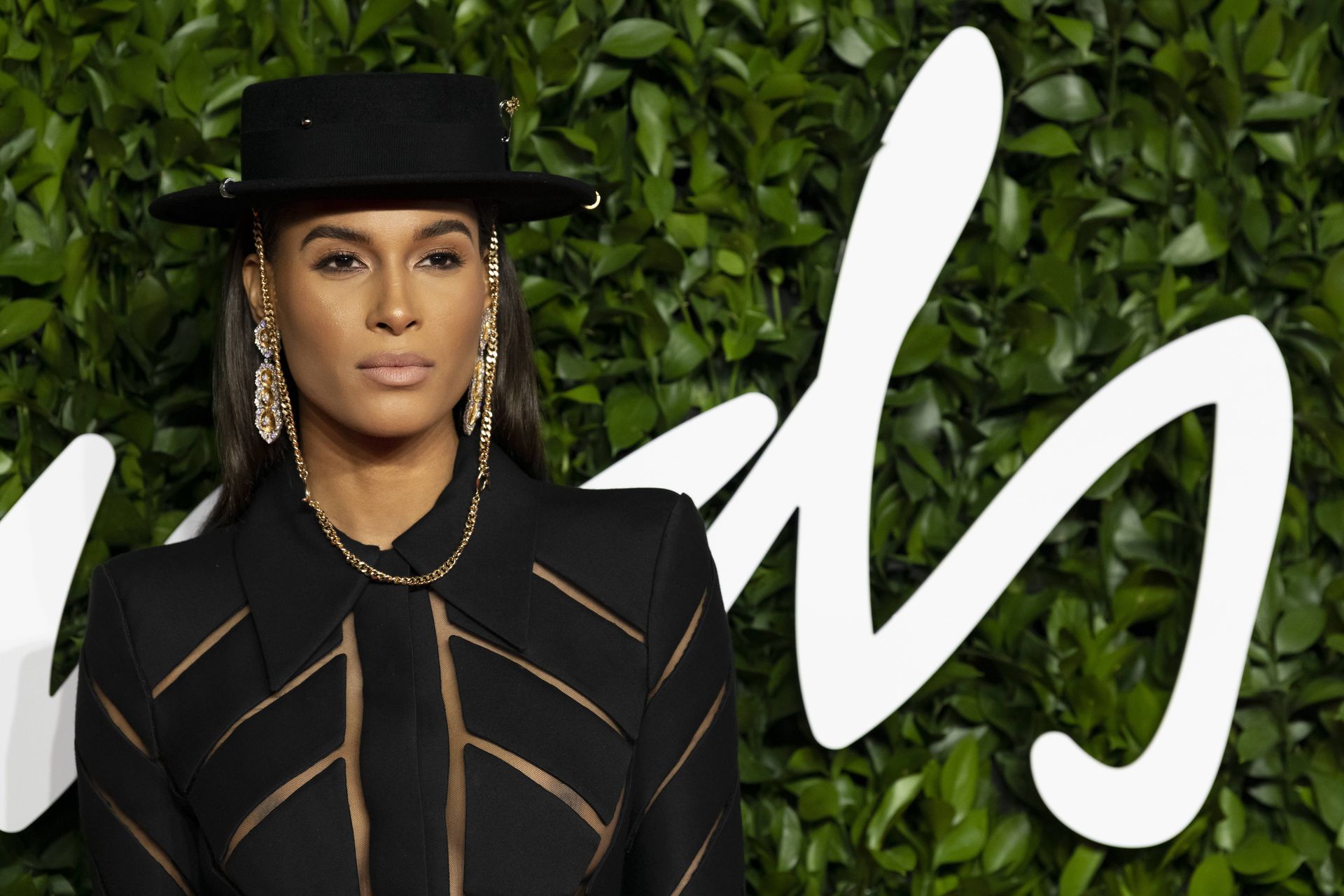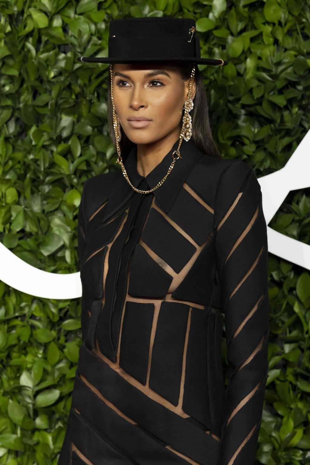 Le top modèle français Cindy Bruna (25 ans) arrive sans soutien-gorge aux Fashion Awards 2019 qui se tiennent au Royal Albert Hall à Londres, Angleterre, le 12/02/2019.
