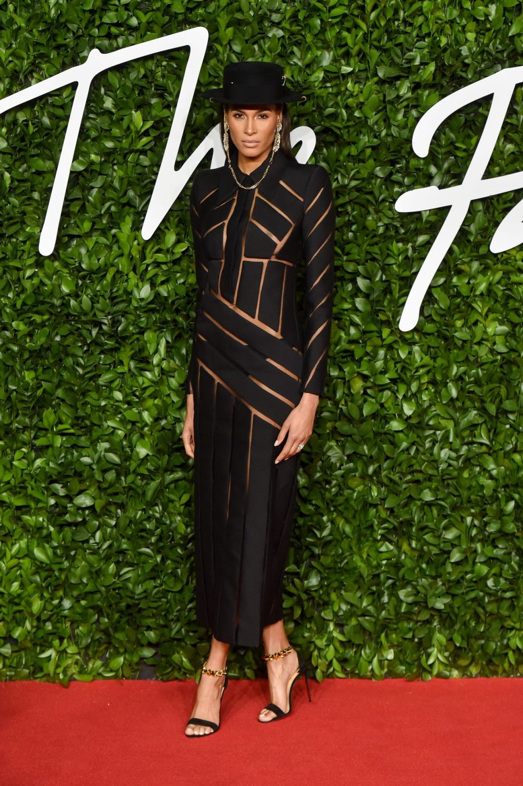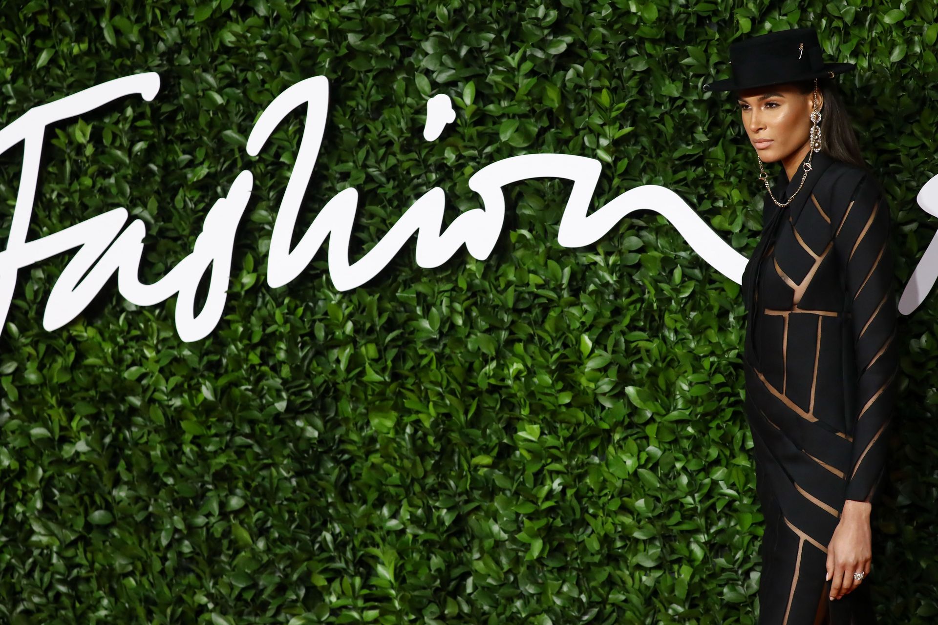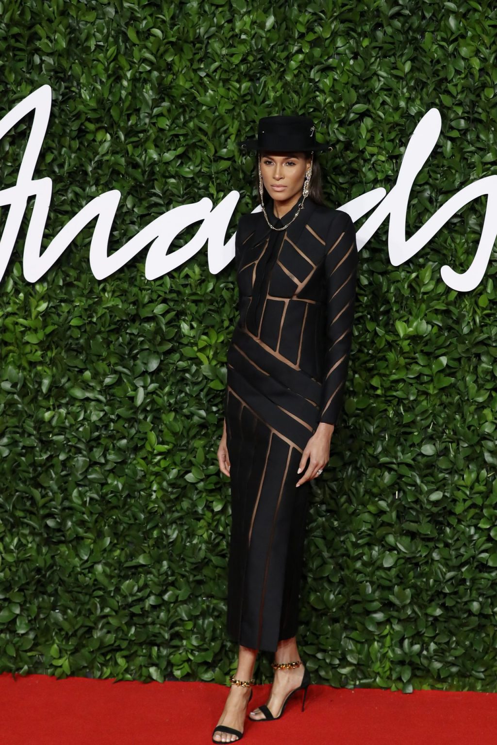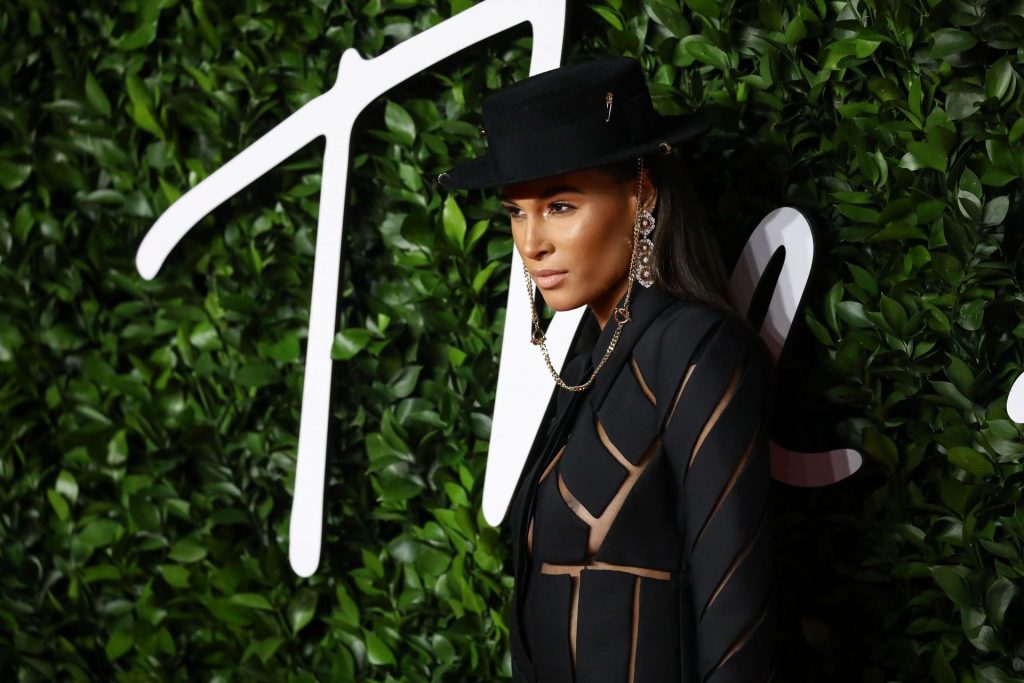 Le top modèle français Cindy Bruna (25 ans) arrive sans soutien-gorge aux Fashion Awards 2019 qui se tiennent au Royal Albert Hall à Londres, Angleterre, le 12/02/2019.