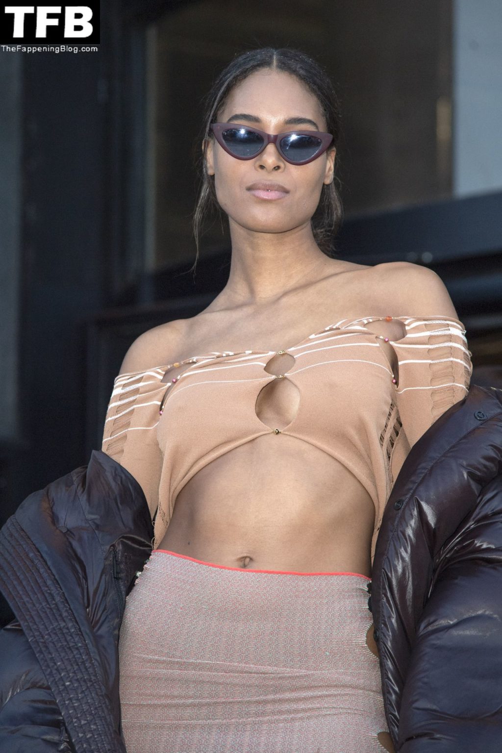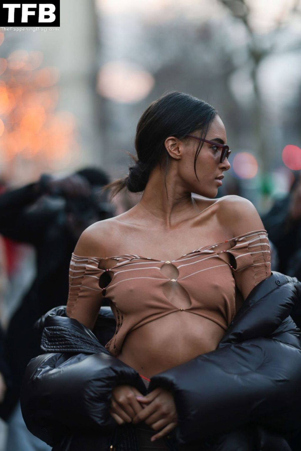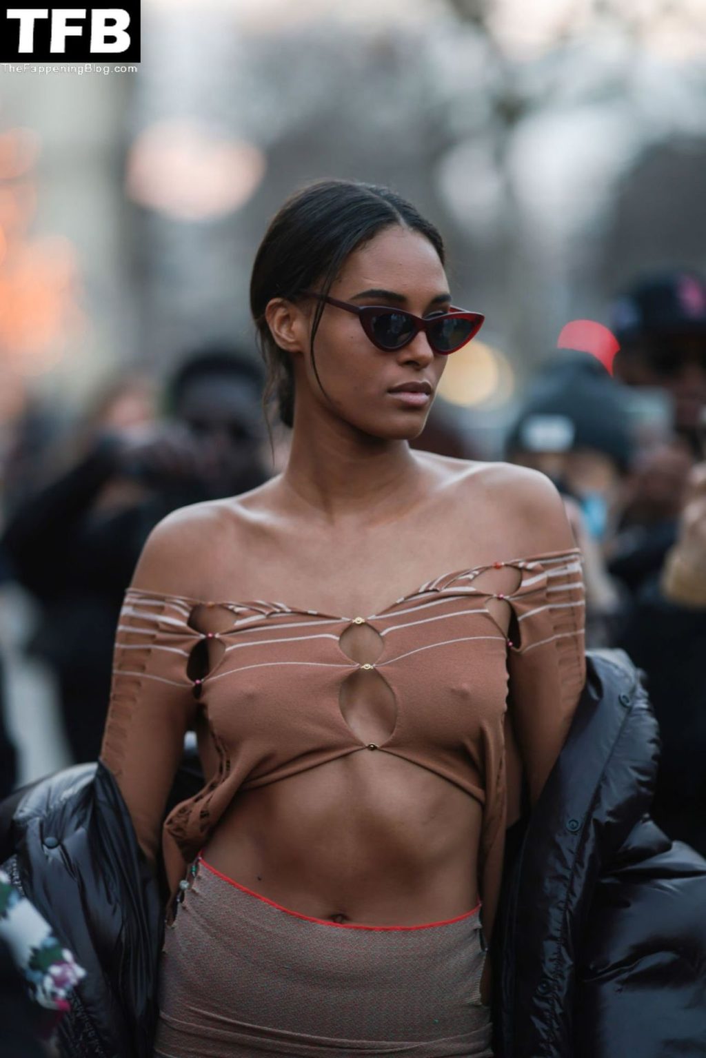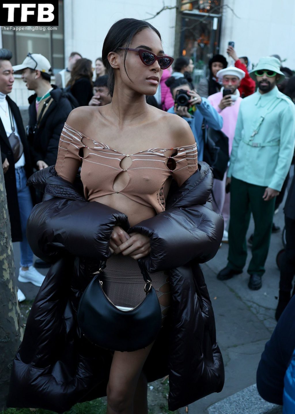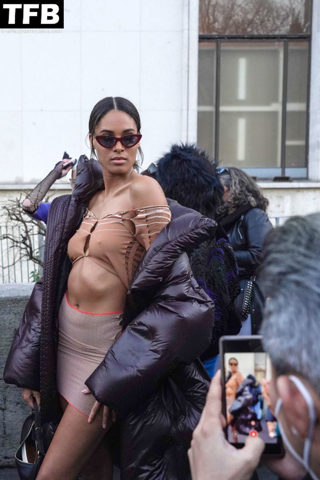 Model Cindy Bruna assiste au défilé de mode Elie Saab Collection Femme Automne-Hiver 2022-2023 à Paris, 03/05/2022.