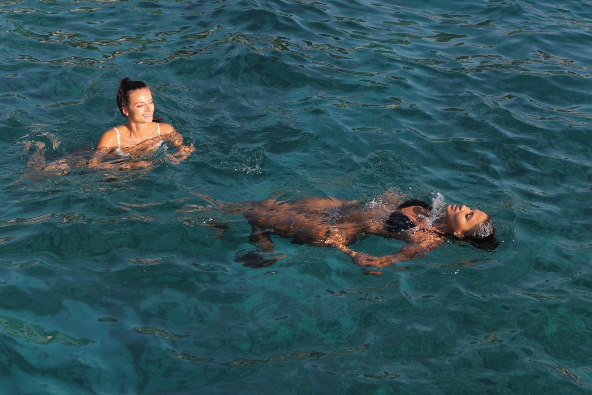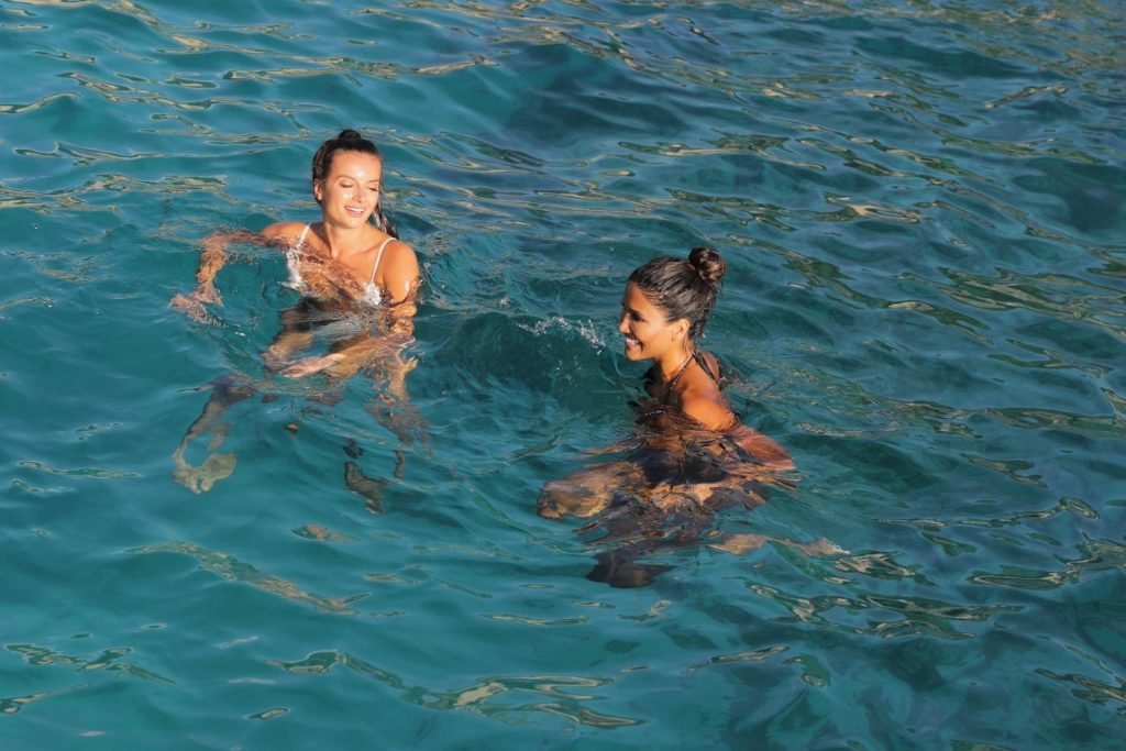 CJ Franco et Natalia Janoszek plongent profondément dans la mer des Caraïbes lors de leurs vacances en Jamaïque, le 25/09/2019. Les mannequins ont passé du temps à se détendre sur un yacht près du célèbre Rick’s Cafe.