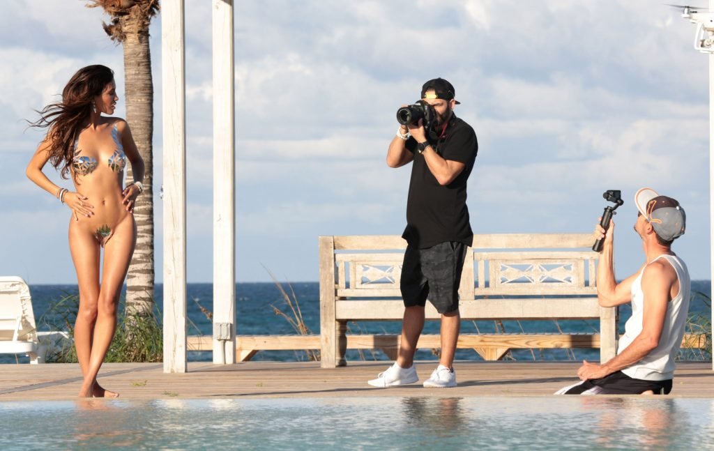 Le mannequin de Los Angeles CJ Franco (26 ans) montre son corps parfait lors d’une séance photo pour le BlackTape Project aux Bahamas, 12/08/2017.