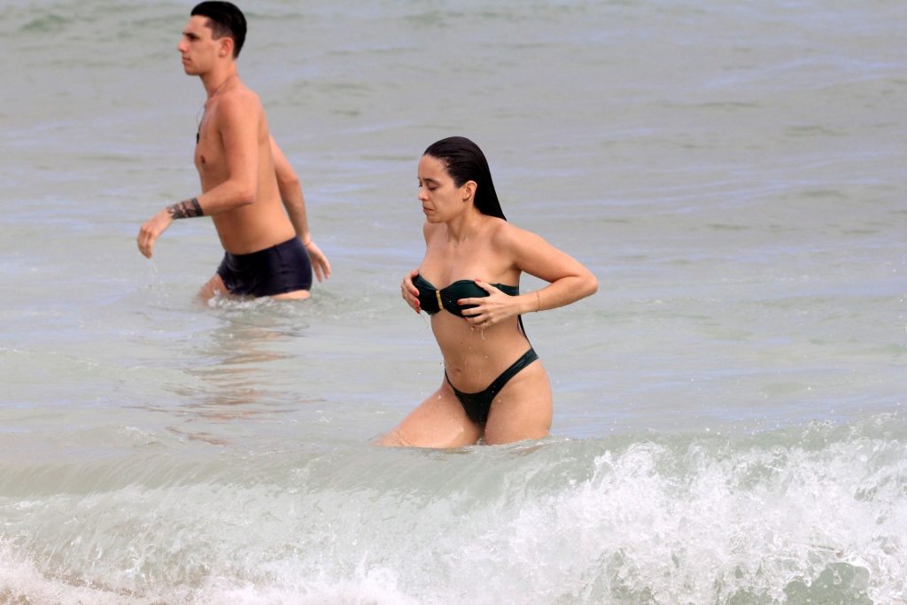 Marcelo et Clarisse exhibent leurs physiques athlétiques dans de minuscules maillots de bain alors qu’ils profitent de la journée à la plage et jouent au volley-ball.