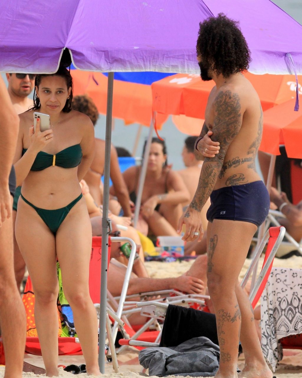 Marcelo Vieira da Silva Junior profite d’une journée à la plage avec sa femme Clarisse Alves et leur famille – Rio de Janeiro, 27/12/2019.