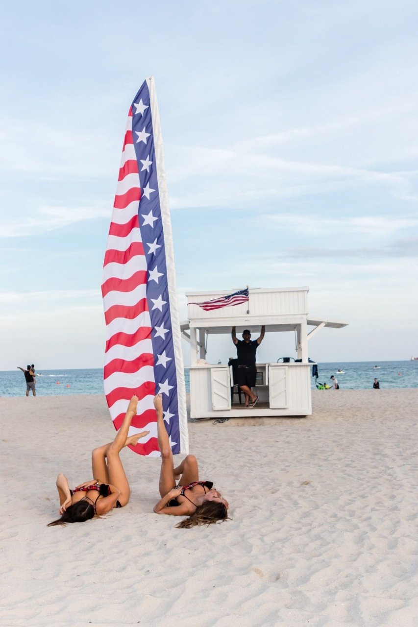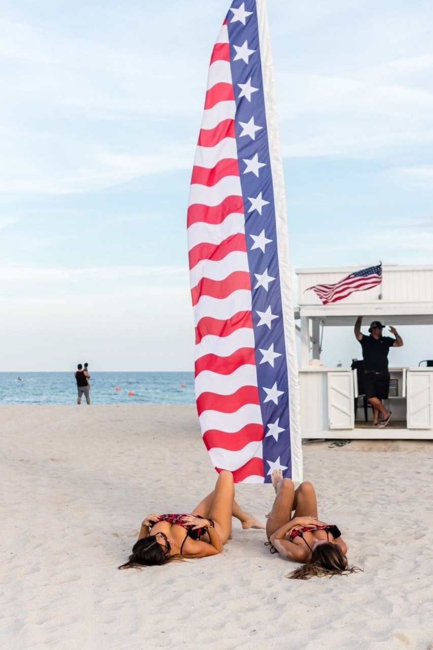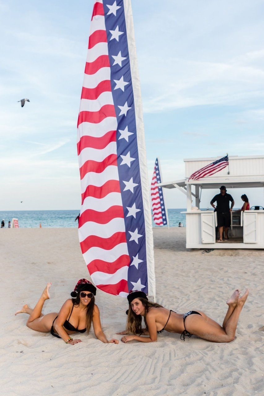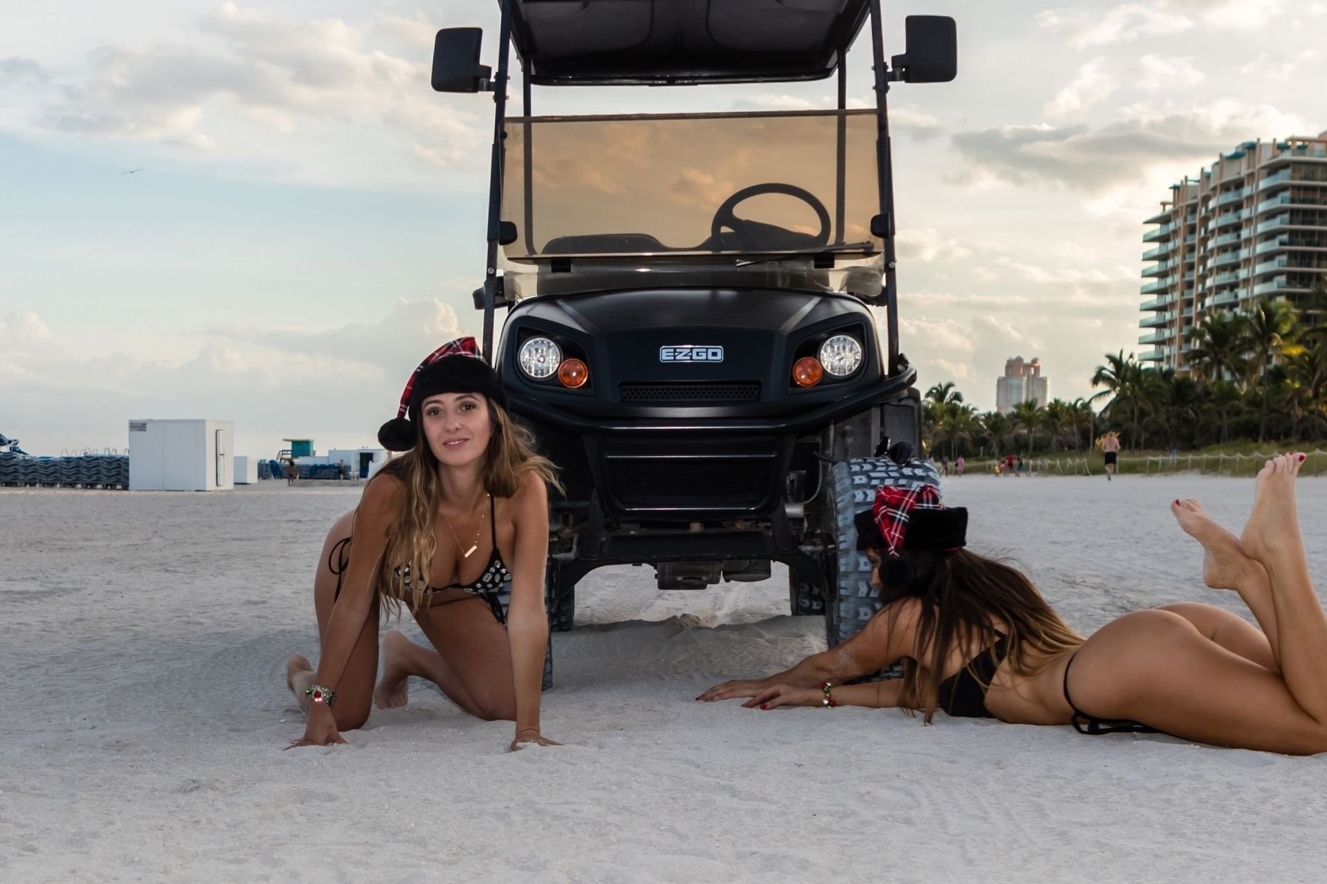 La mannequin italienne et star de la télé-réalité Claudia Romani et la star américaine de Youtube Lauren Francesca posent sur South Beach juste avant Noël, le 23/12/2018. Les amies portaient des bikinis noirs sexy et des bonnets de Père Noël. Ho Ho Ho.