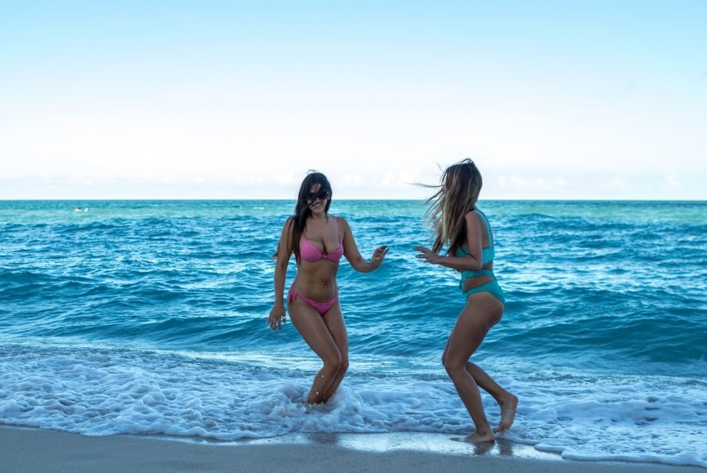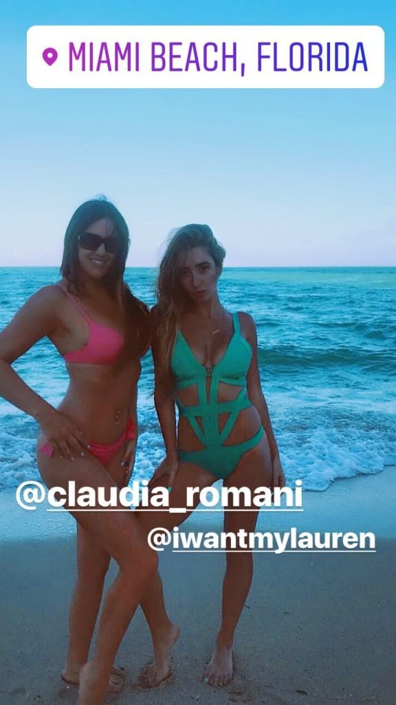 La star de la télé-réalité Claudia Romani et la star de YouTube basée à Los Angeles Lauren Francesca s’amusent à South Beach, 25/02/2018.