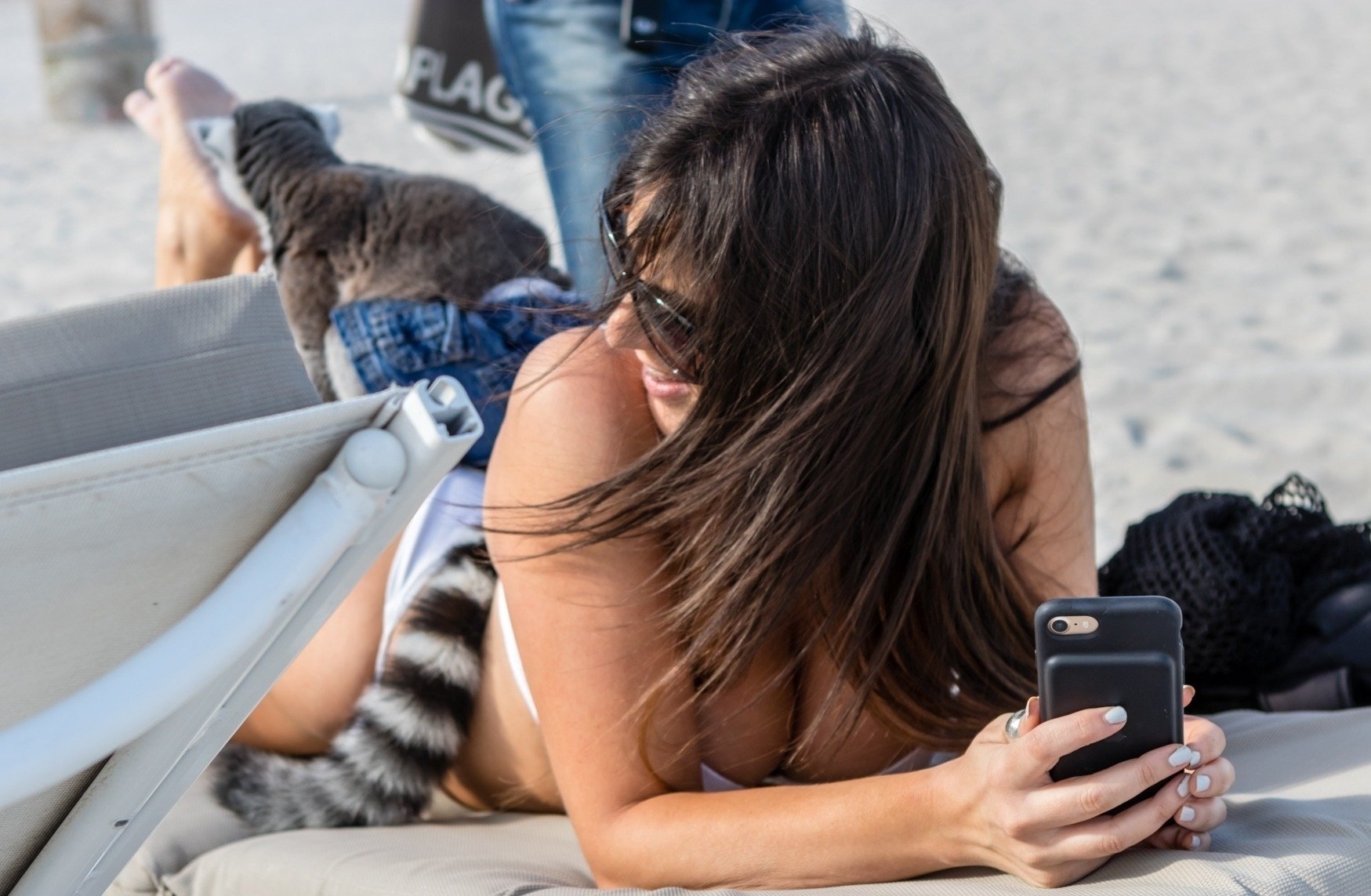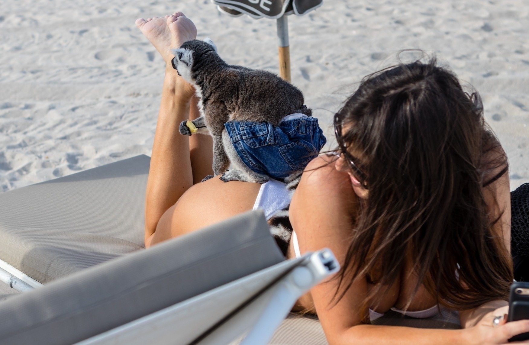 Model et star de la télé-réalité Claudia Romani (35 ans) est vue à South Beach en train de jouer avec un lémurien, 21/01/2018.